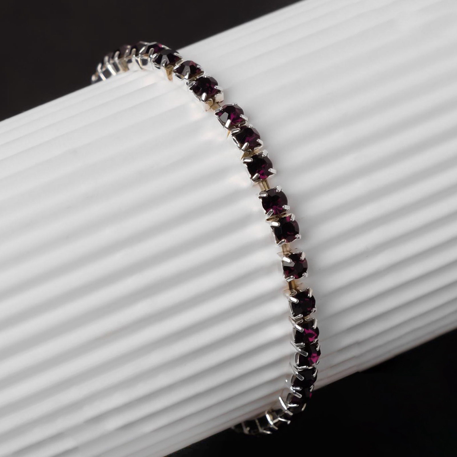 Браслет со стразами "Лёд" 1 ряд, цвет тёмно-фиолетовый в серебре, L=7 см, 0.4x7x0.4 см., QF, Китай