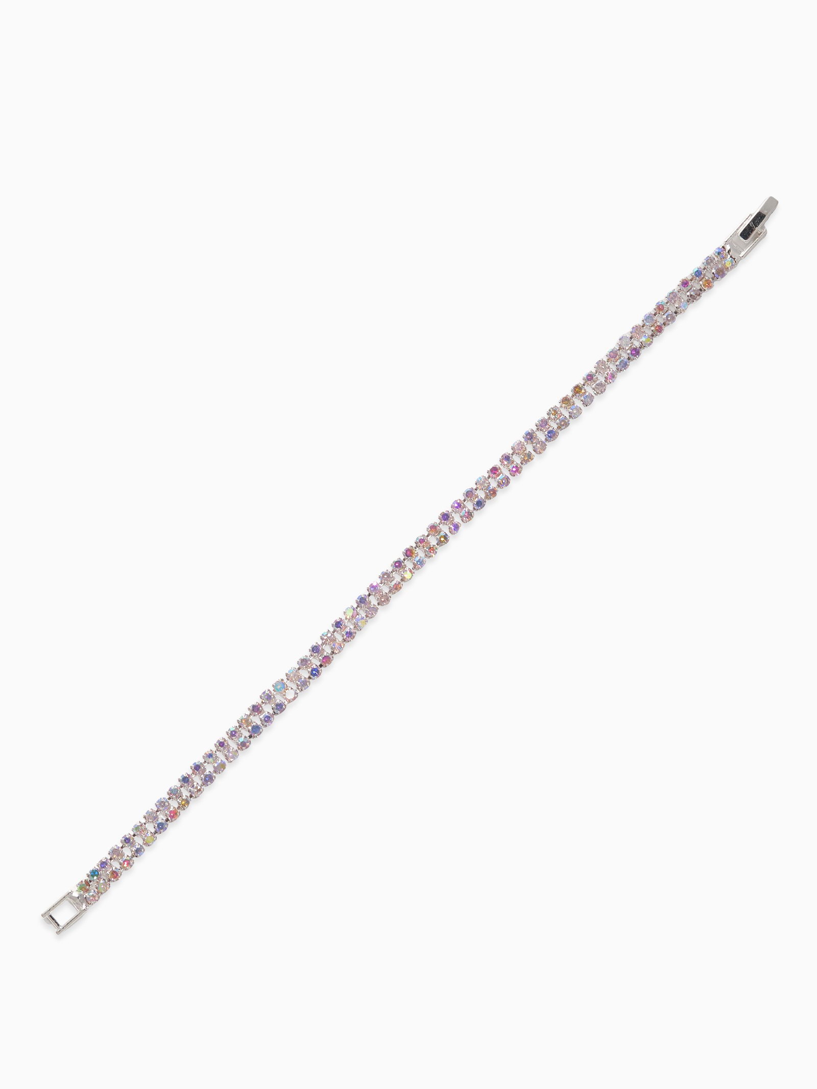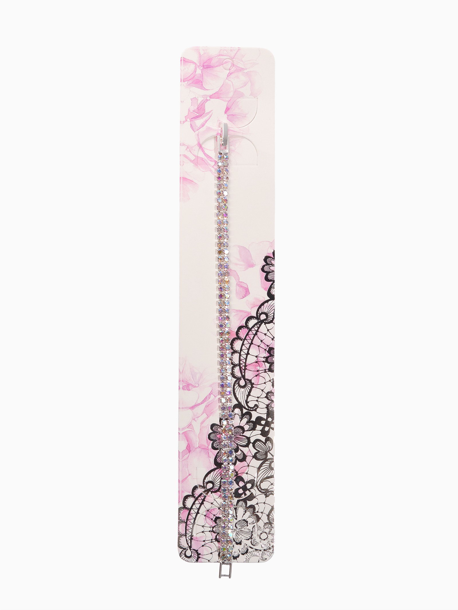 Браслет со стразами "Лёд" элегантность, 2 ряда, цвет радужный в серебре, 18 см, 0.6x18x0.2 см., QF, Китай