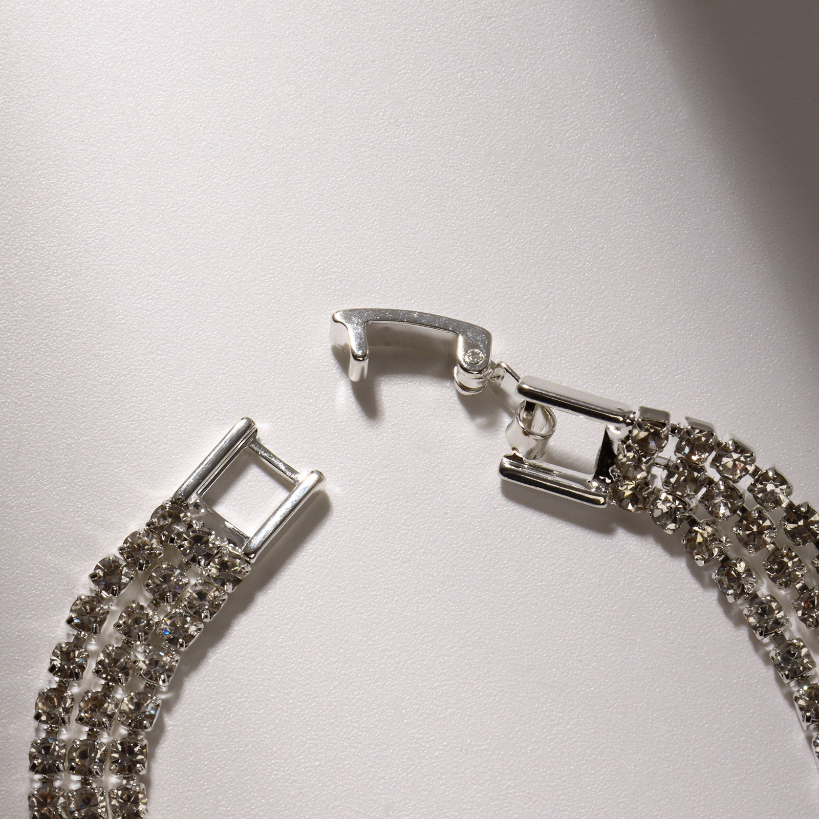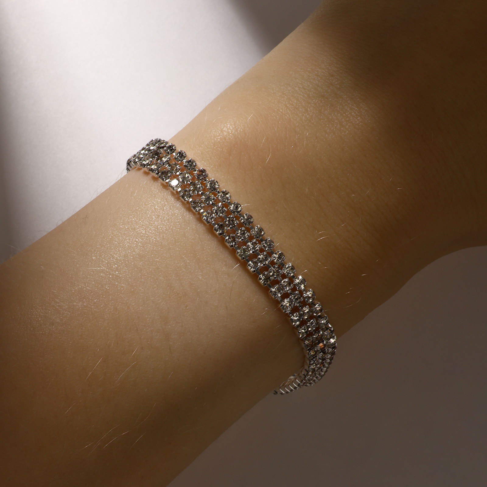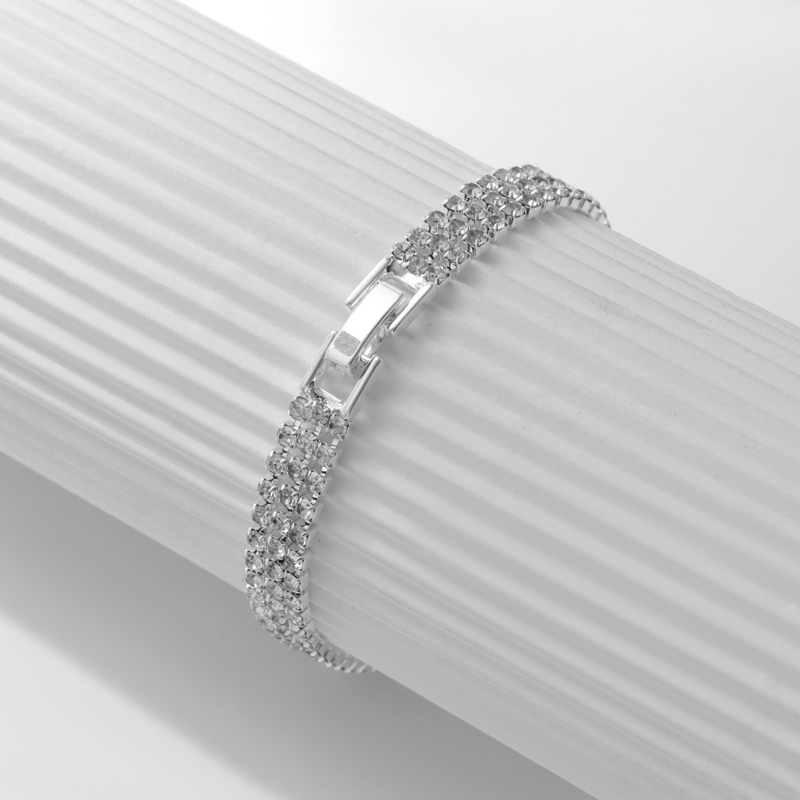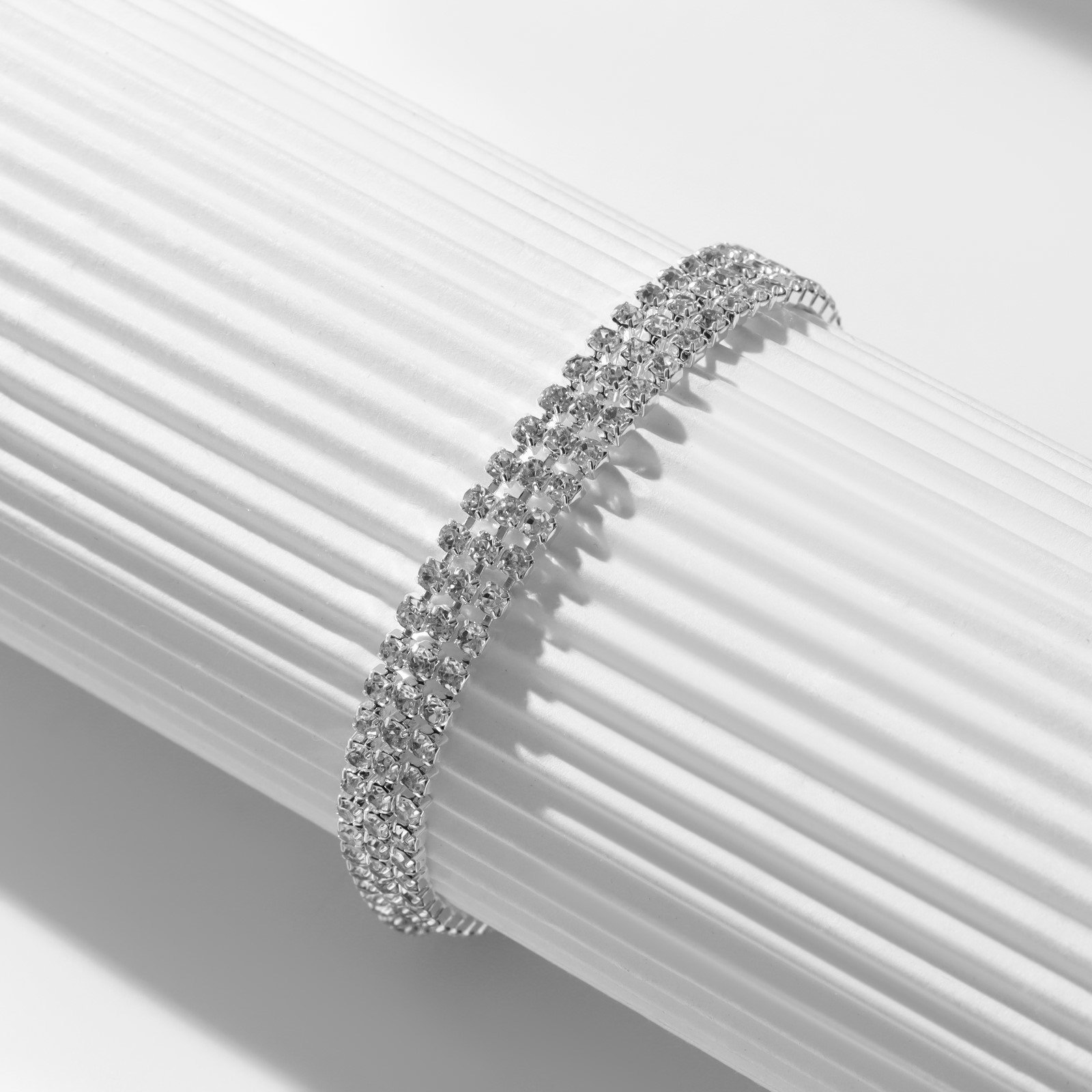 Браслет со стразами "Лёд" элегантность, 3 ряда, цвет белый в серебре, L=18 см, 0.6x18x0.2 см., QF, Китай