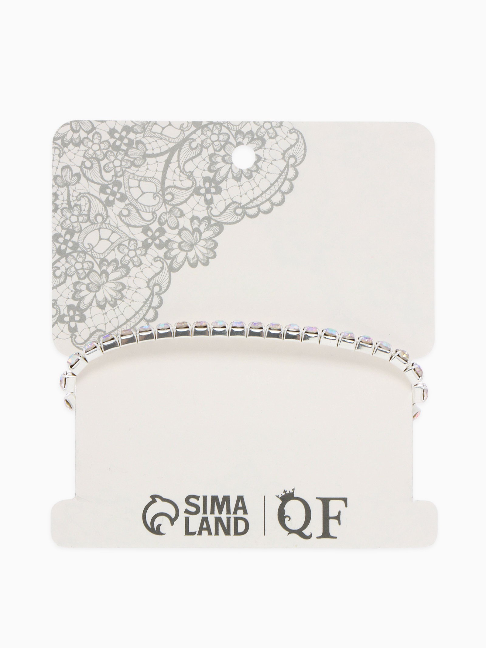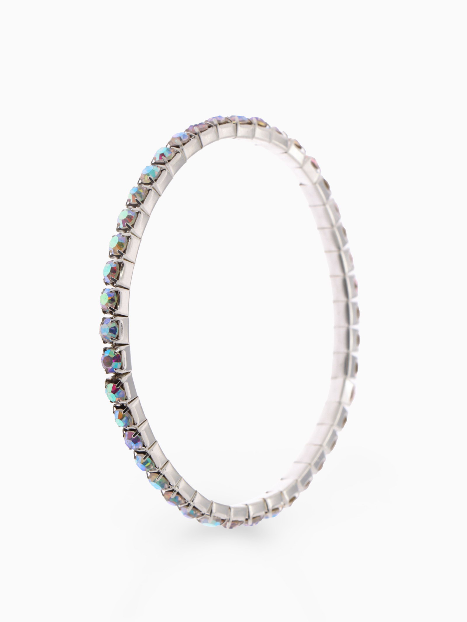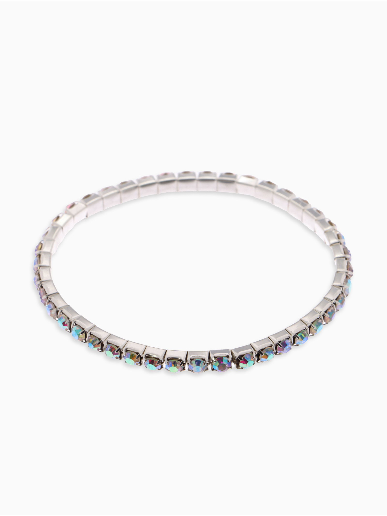 Браслет со стразами "Лёд" 1 ряд, цвет радужный в серебре, 4 мм, d=5 см, 0.4x5x0.4 см., QF, Китай