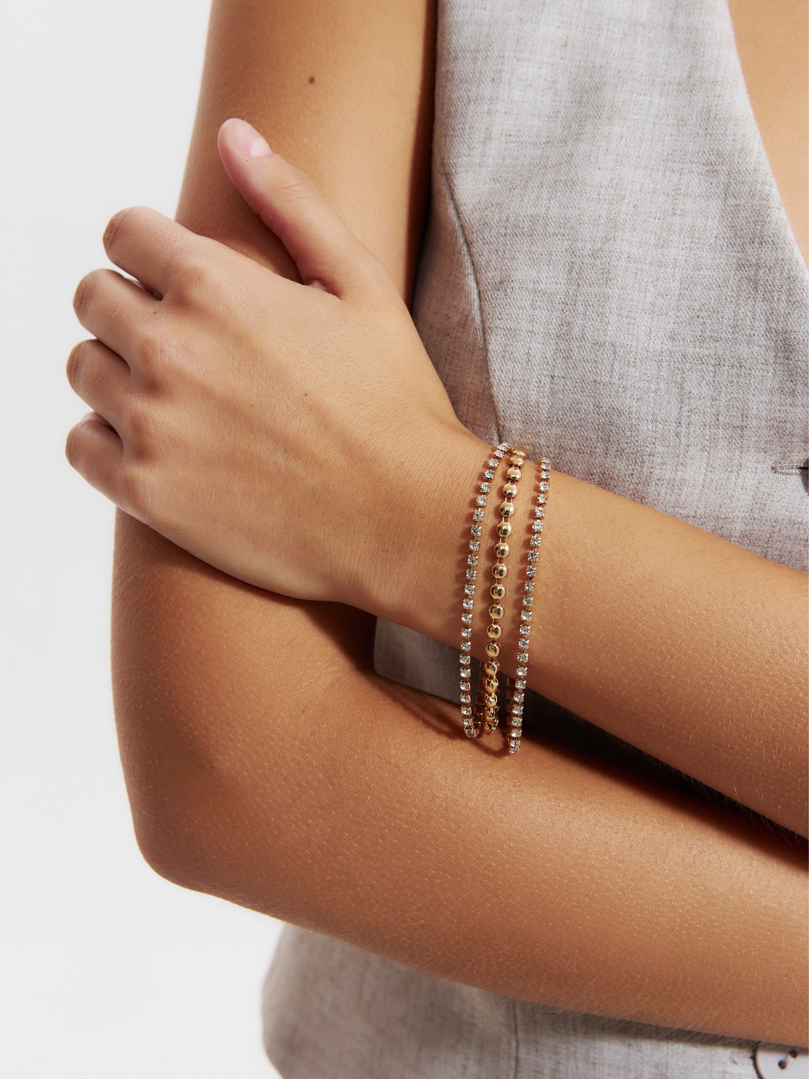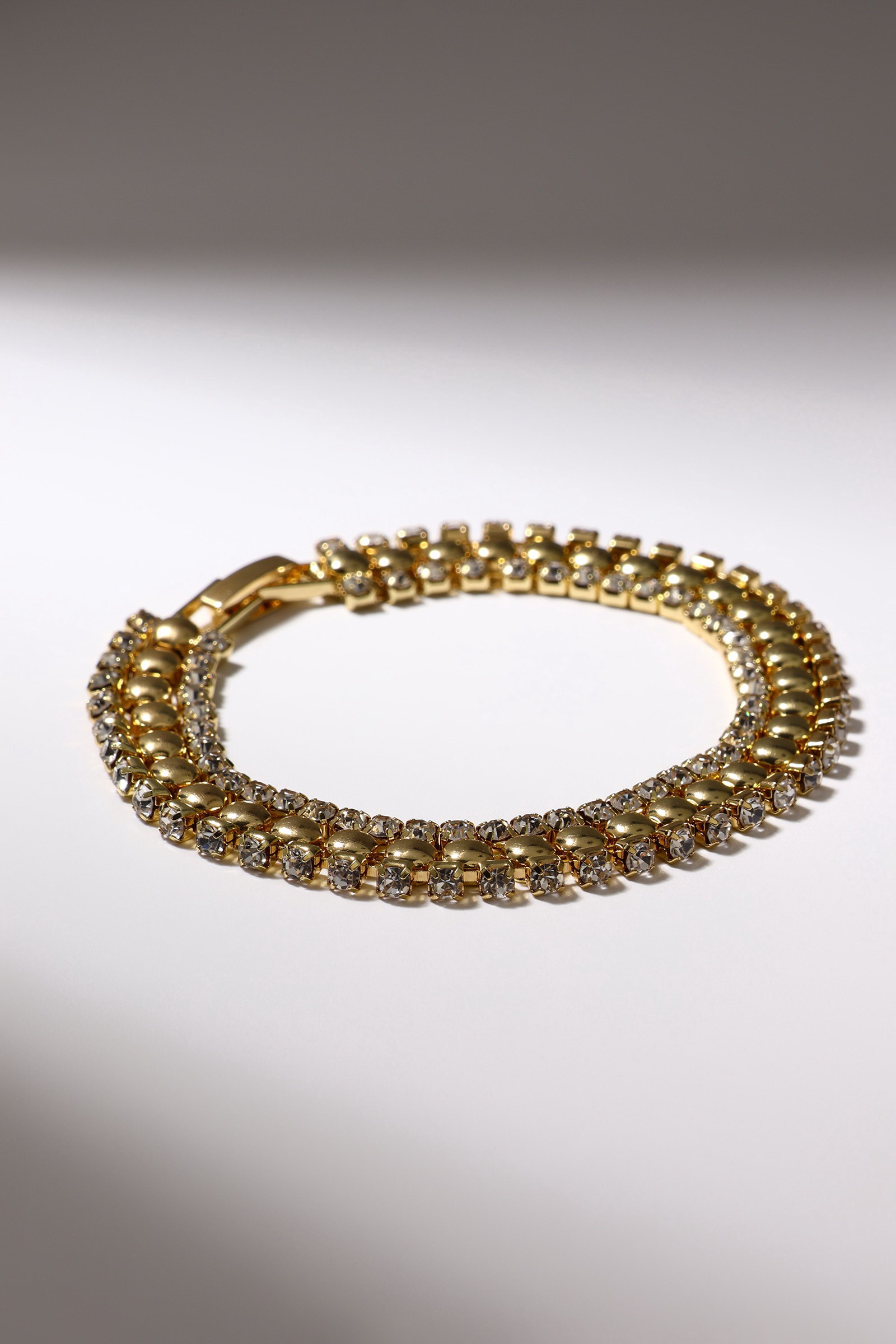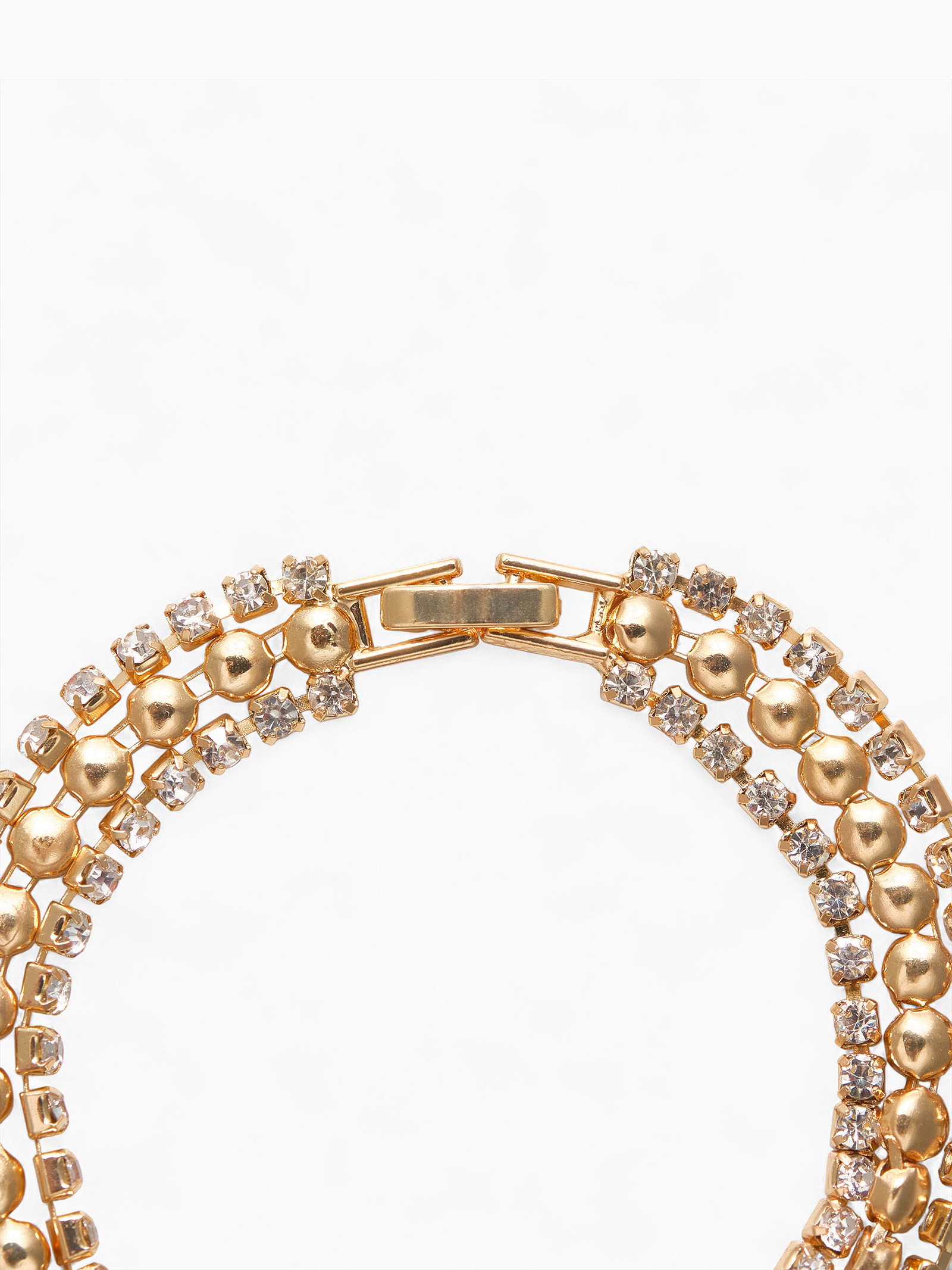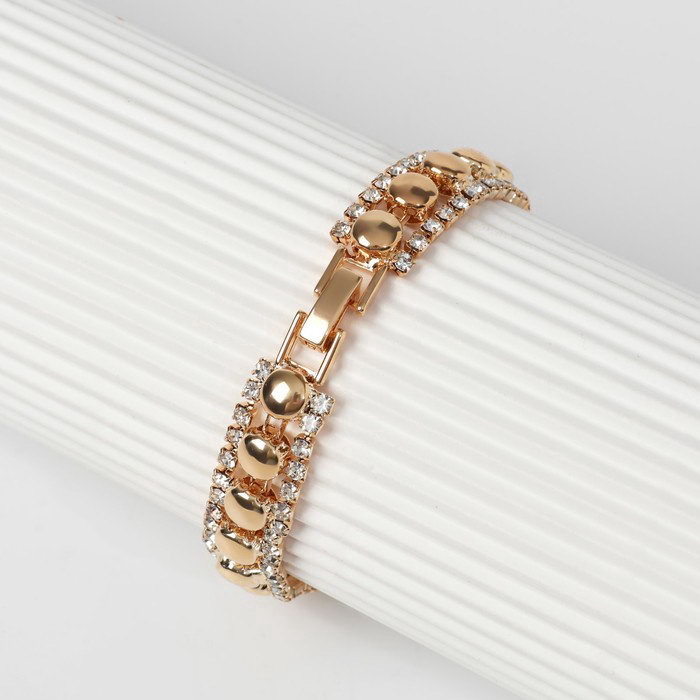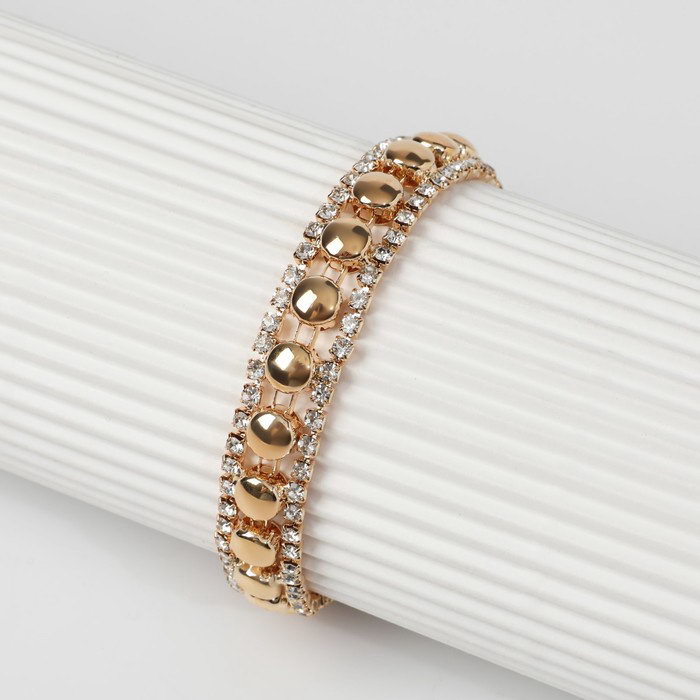 Браслет со стразами "Сияй" нить кругами, цвет белый в золоте, 18 см, 1x18x0.3 см., QF, Китай