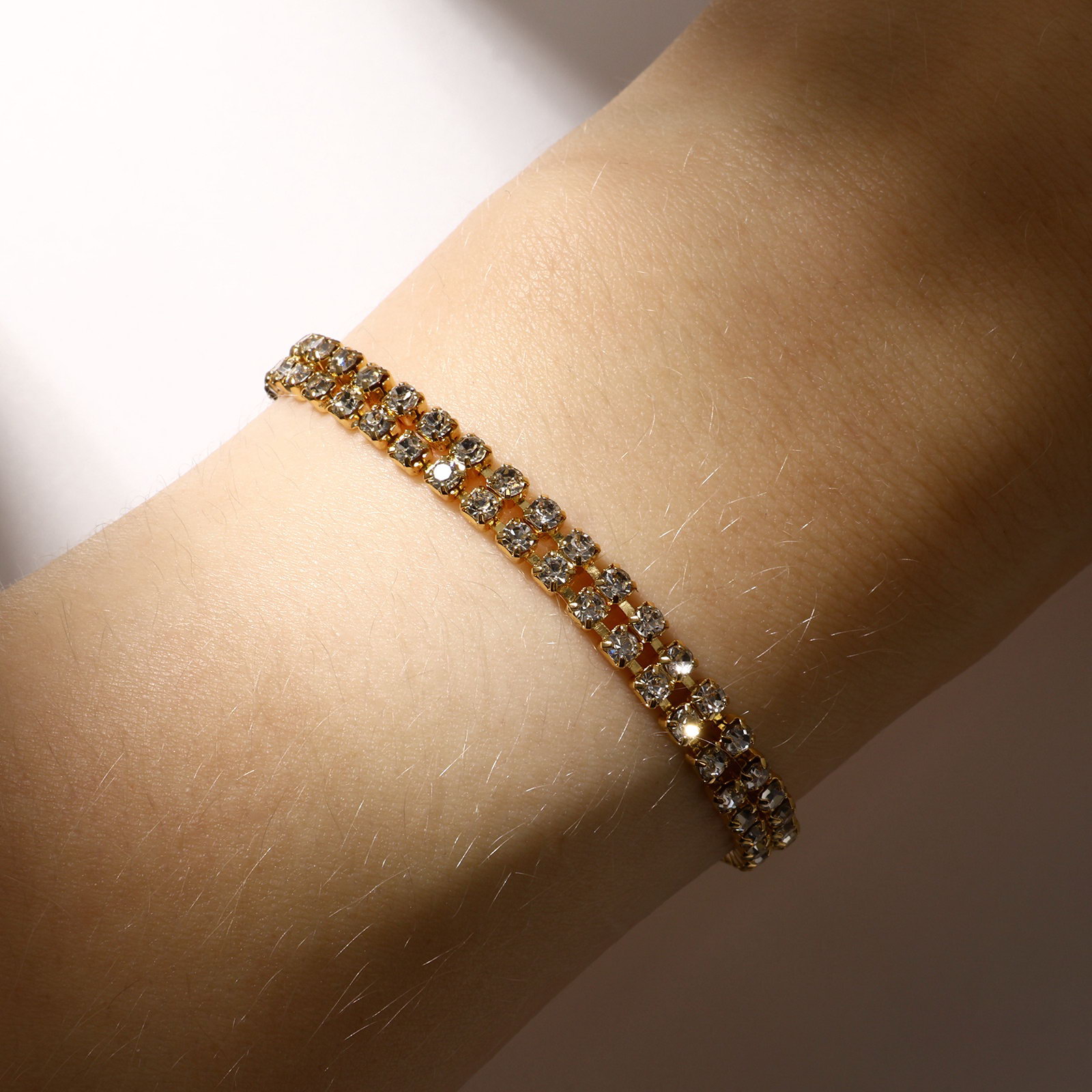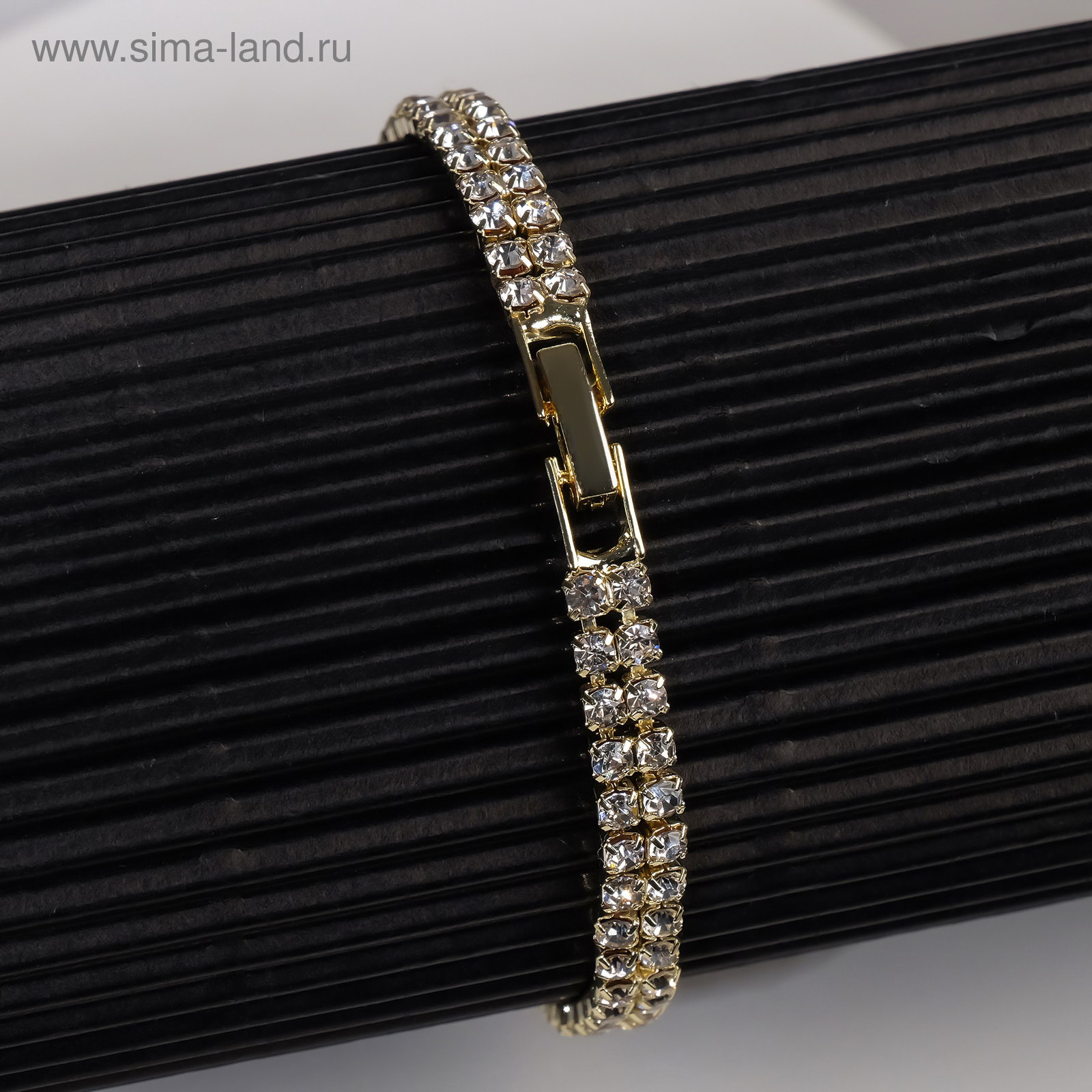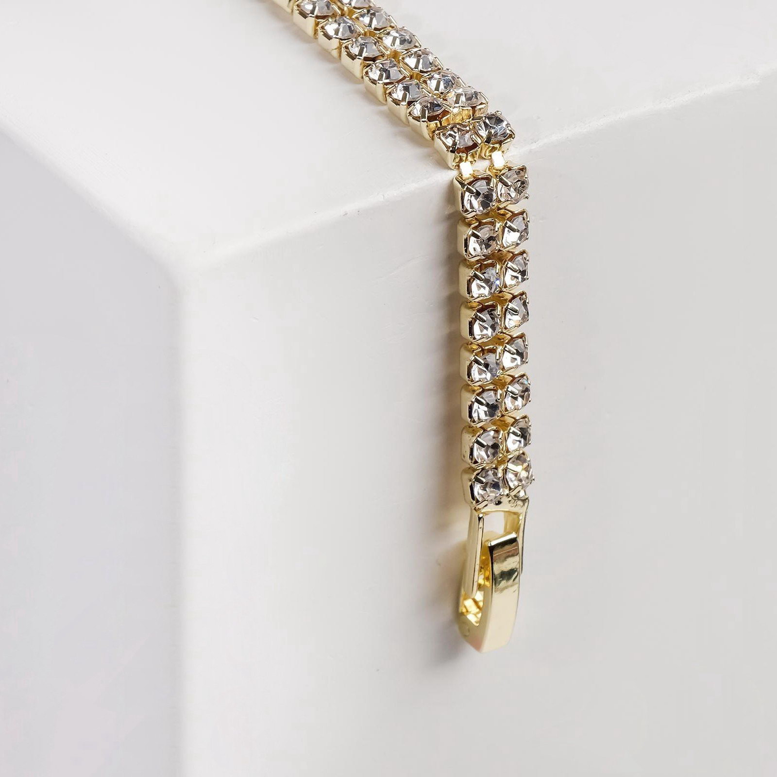 Браслет со стразами "Сияй" 2 ряда, белый в золоте, 18 см, 0.5x18x0.2 см., QF, Китай