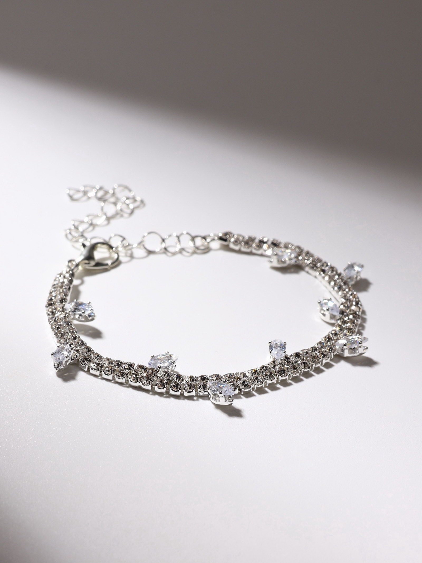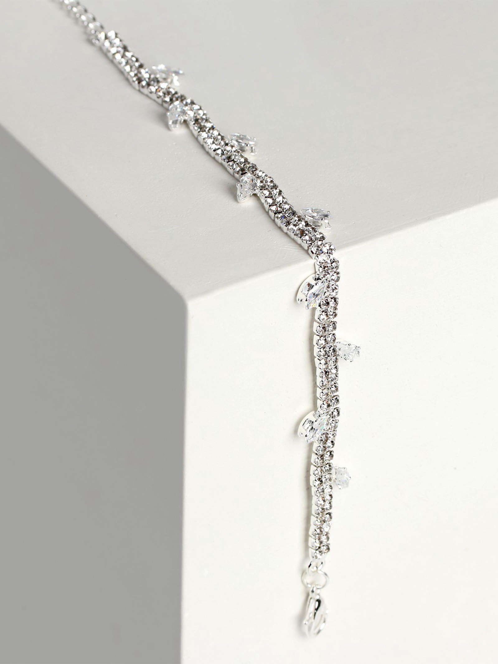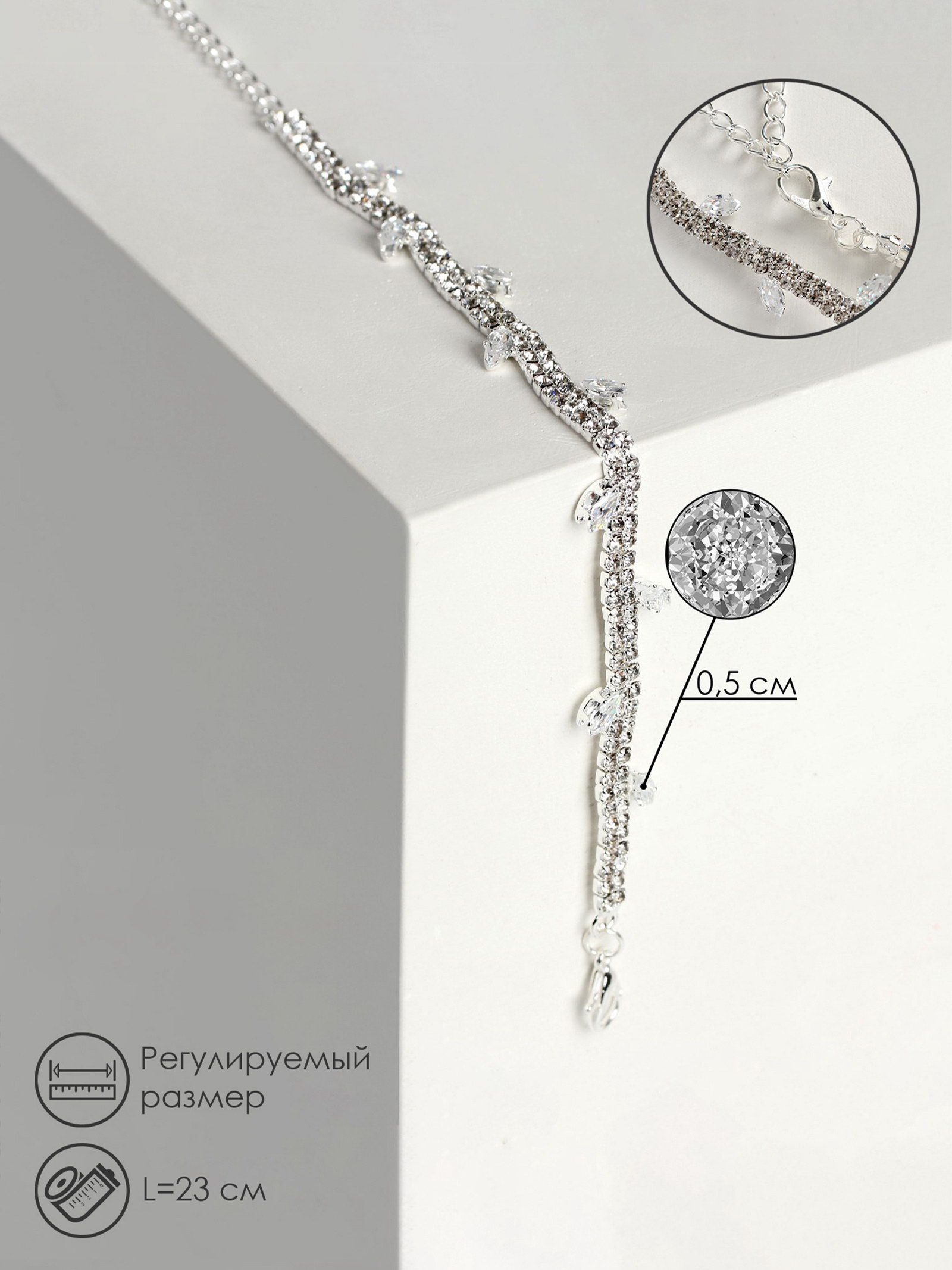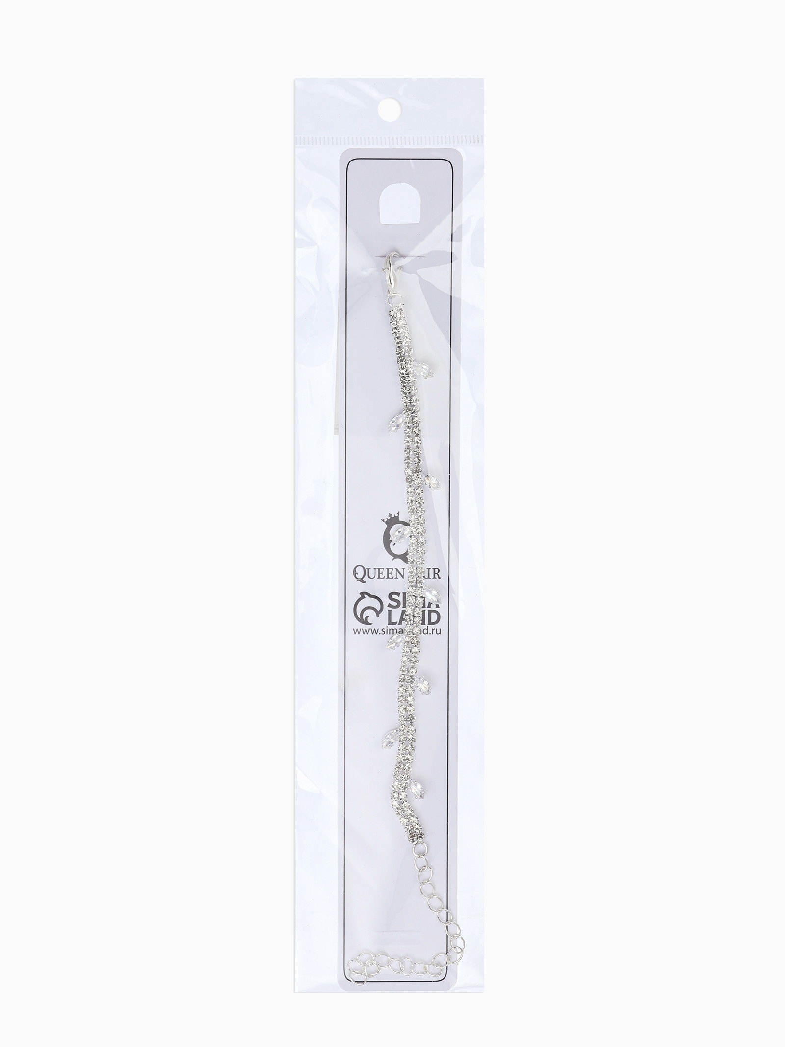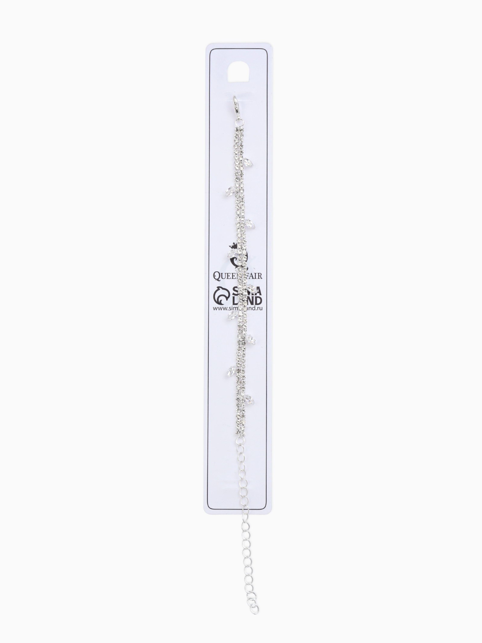 Браслет со стразами "Амелия. Лепестки", L=23 см, белый в серебре, 1x23x0.5 см., QF, Китай
