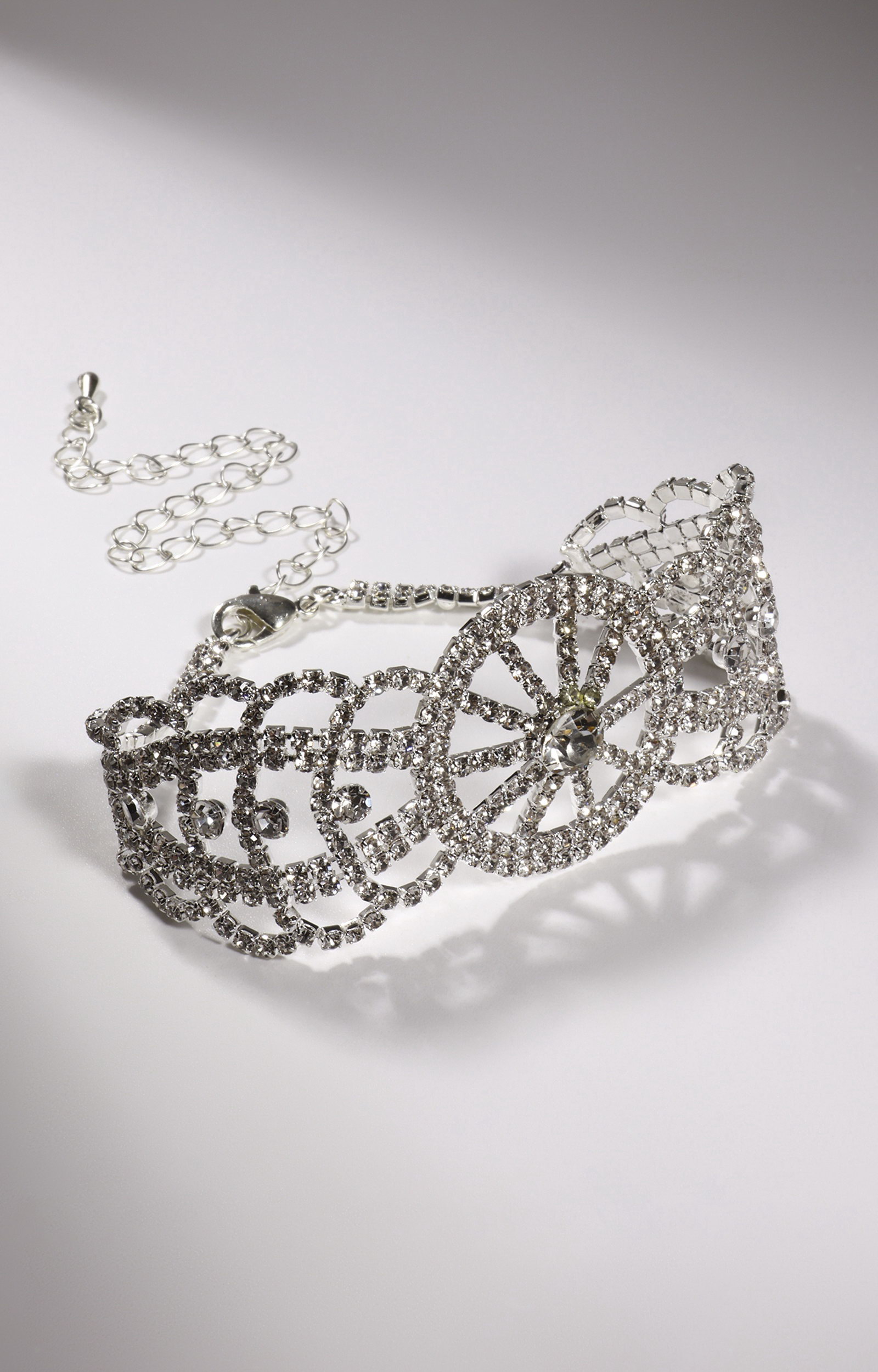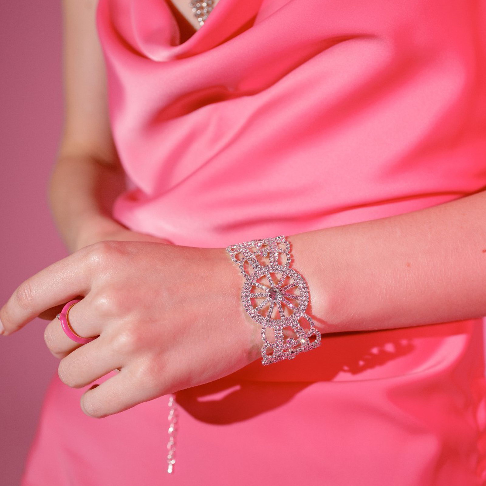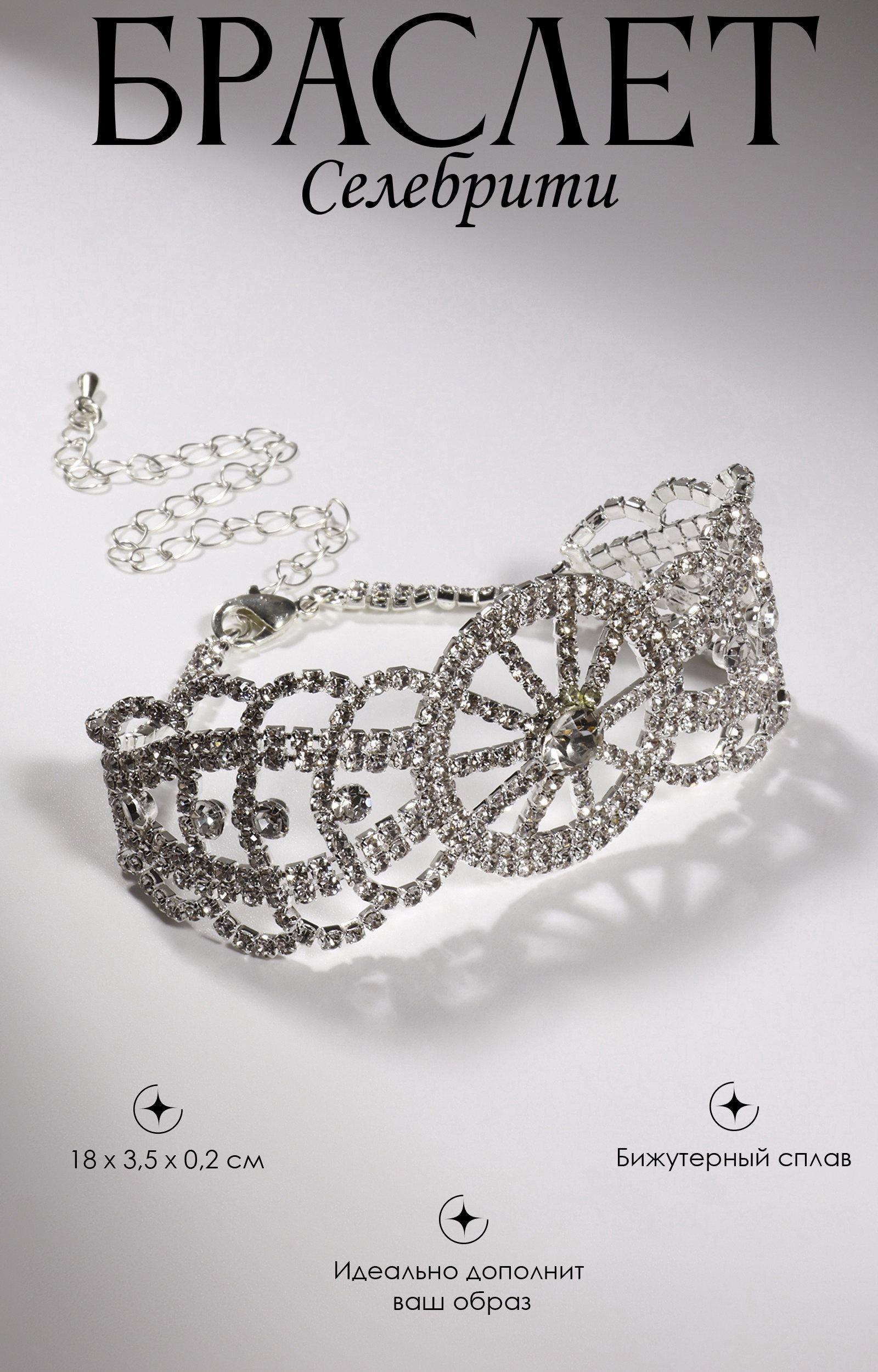 Браслет со стразами "Селебрити", цвет белый в серебре, 18 см, 3.5x18x0.2 см., QF, Китай