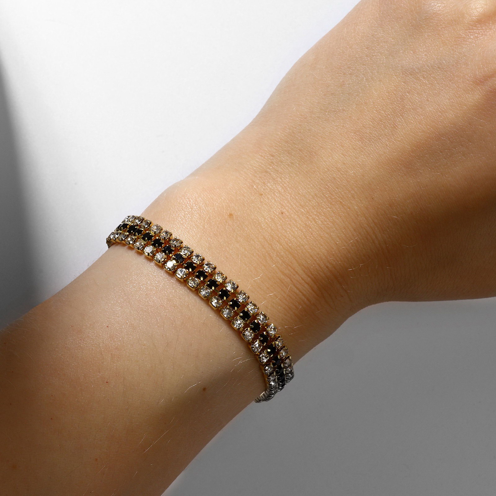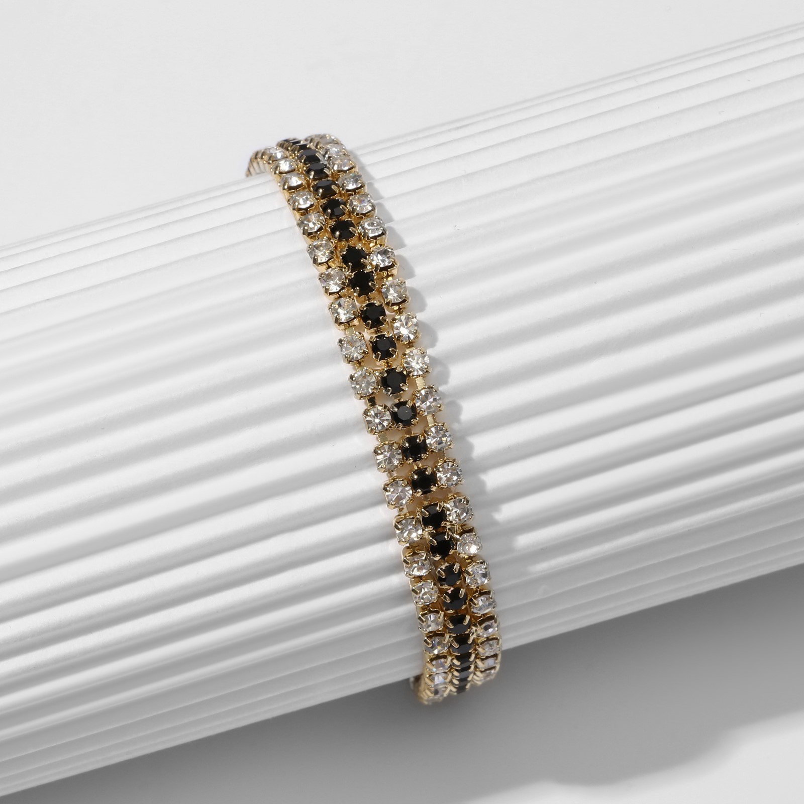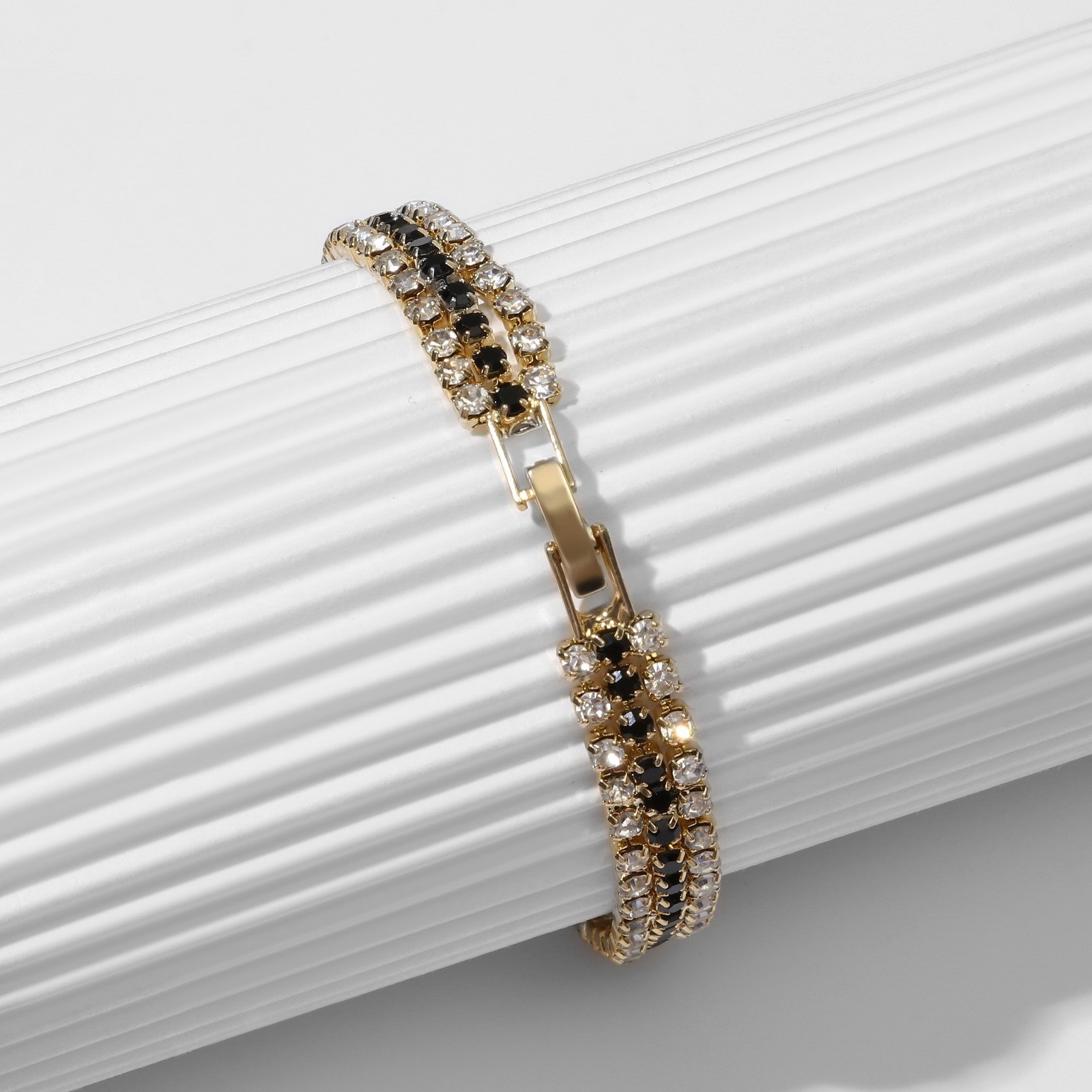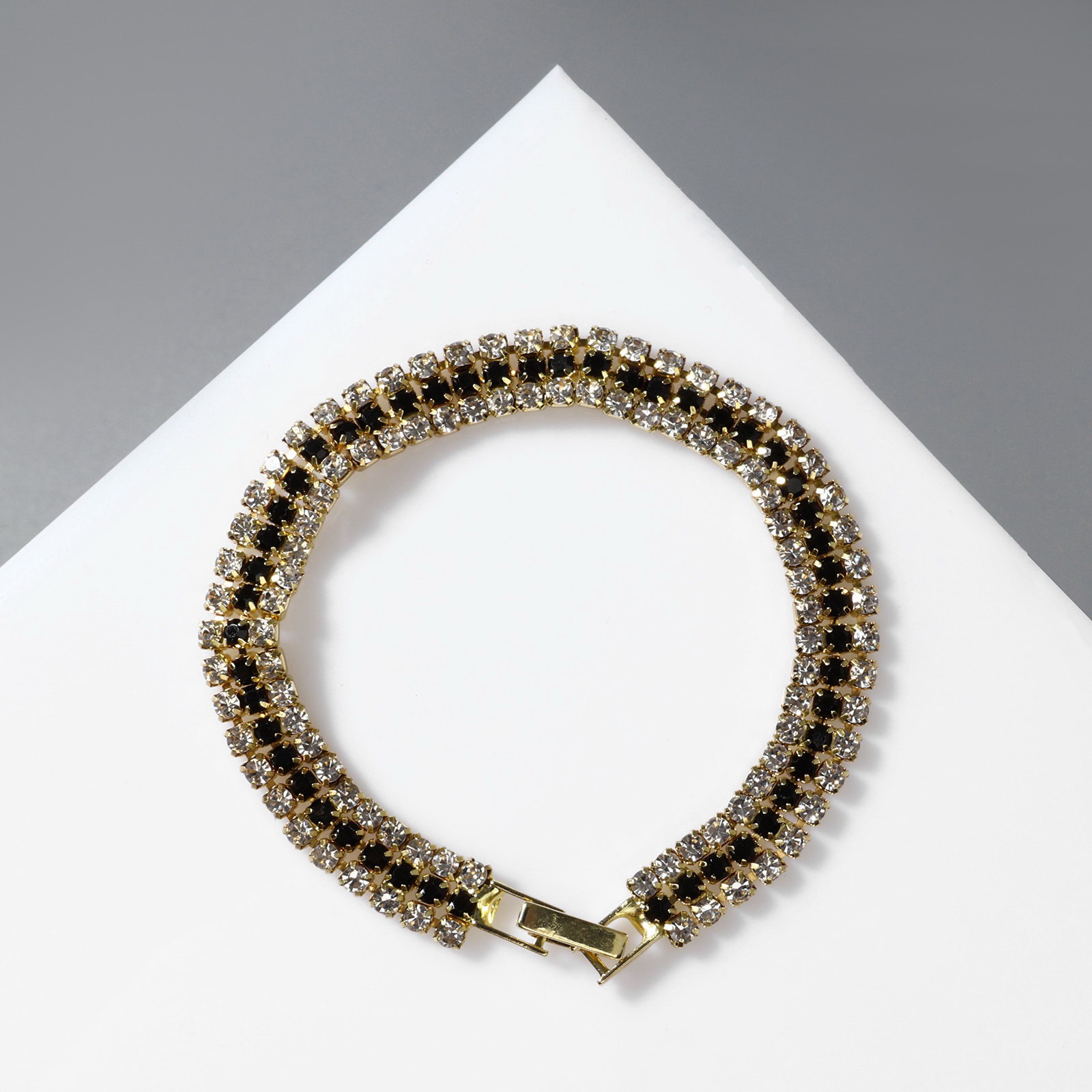 Браслет со стразами "Лёд" элегантность, строчки, цвет бело-чёрный в золоте, L=18 см, 0.6x18x0.2 см., QF, Китай