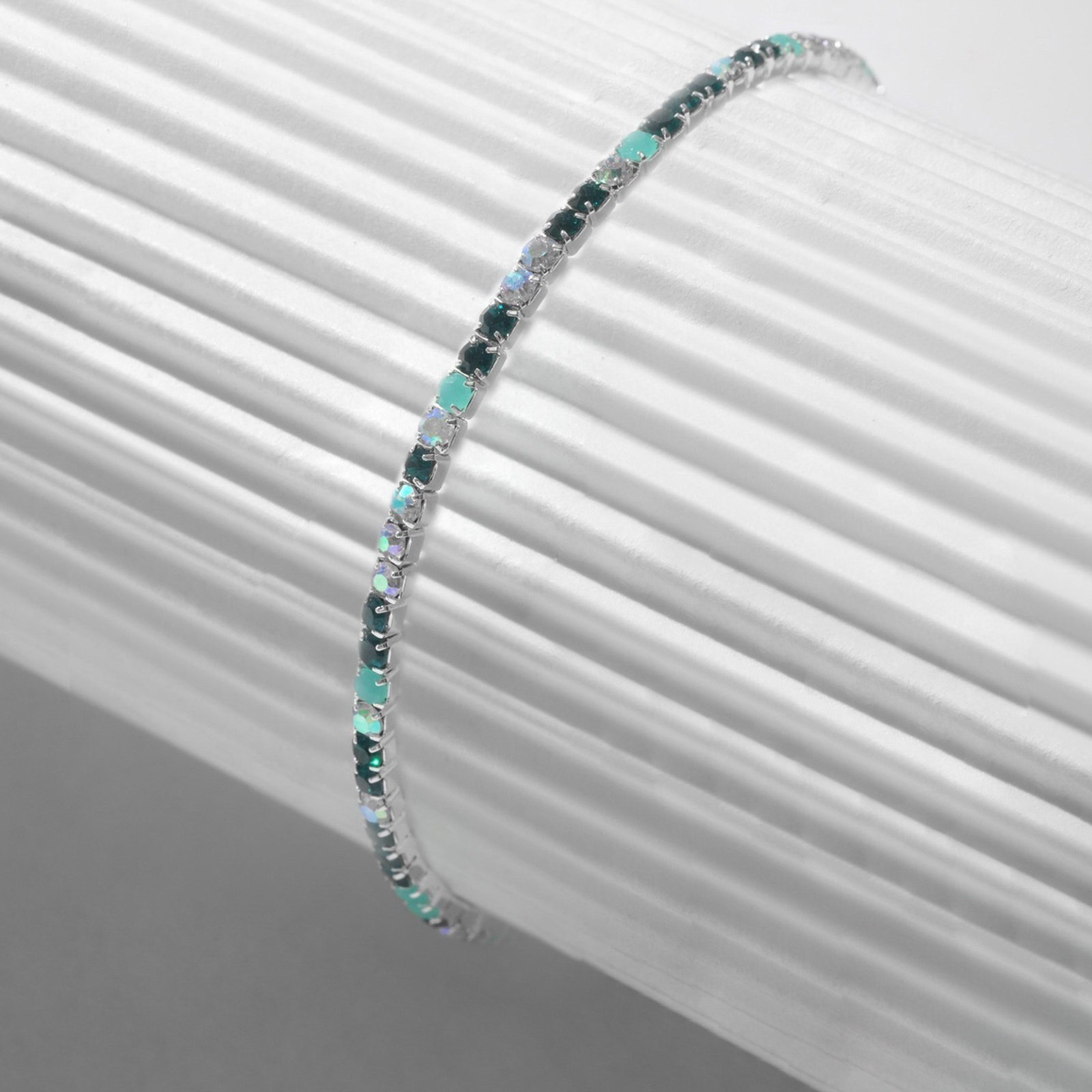 Браслет со стразами "Лёд" 2 мм, мята, зелёный в серебре, 6x6x0.2 см., QF, Китай