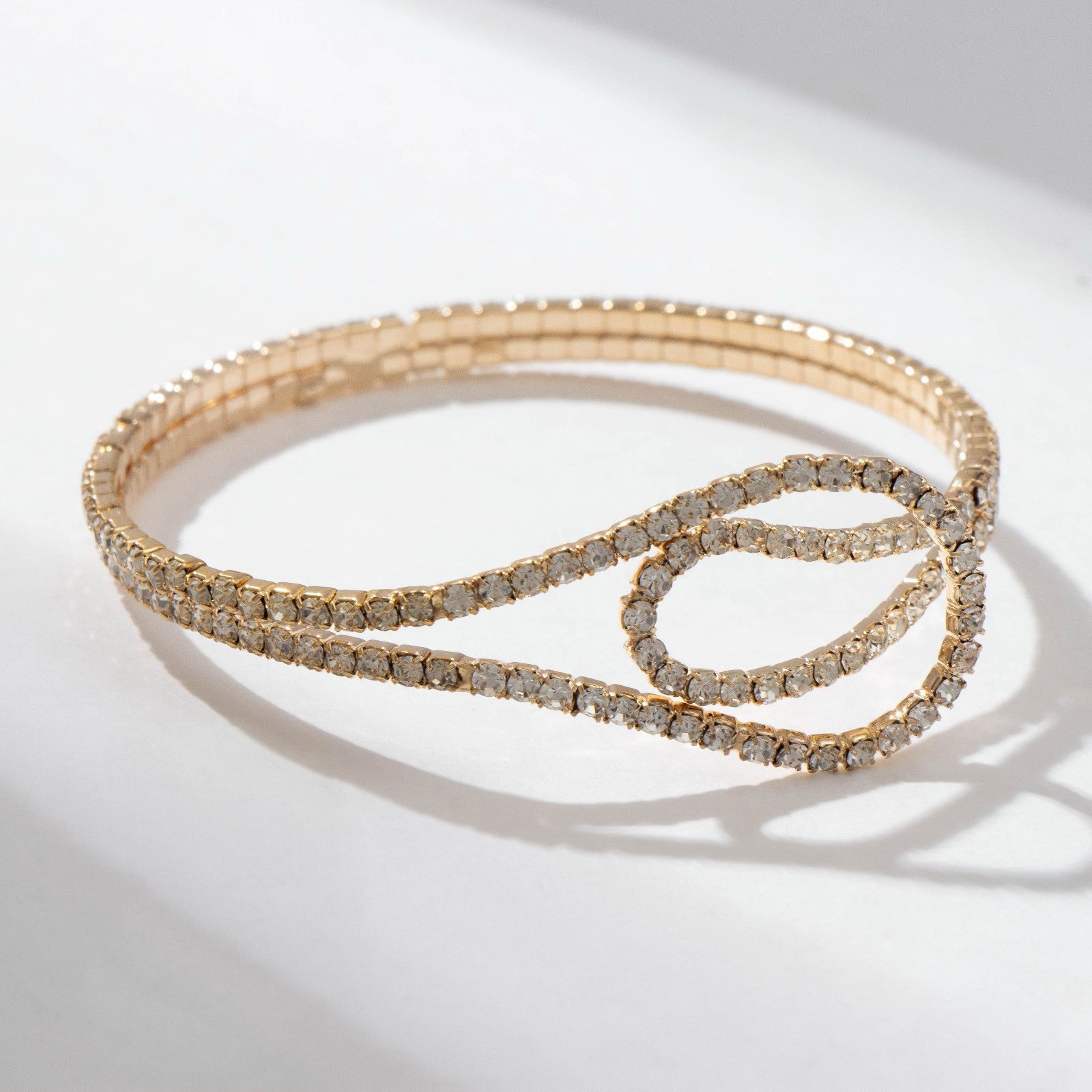 Браслет со стразами "Лёд" волны, цвет белый в золоте, 5.3x5.3x3 см., QF, Китай