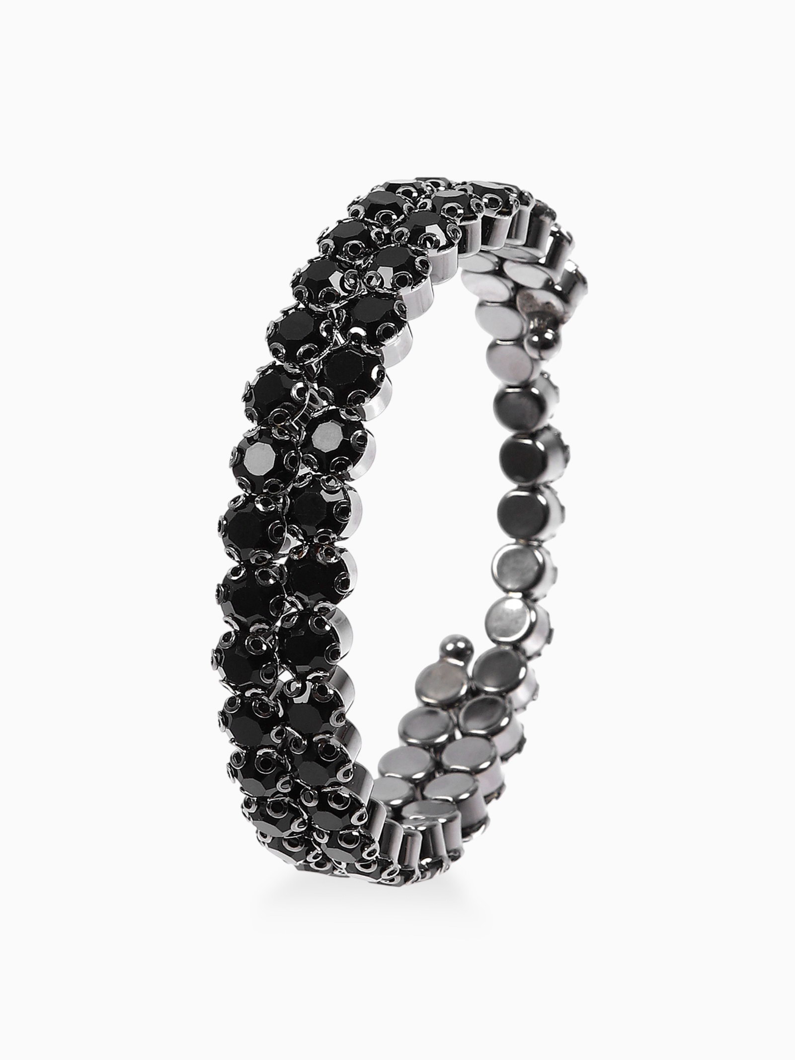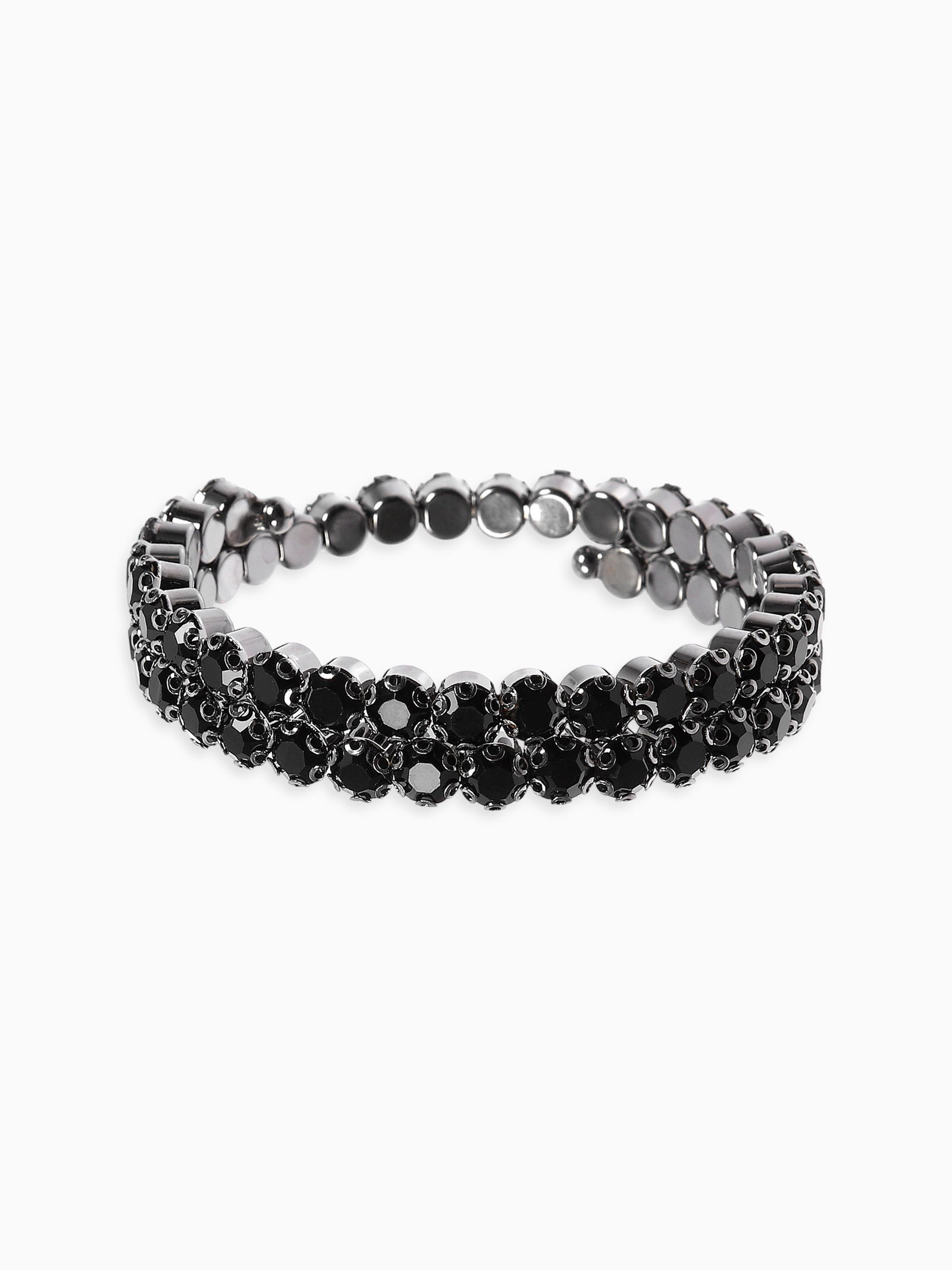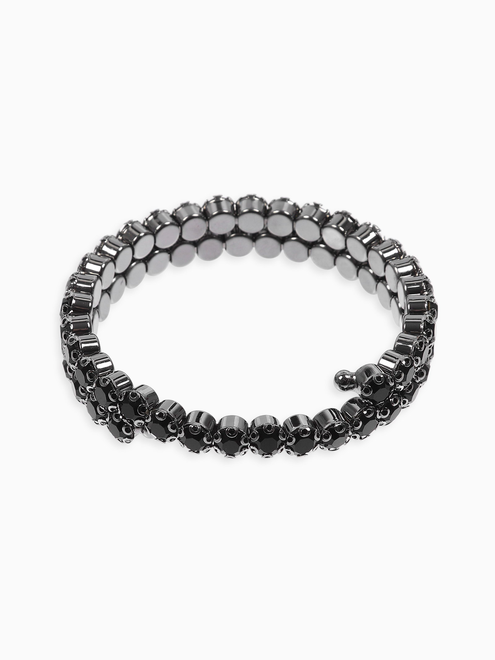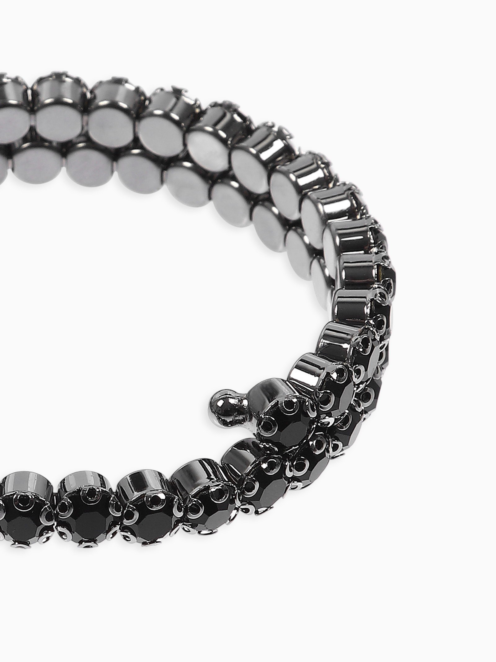 Браслет-пружинка со стразами, чёрный, 6.5x6.5x1.4 см., QF, Китай