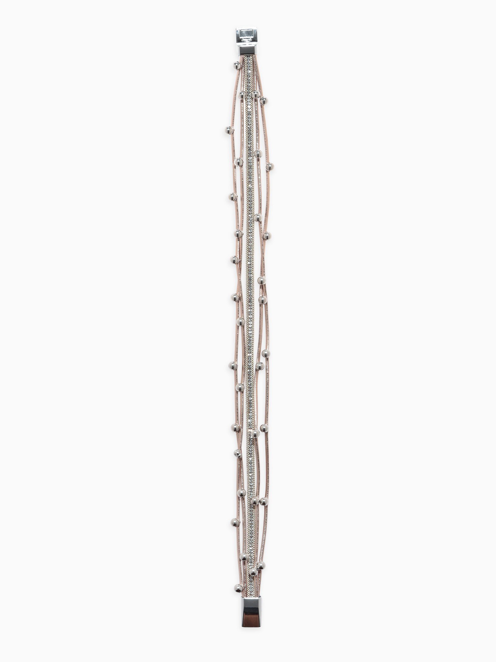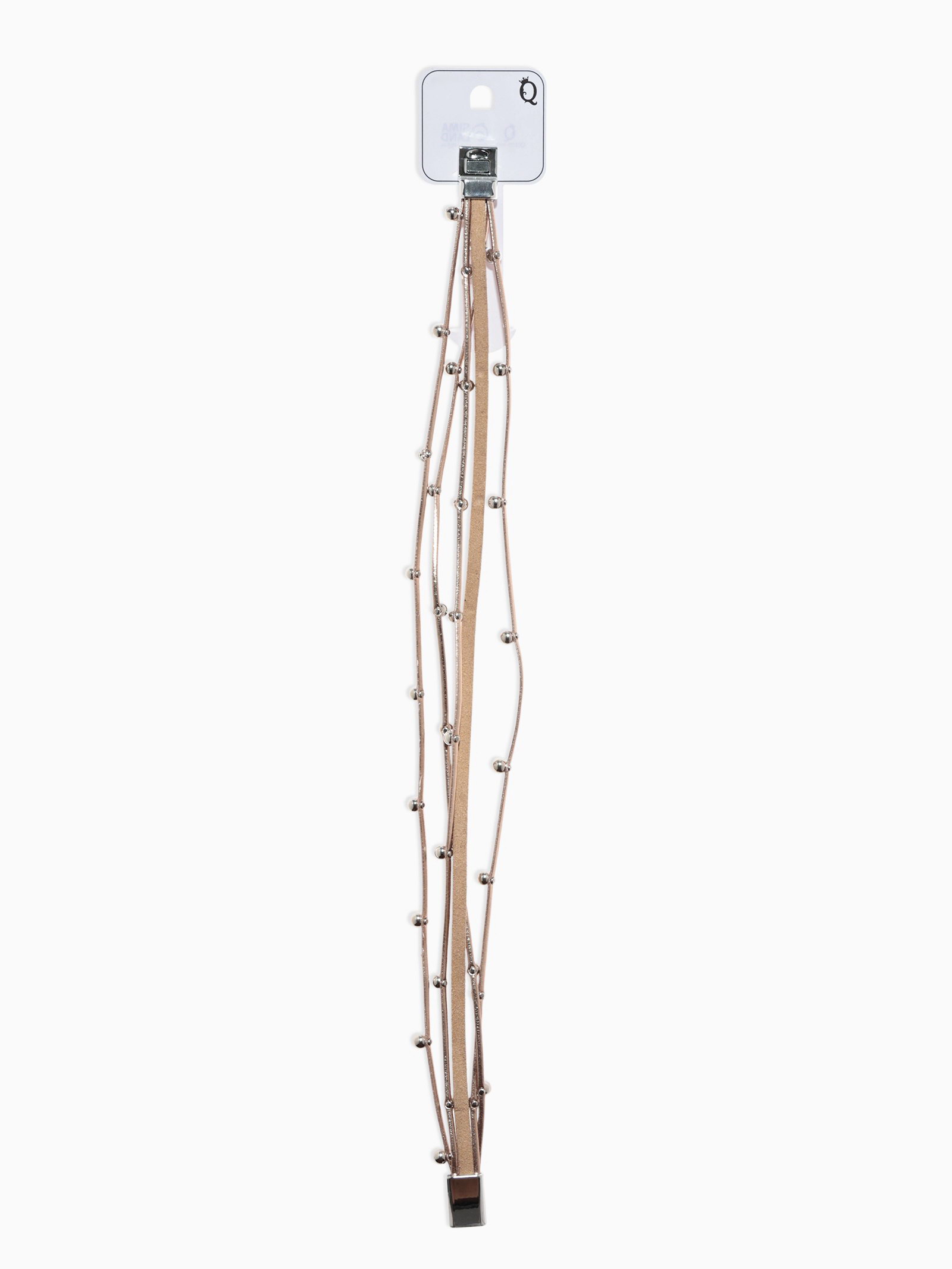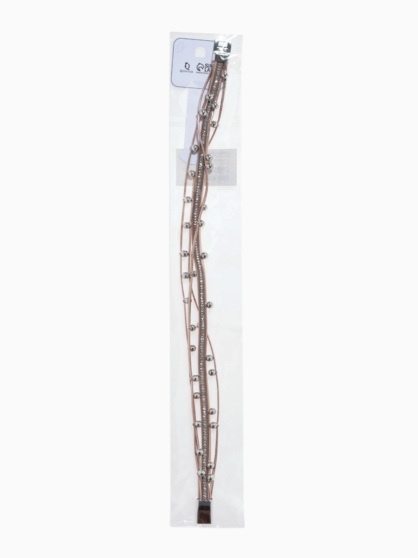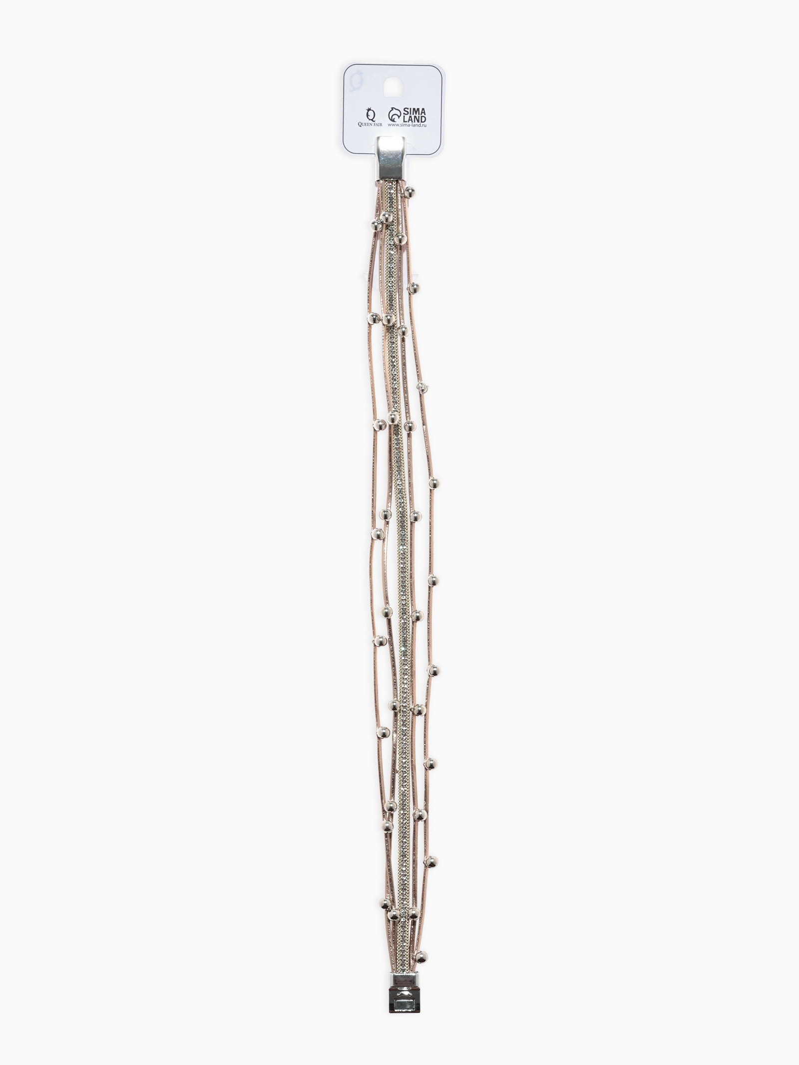 Браслет кожа "На магните" бусинки, бело-бежевый в серебре, 38 см, 2x38x1 см., QF, Китай