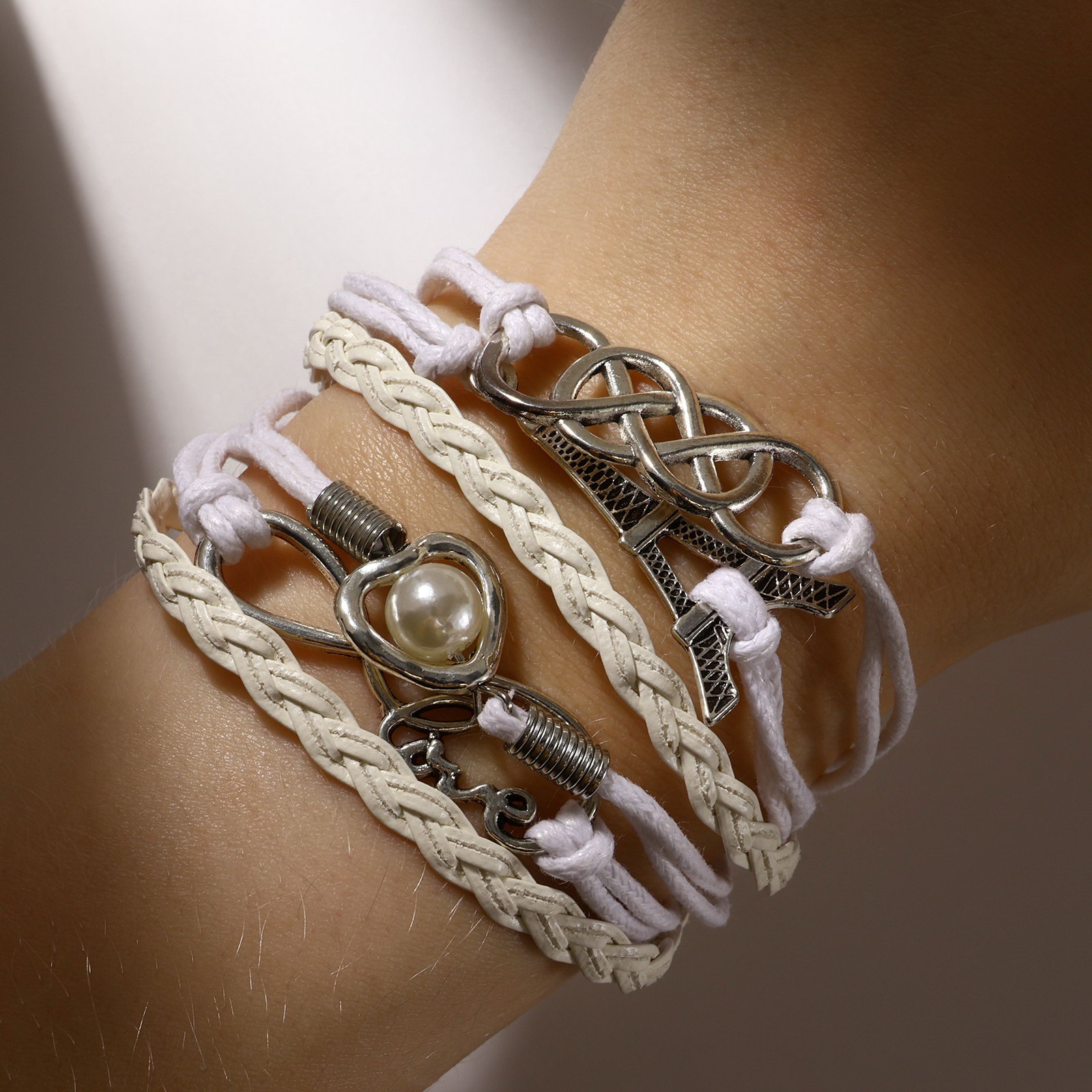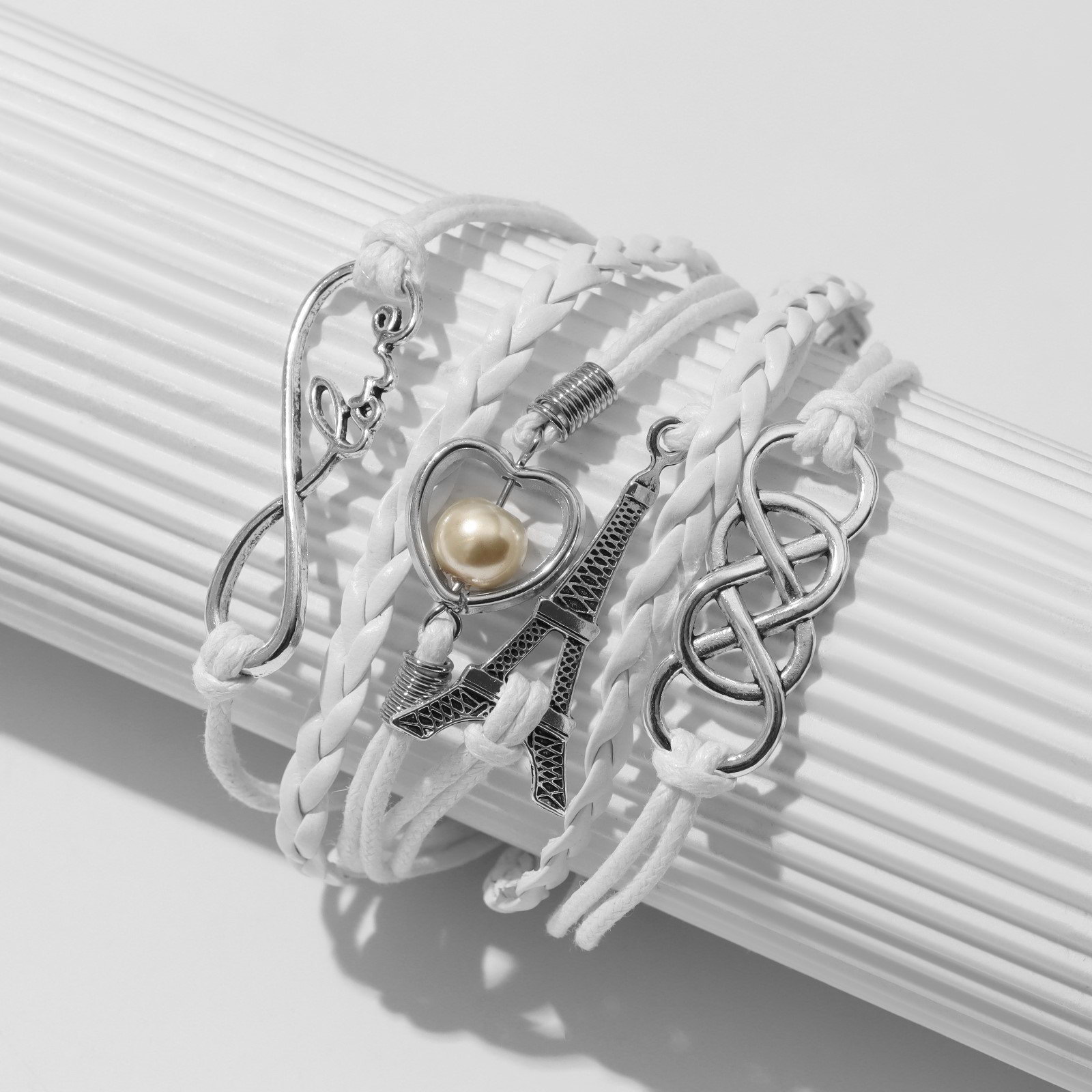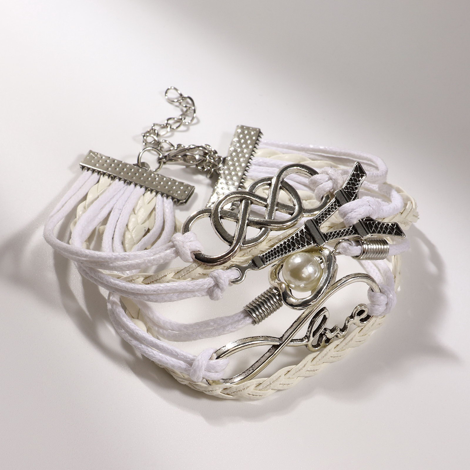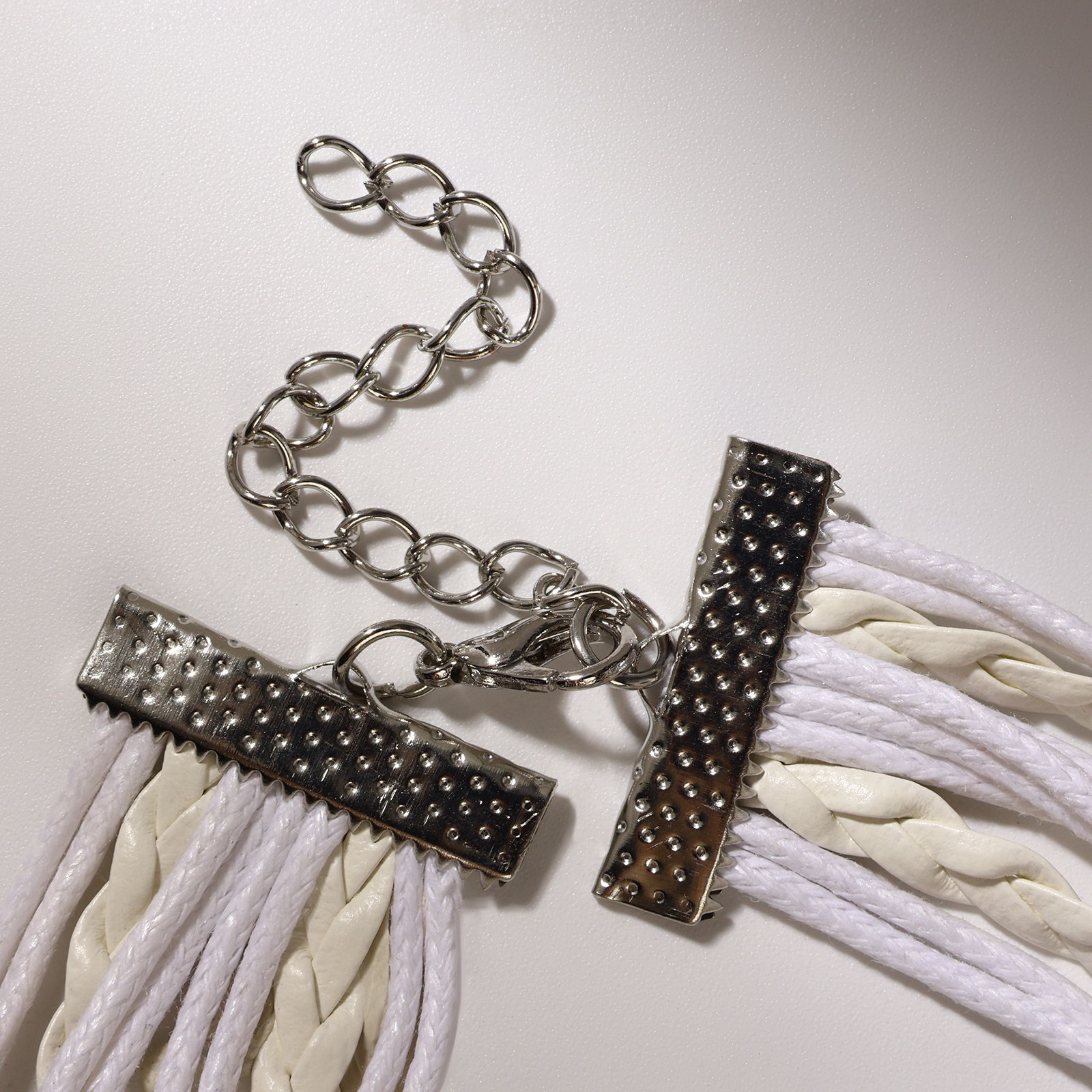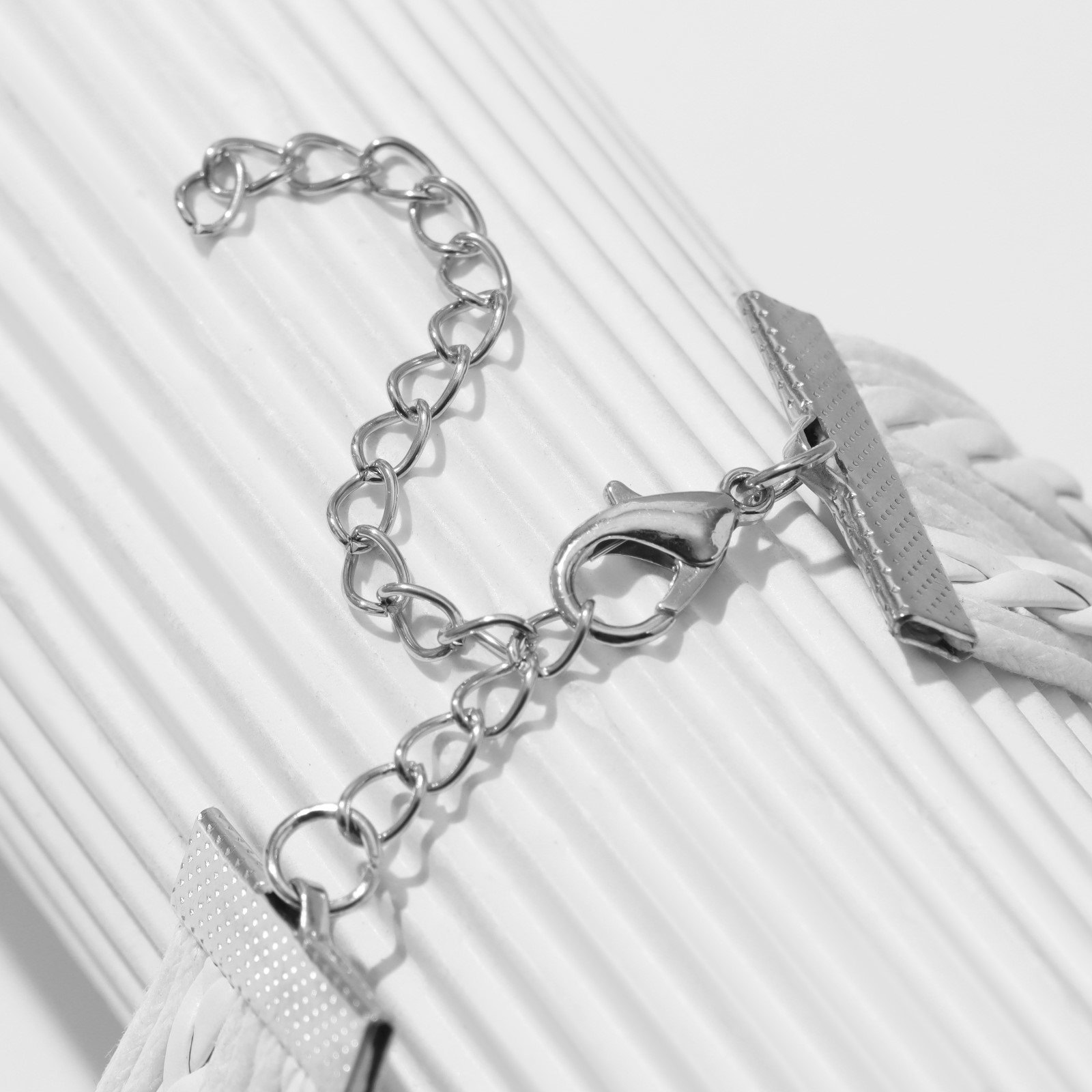 Браслет кожа "Магия знаков" Париж, 6 нитей, белый, L=20 см, 3x20x0.5 см., QF, Китай