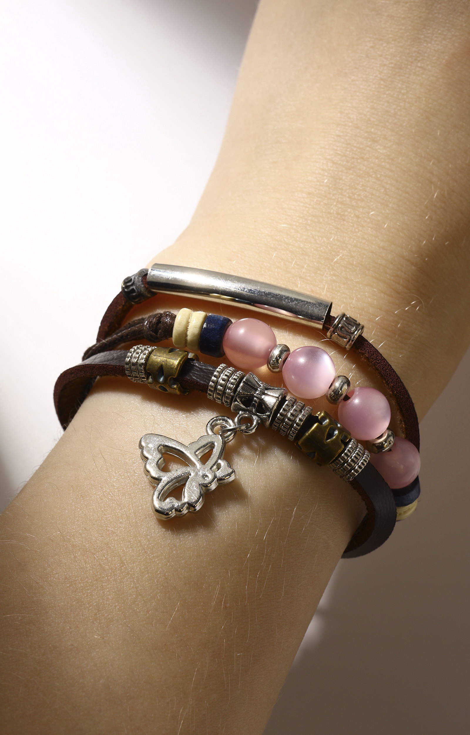 Вид: Браслет, Фенечка Материал основания: Искусственная кожа, Натуральная кожа Материал основы: Искусственная кожа, Кожа Вставка/Подвеска: Дерево, Камень искусственный, Металл, Пластик Размер упаковки: 7 x 2 x 8 см. Для кого: Для женщины Тематика праздника: Универсальная тематика Цвет: Коричневый Цвет вставки: Разноцветный Температурное ограничение: Нет Вид застёжки: Затяжка Бижутерия с открыткой: Нет Бижутерия с открыткой: Нет tnved: 7117900000 Тематика: Насекомые Цвет фурнитуры: Серебряный Длина, см: 8 Набор: Нет Изысканный браслет из натуральной и искусственной кожи в тёплом коричневом оттенке объединяет в себе утончённость и свободу самовыражения. Его длина 8 см и регулируемая затяжка позволяют легко подстроить аксессуар под индивидуальные параметры запястья, обеспечивая комфорт и надёжную фиксацию. Центральным элементом украшения служит подвеска в виде бабочки с эффектом "кошачьего глаза", которая переливается разнообразными оттенками, добавляя образу лёгкости и загадочности. Разноцветные вставки из пластика, дерева, искусственного камня и металла гармонично сочетаются с серебристой фурнитурой, создавая неповторимый визуальный акцент.