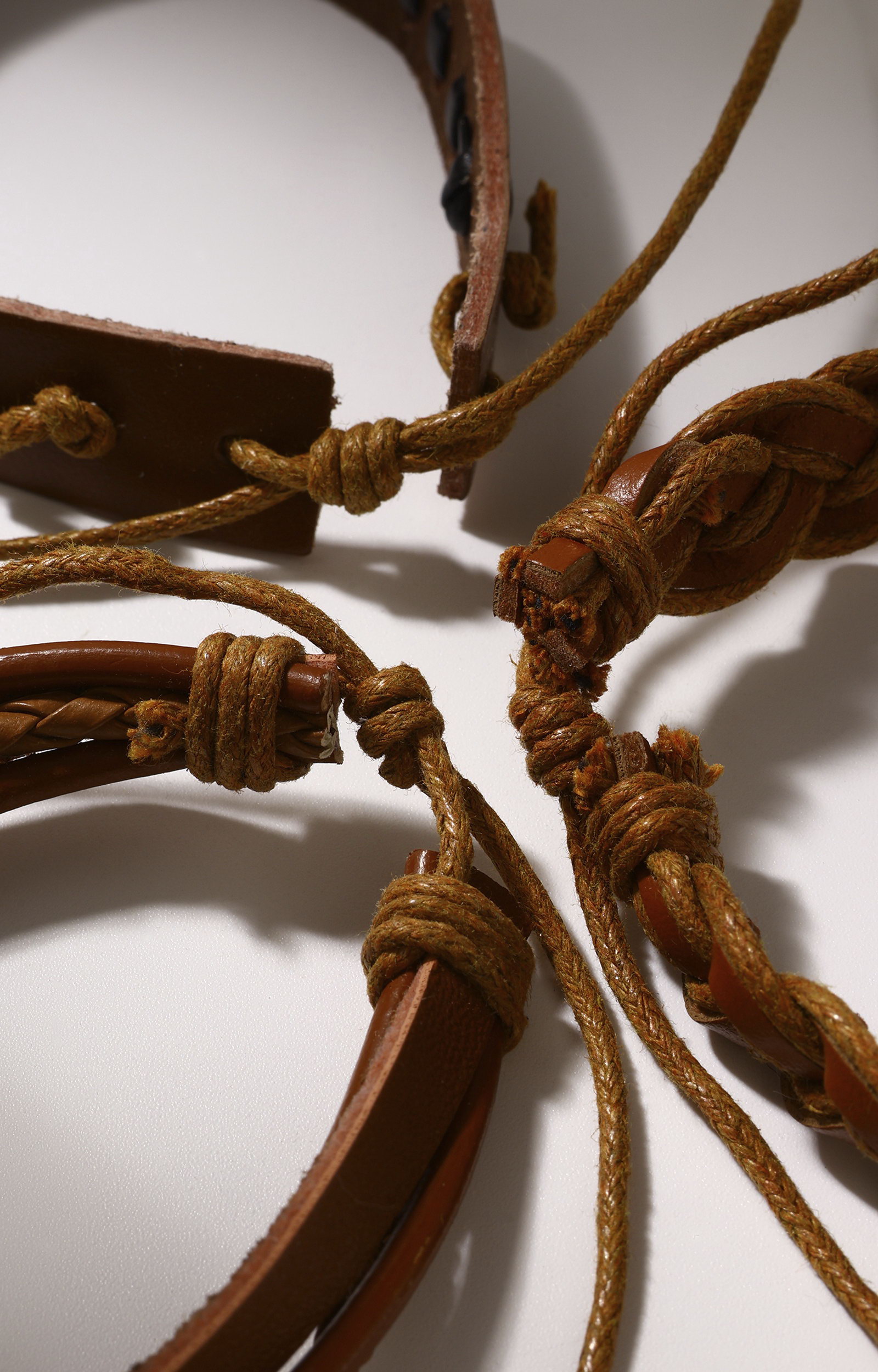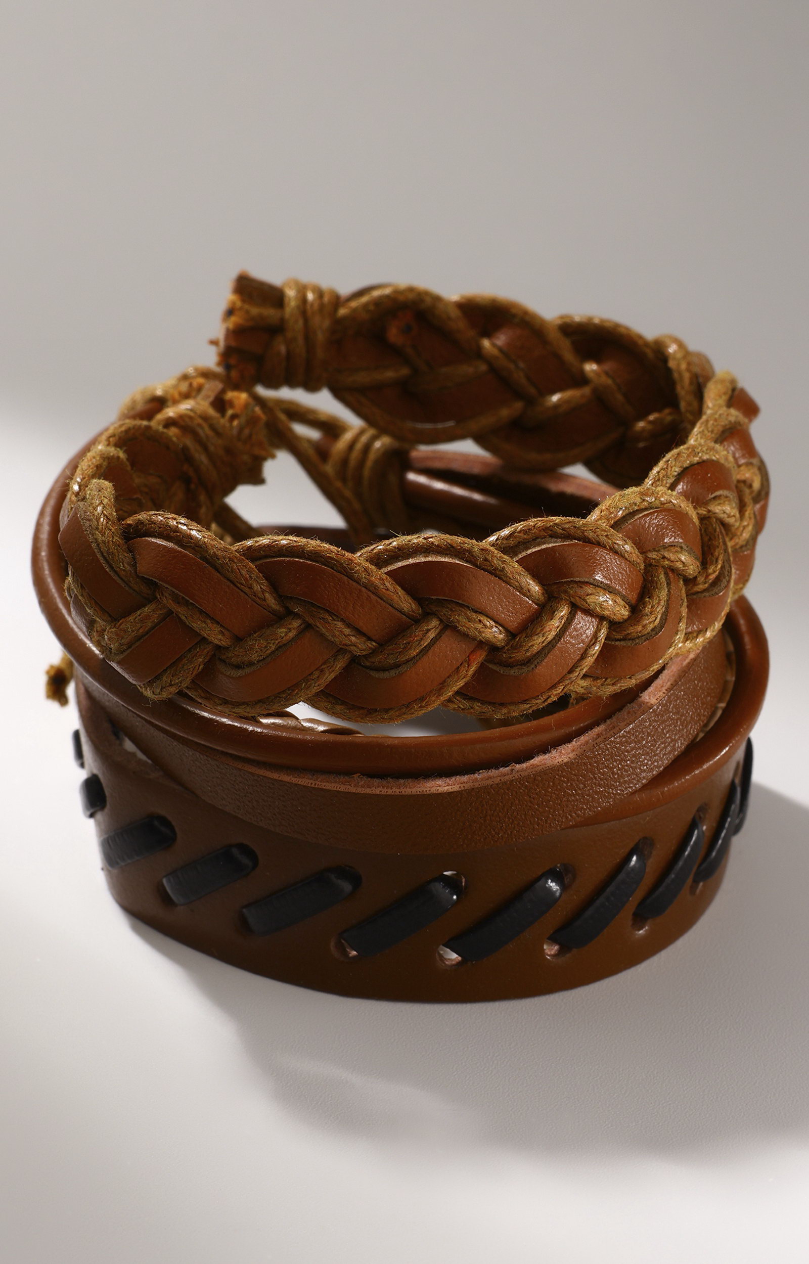 Браслет кожа "Тревел" 3 шт., коричневый, d=7.5 см, 5x7.5x0.5 см., QF, КИТАЙ