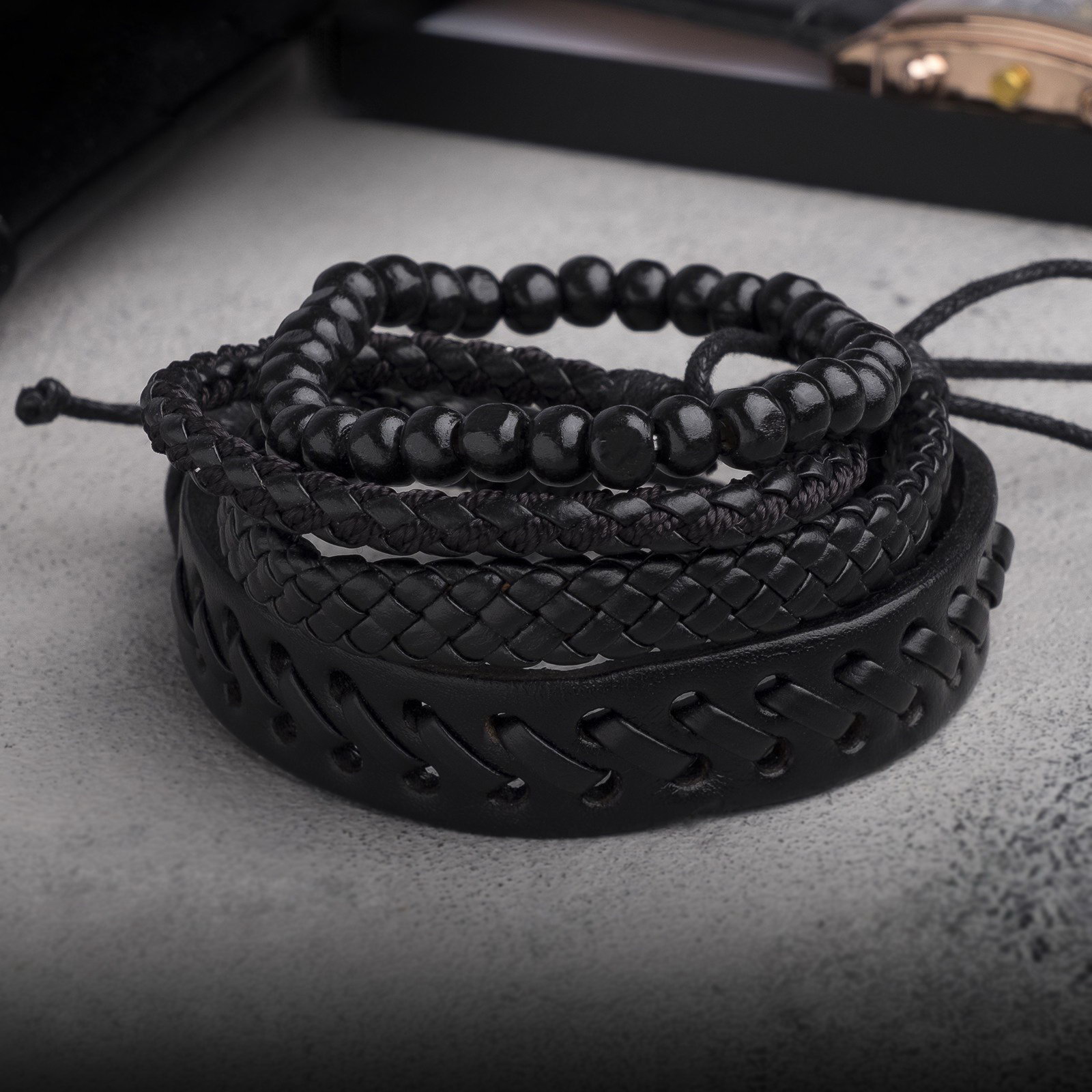 Вид: Браслет, Браслет из бусин, Фенечка Для кого: Для женщины, Для мужчины, Унисекс Материал основания: Искусственная кожа, Натуральная кожа Материал основы: Искусственная кожа, Кожа Вставка/Подвеска: Дерево, Текстиль Размер упаковки: 7 x 3 x 8 см. В наборе, шт.: 4 Тематика праздника: Универсальная тематика Состав набора: Браслеты Набор: Да Температурное ограничение: Нет Бижутерия с открыткой: Нет Вид застёжки: Затяжка tnved: 7117190000 Тематика: Знаки, символы, обереги Цвет: Чёрный Длина, см: 7.5 Цвет фурнитуры: Без фурнитуры Чёрный набор из четырёх браслетов сочетает в себе натуральную и искусственную кожу, создавая стильный и универсальный аксессуар для женщин, мужчин и тех, кто предпочитает унисекс. Длина каждого браслета 7,5 см, что обеспечивает комфортную посадку на запястье, а затяжка позволяет легко регулировать размер под индивидуальные предпочтения. Вставки из дерева и текстиля добавляют изделию выразительную текстуру и особый шарм, подчёркивая внимание к деталям и высокое качество исполнения. Отсутствие металлической фурнитуры делает браслеты лёгкими и гипоаллергенными, что особенно важно для ежедневного ношения.