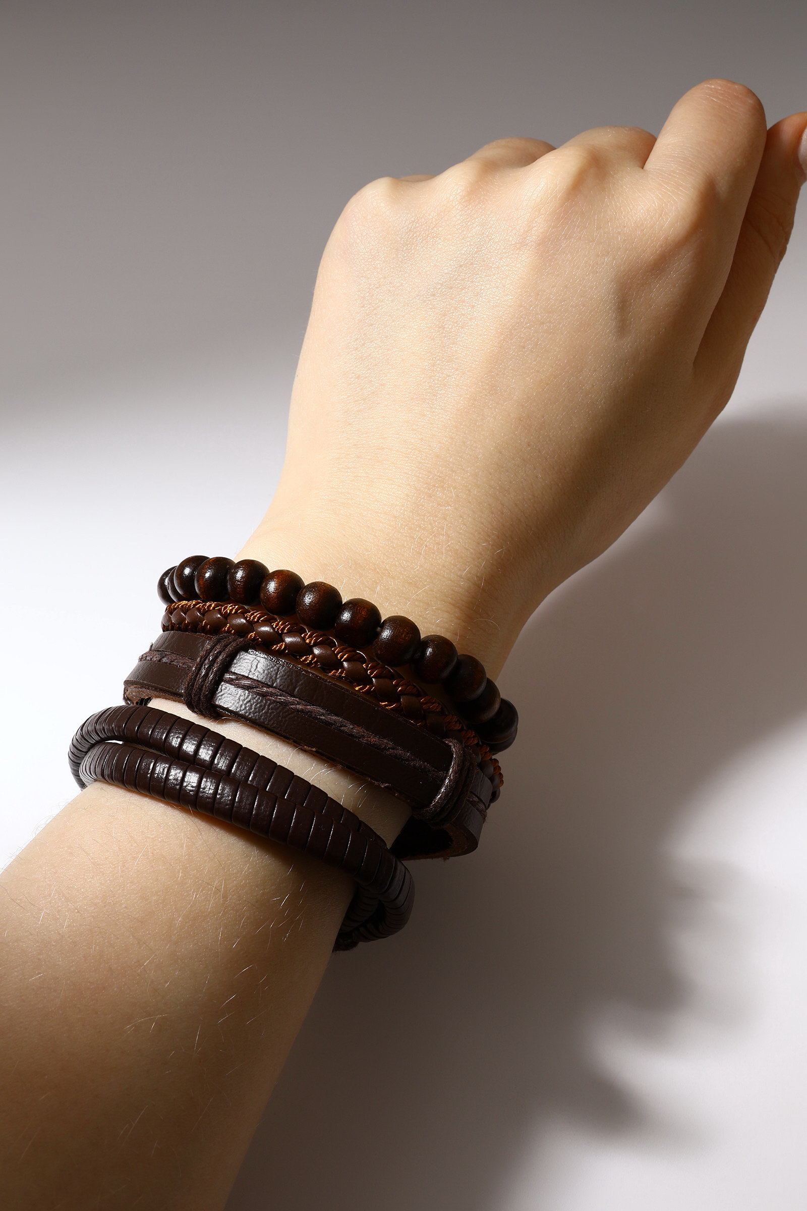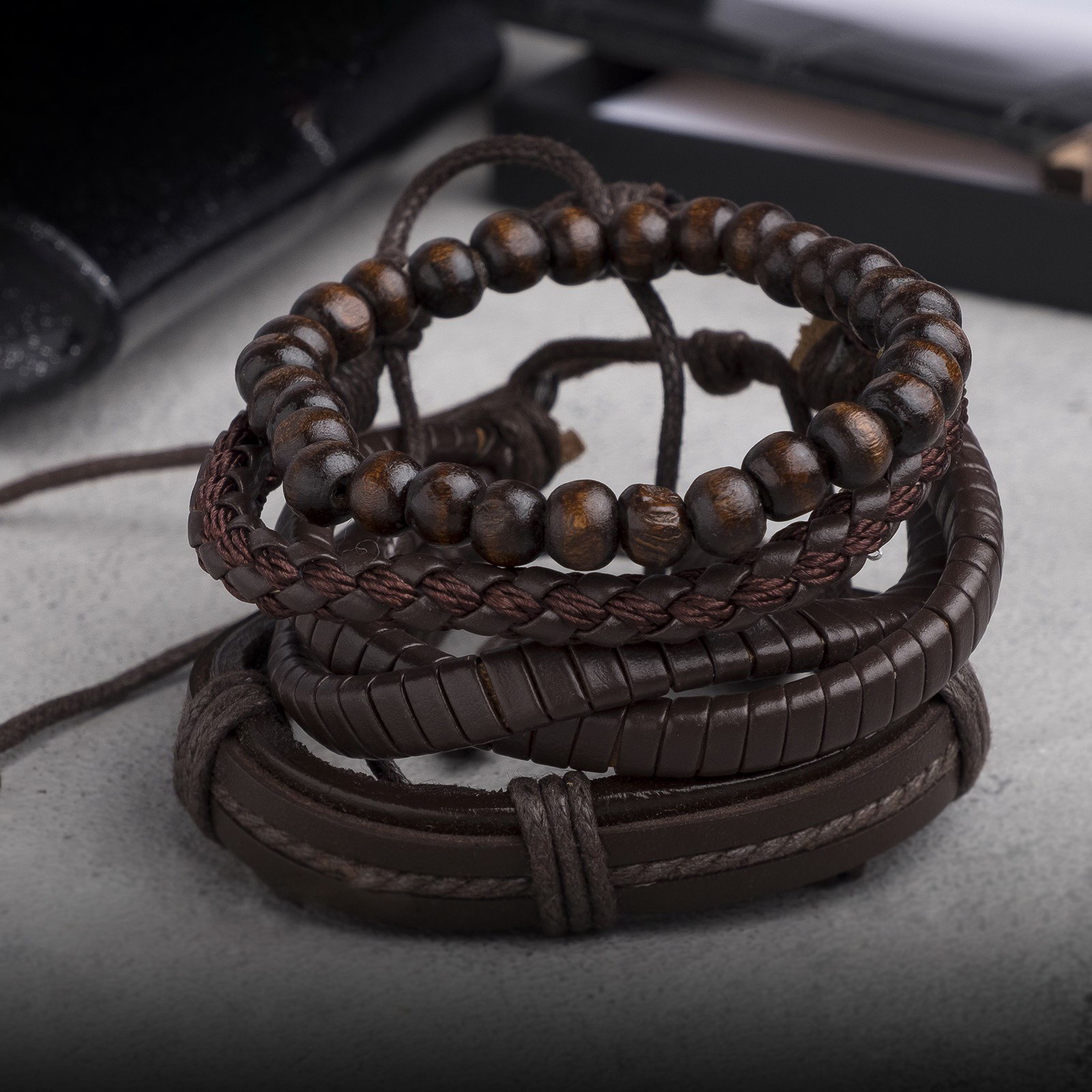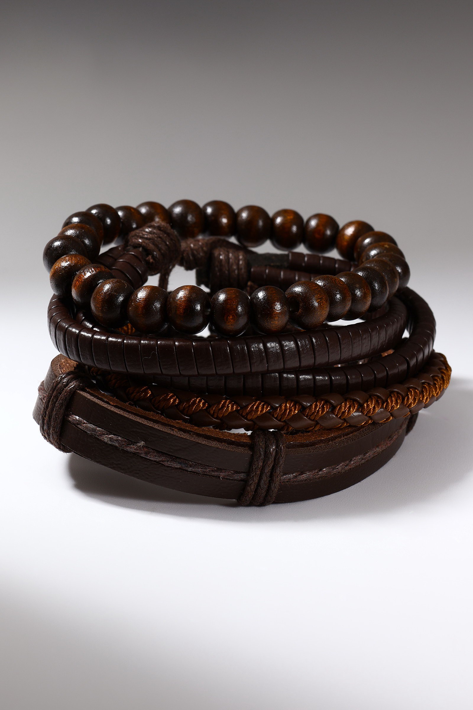 Набор браслетов "Парун", 4 шт. кожа, коричневый, d=7.5 см, 4.5x7.5x1 см., QF, Китай