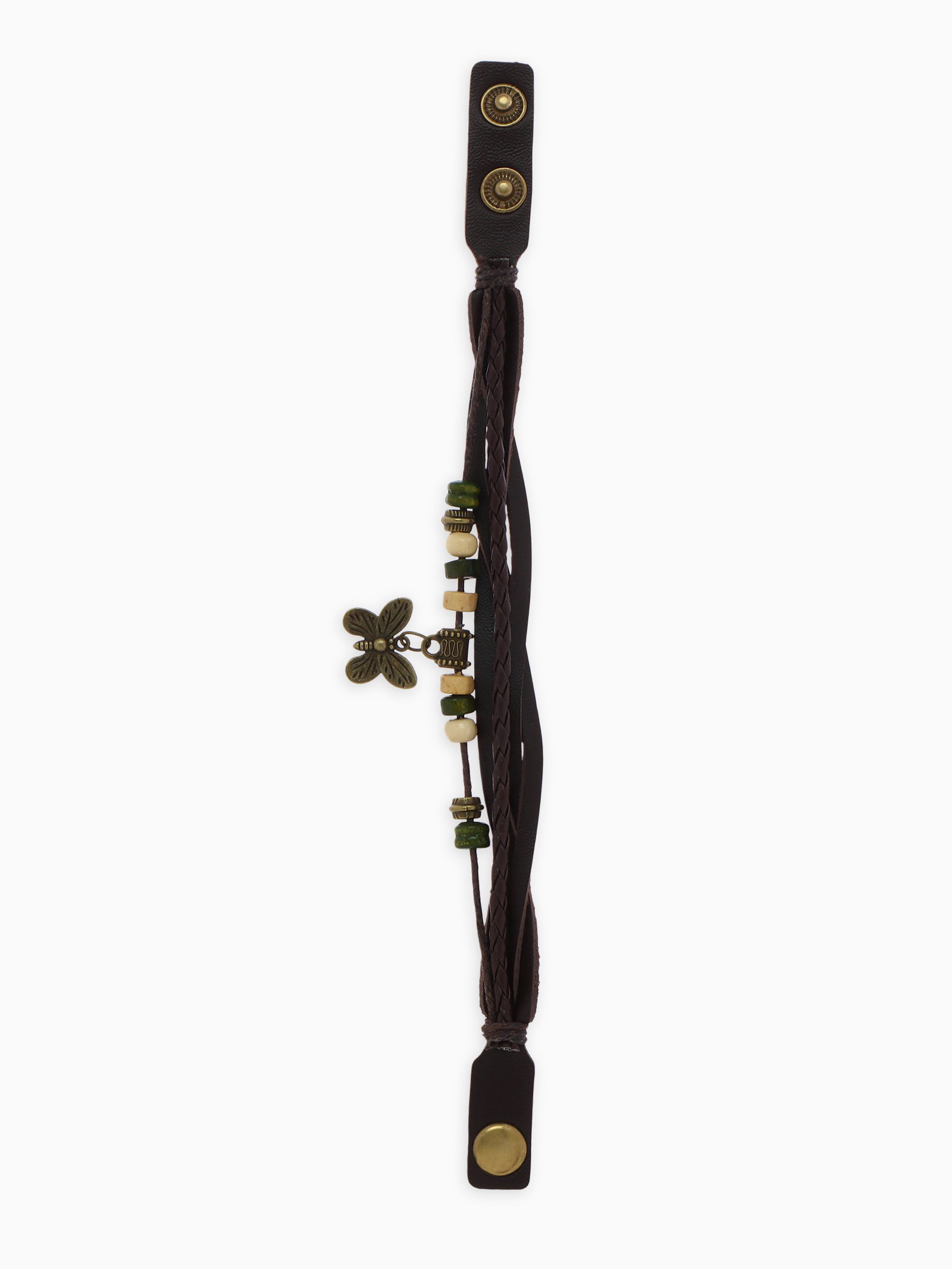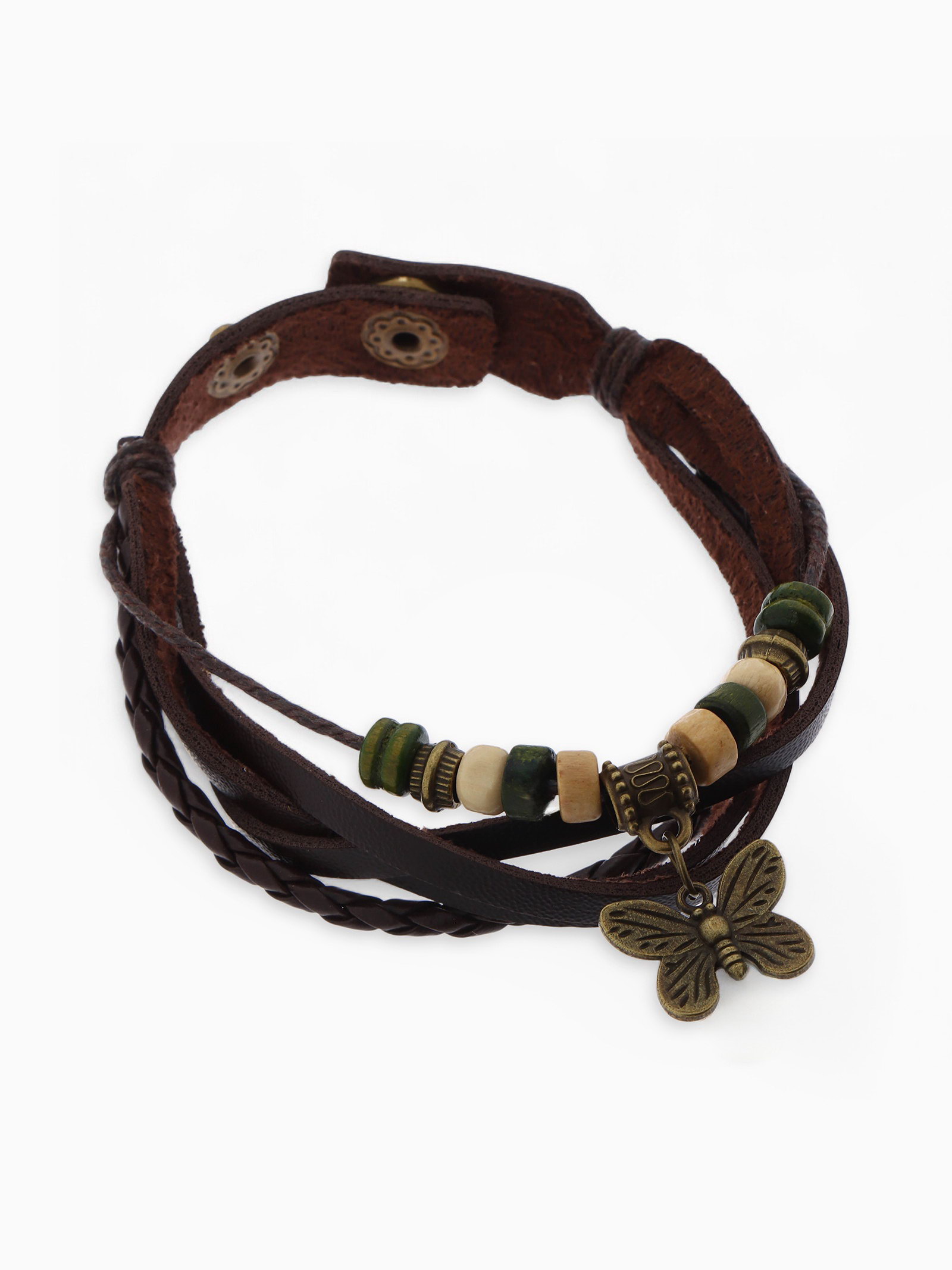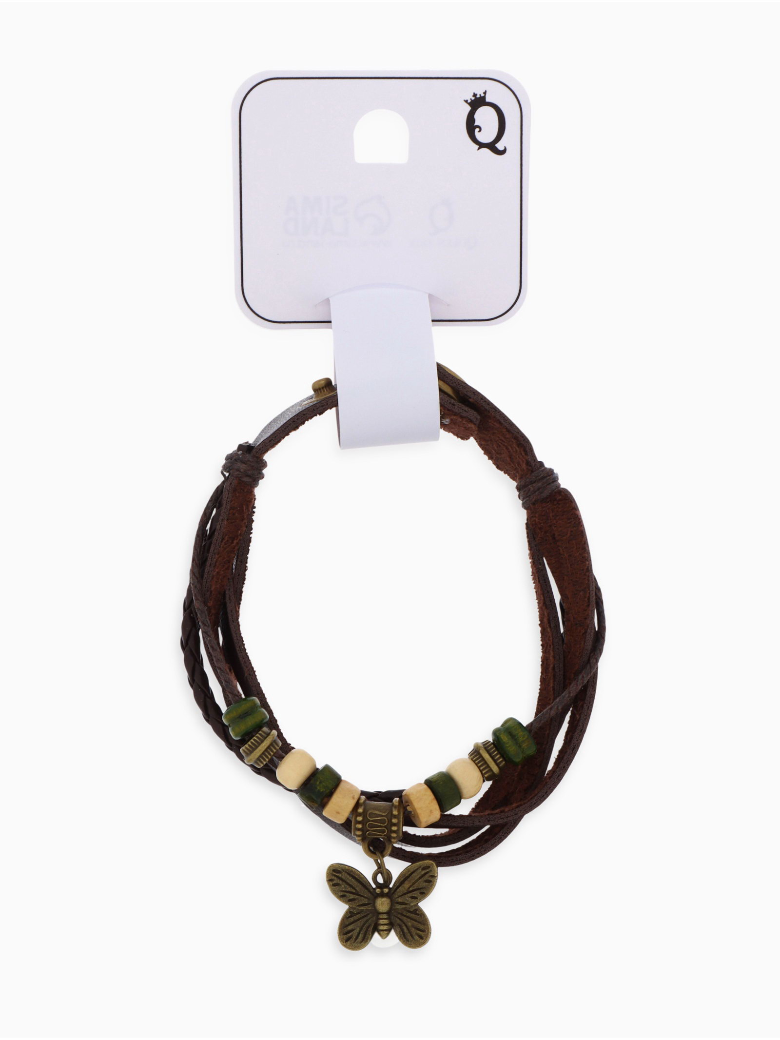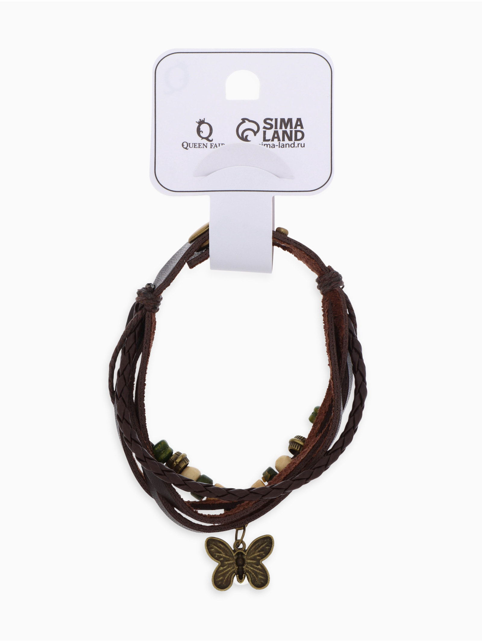 Браслет кожа "Бабочка малая" хиппи, коричневый, L=22.5 см, 2.5x22.5x1 см., QF, Китай