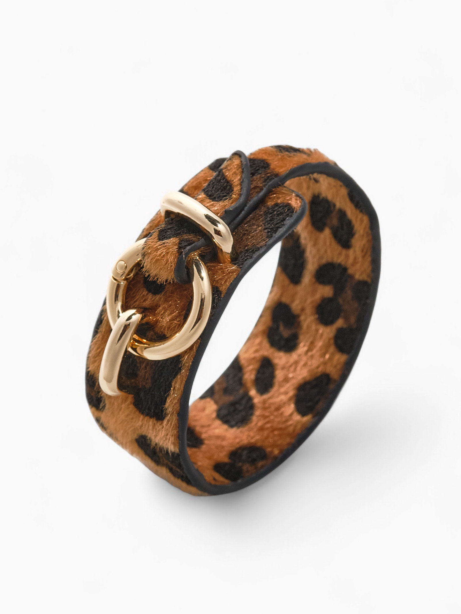 Браслет кожа "Сафари" леопард, цвет чёрно-коричневый, 17.5 см, 3.5x17.5x1 см., QF, Китай