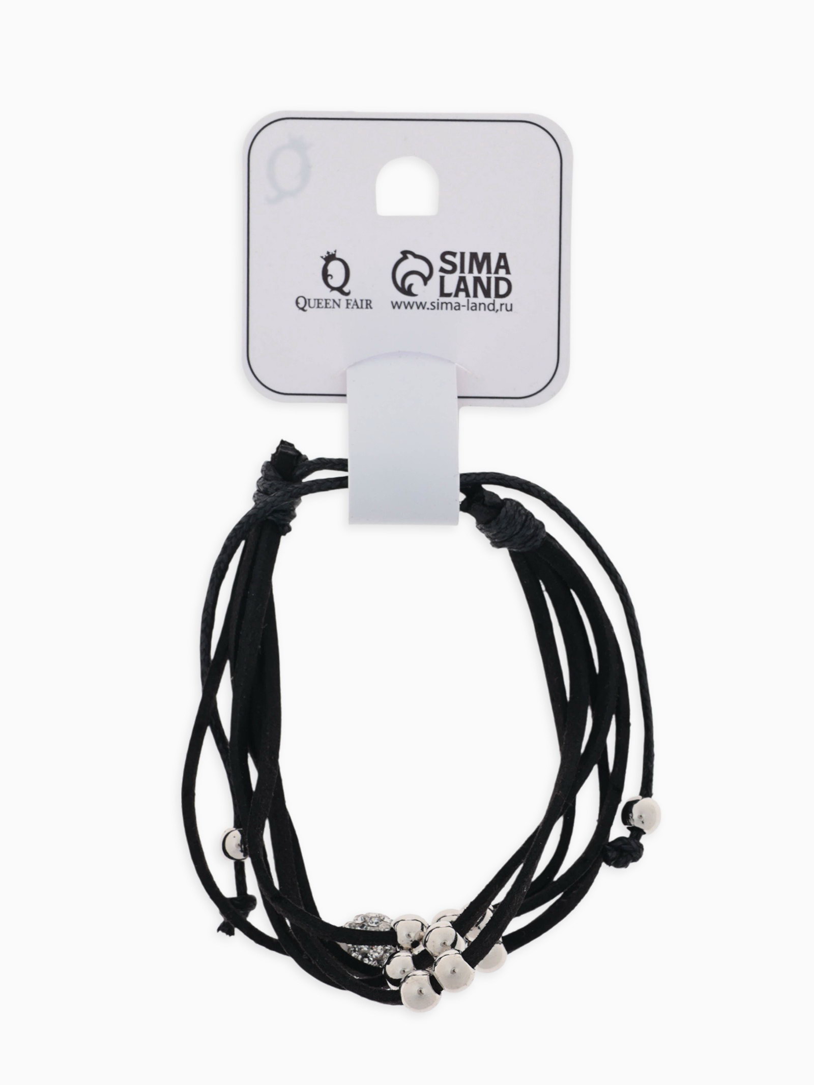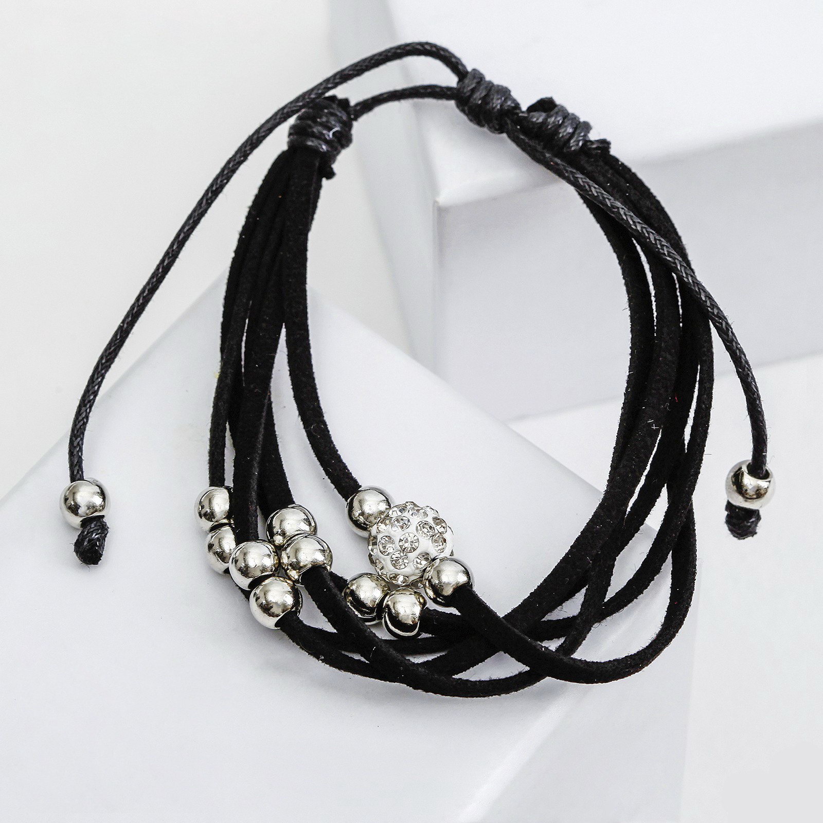 Браслет кожа "Шамбала" 5 нитей, замша, чёрный, d=8 см, 1x8x1 см., QF, Китай