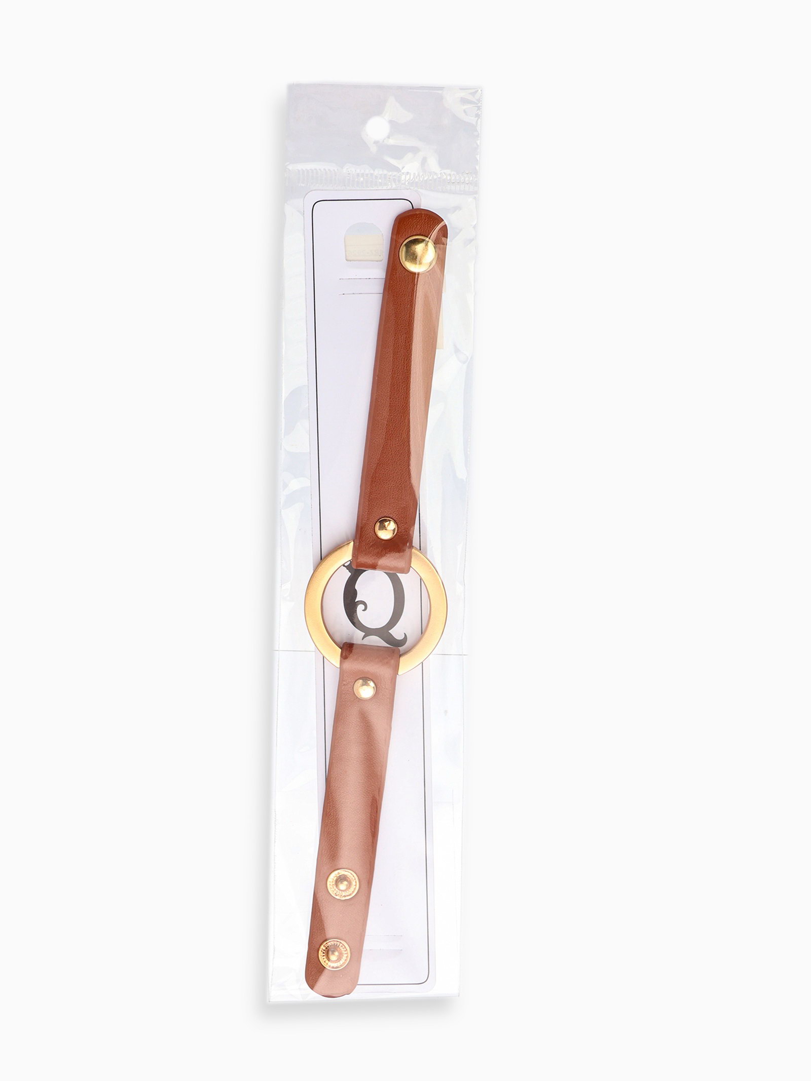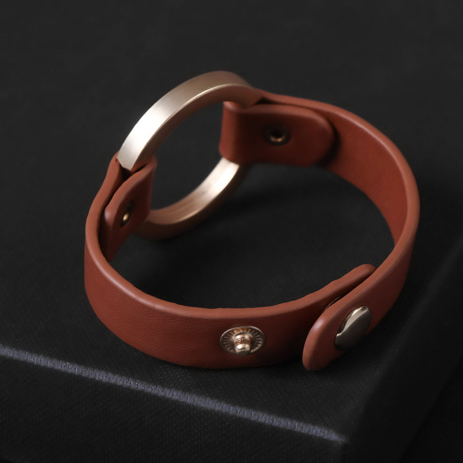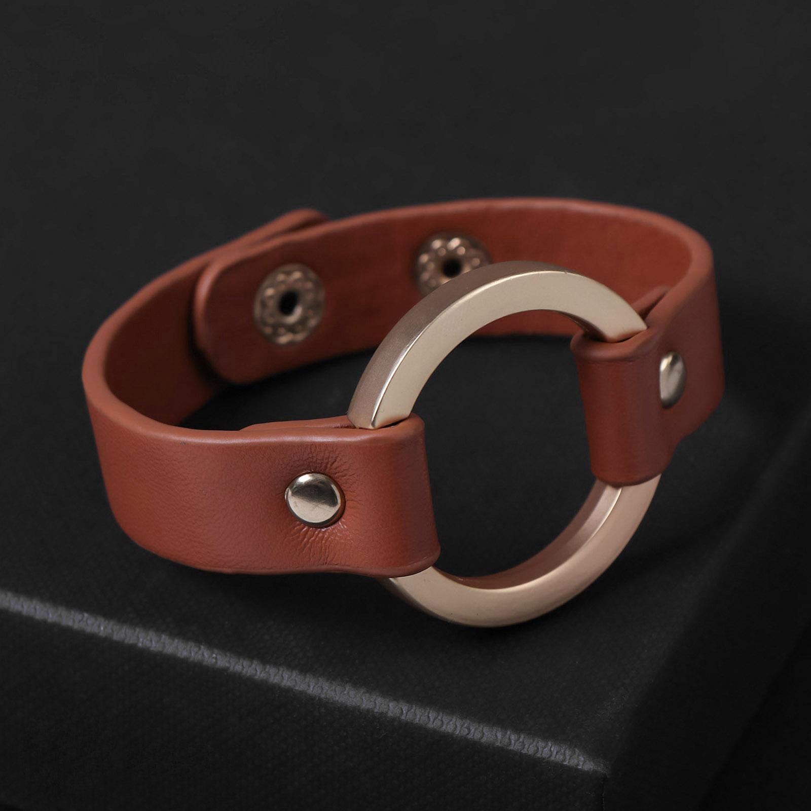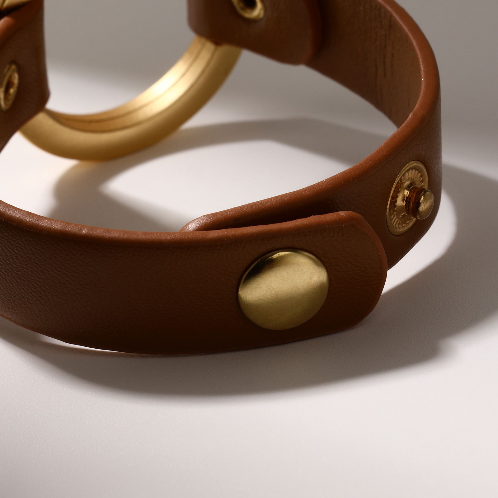 Браслет кожа "Помпеи" заклёпки, коричневый в золоте, 21 см, 3.5x21x0.5 см., QF, Китай