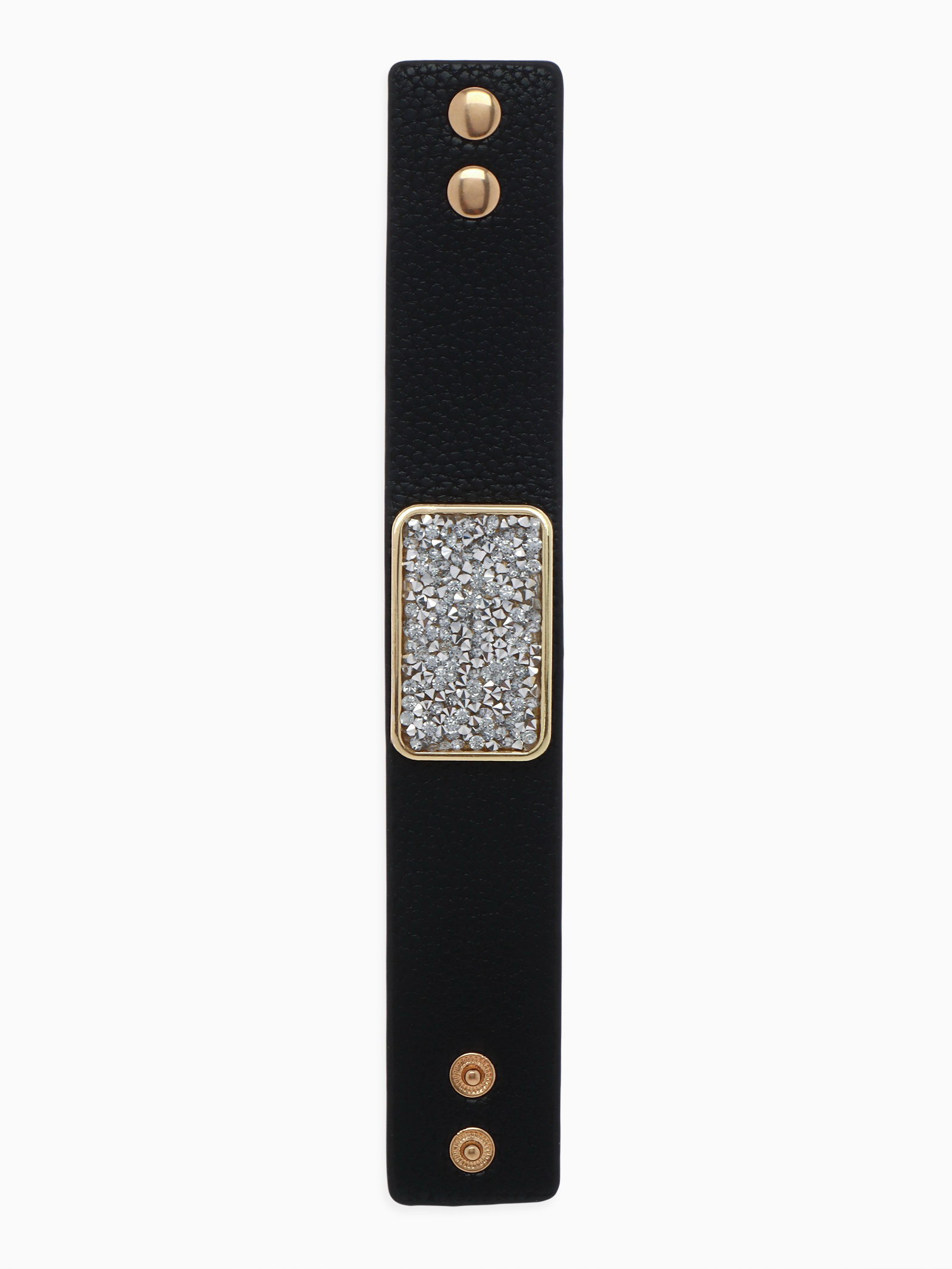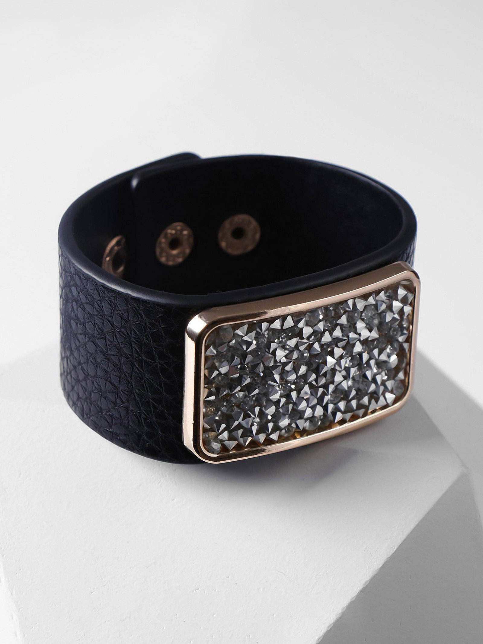 Браслет кожа "Помпеи" стразы, бело-чёрный в золоте, 21 см, 3x21x0.5 см., QF, Китай