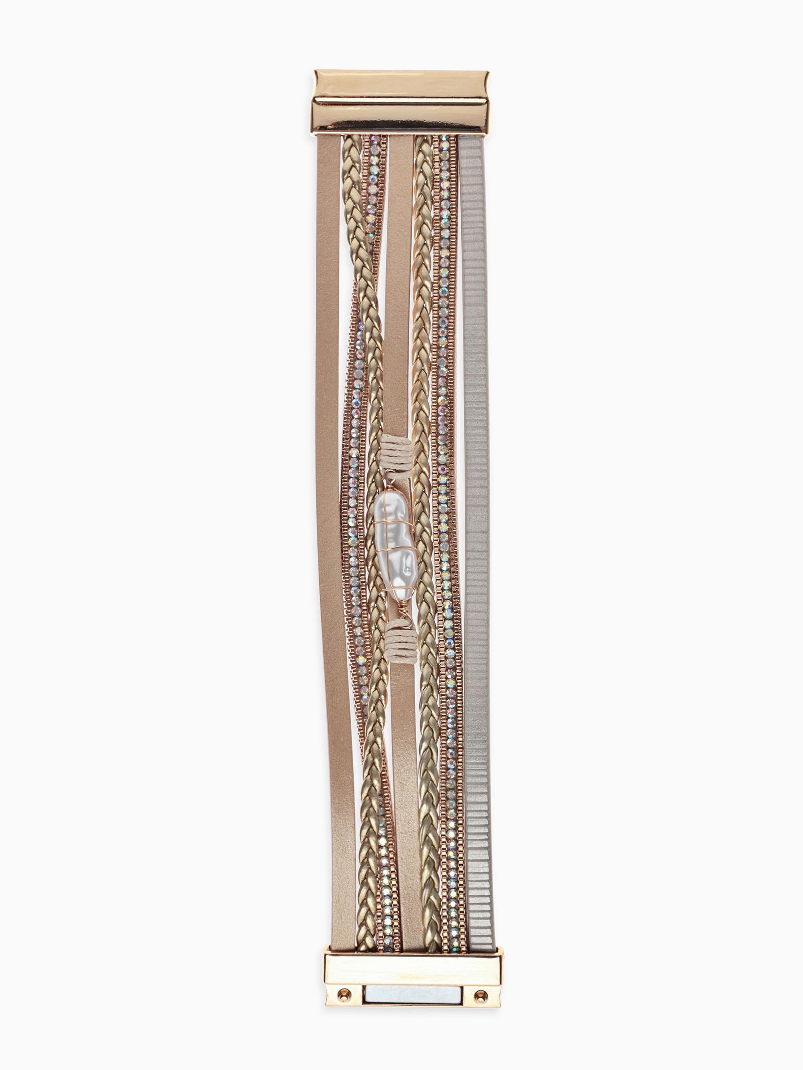 Браслет кожаный на магните "Гоби", L=19.5 см, белый, бежевый в золоте, 4x19.5x1 см., QF, Китай