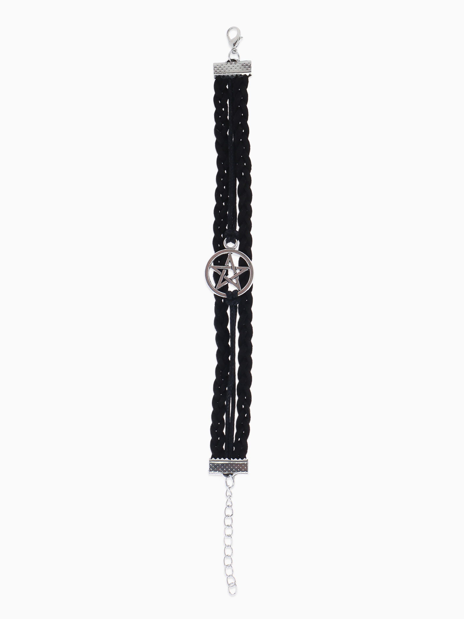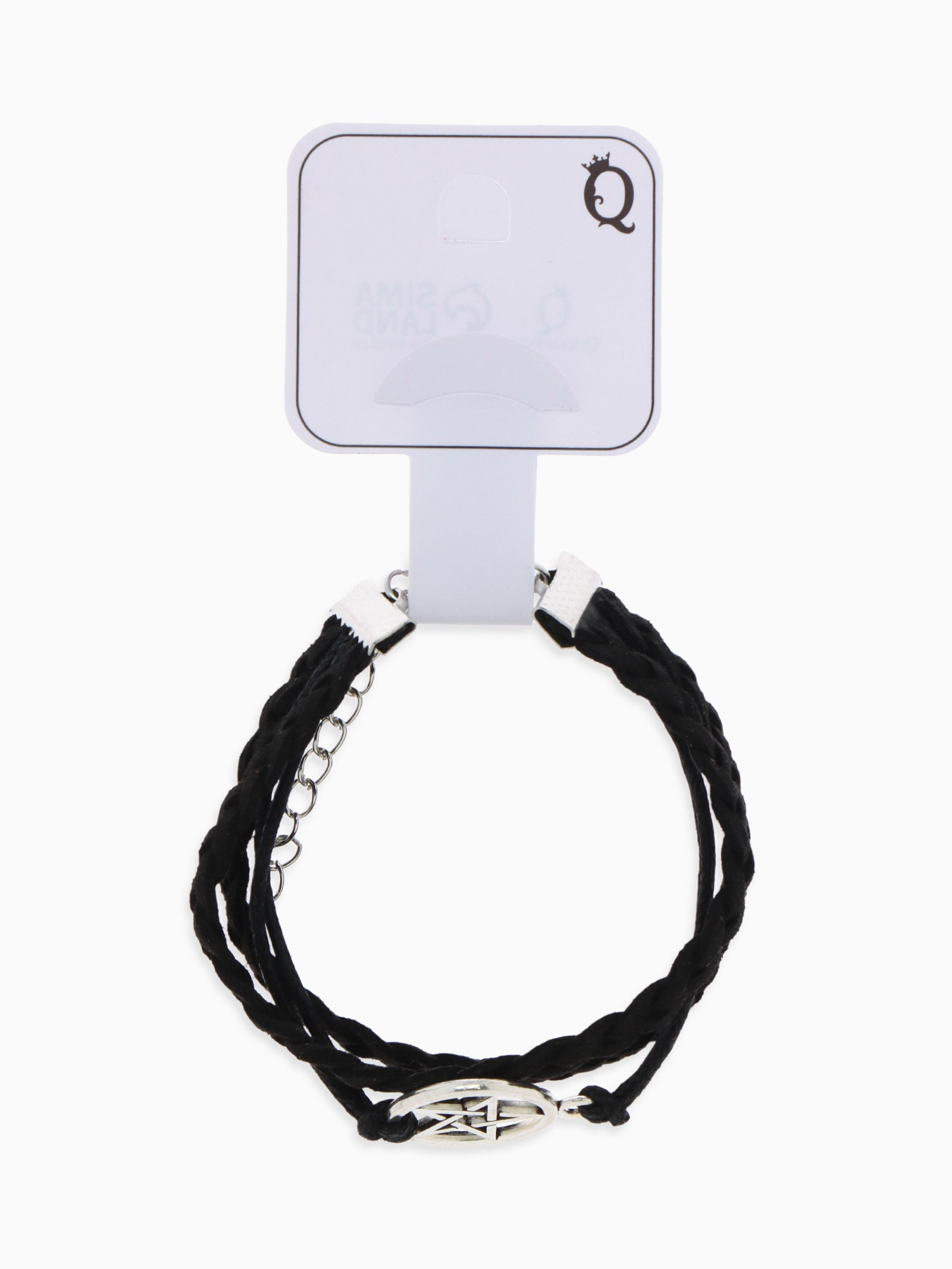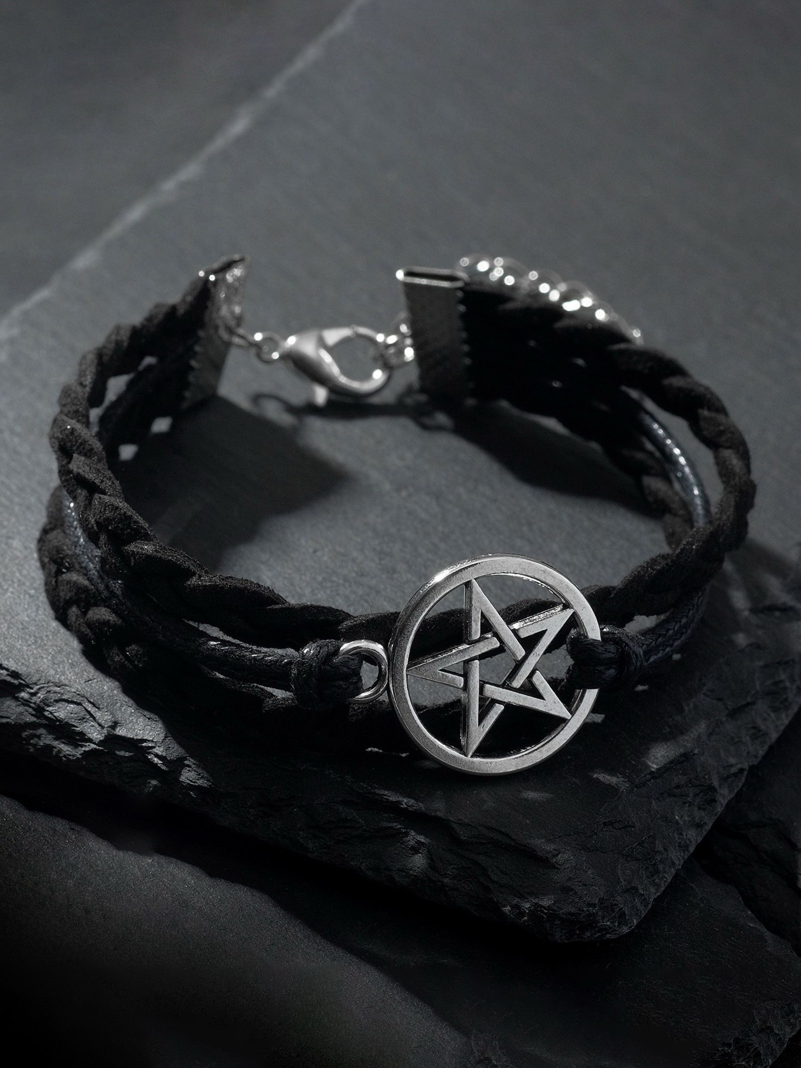 Браслет кожаный "Пентаграмма. Защита", L=17 см, чёрный в серебре, 1.5x17x0.5 см., QF, Китай
