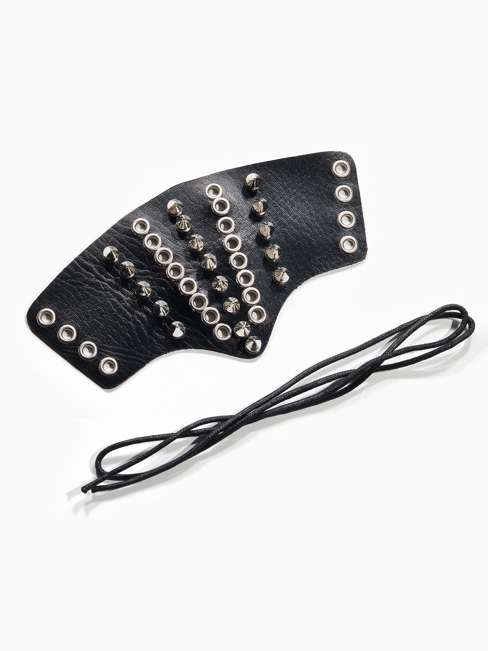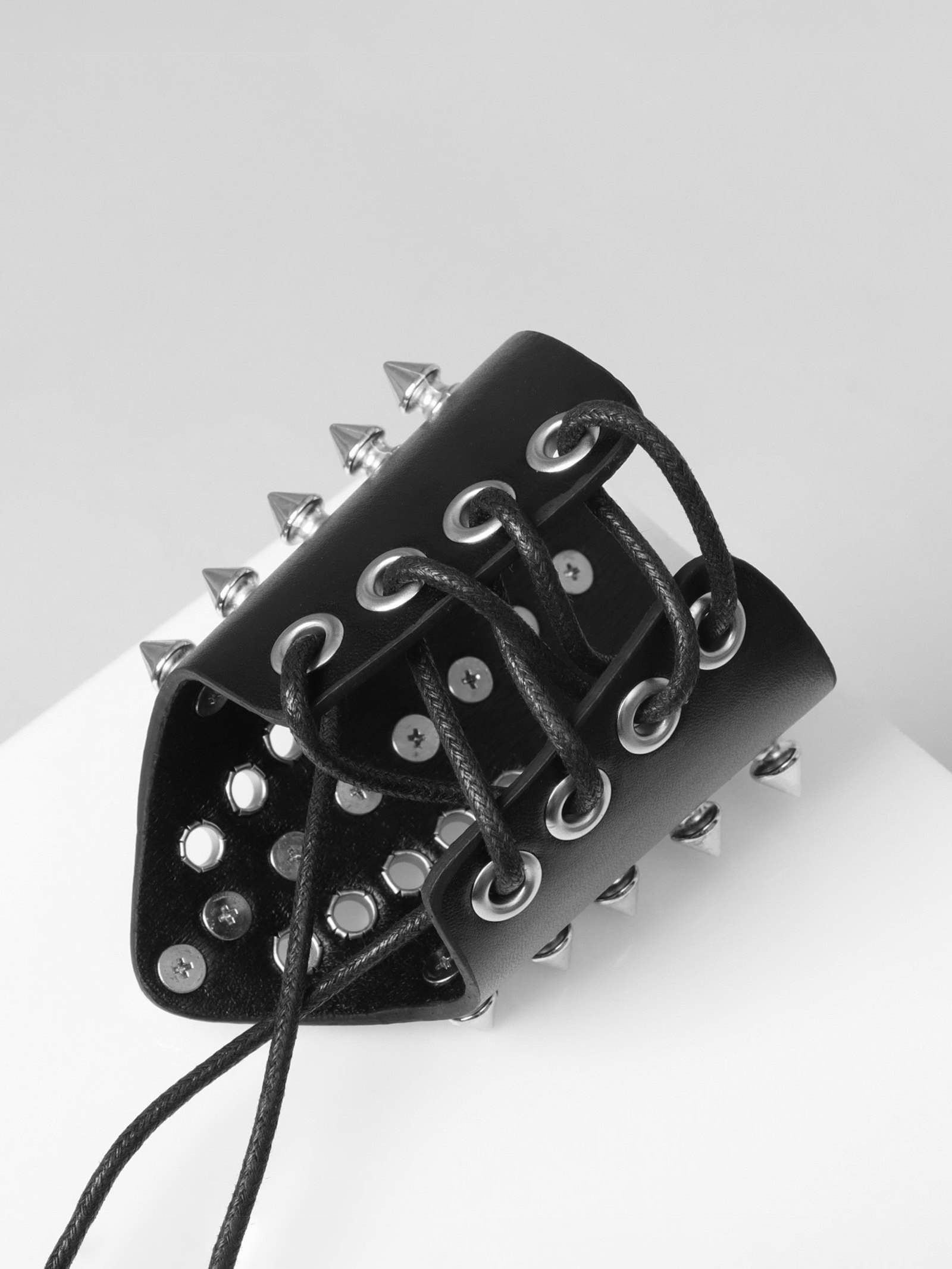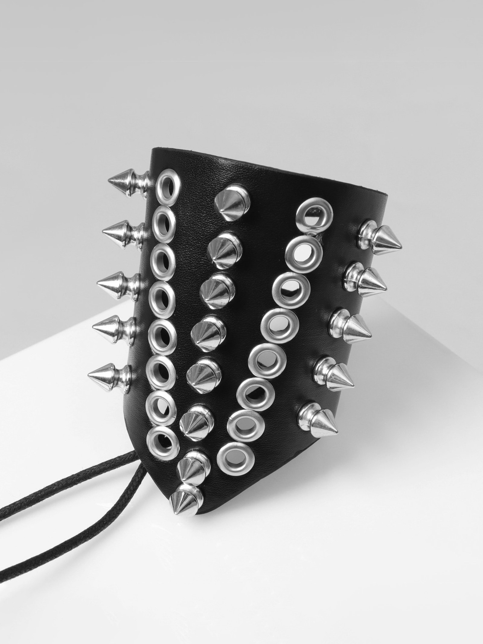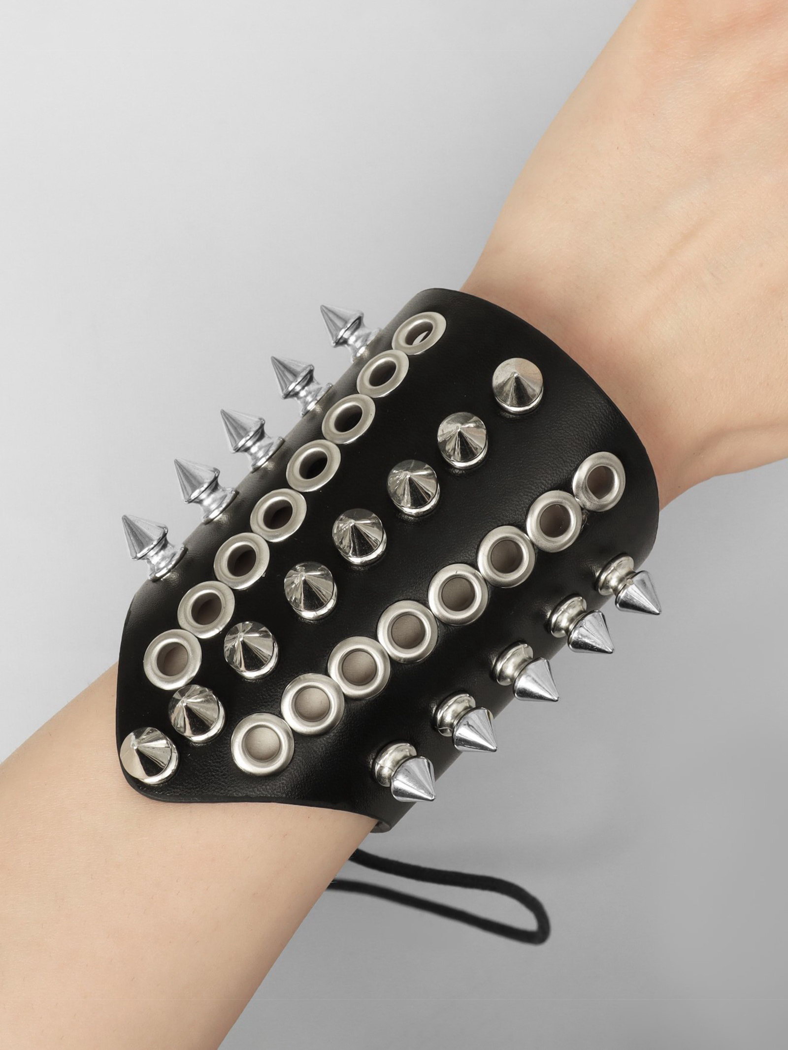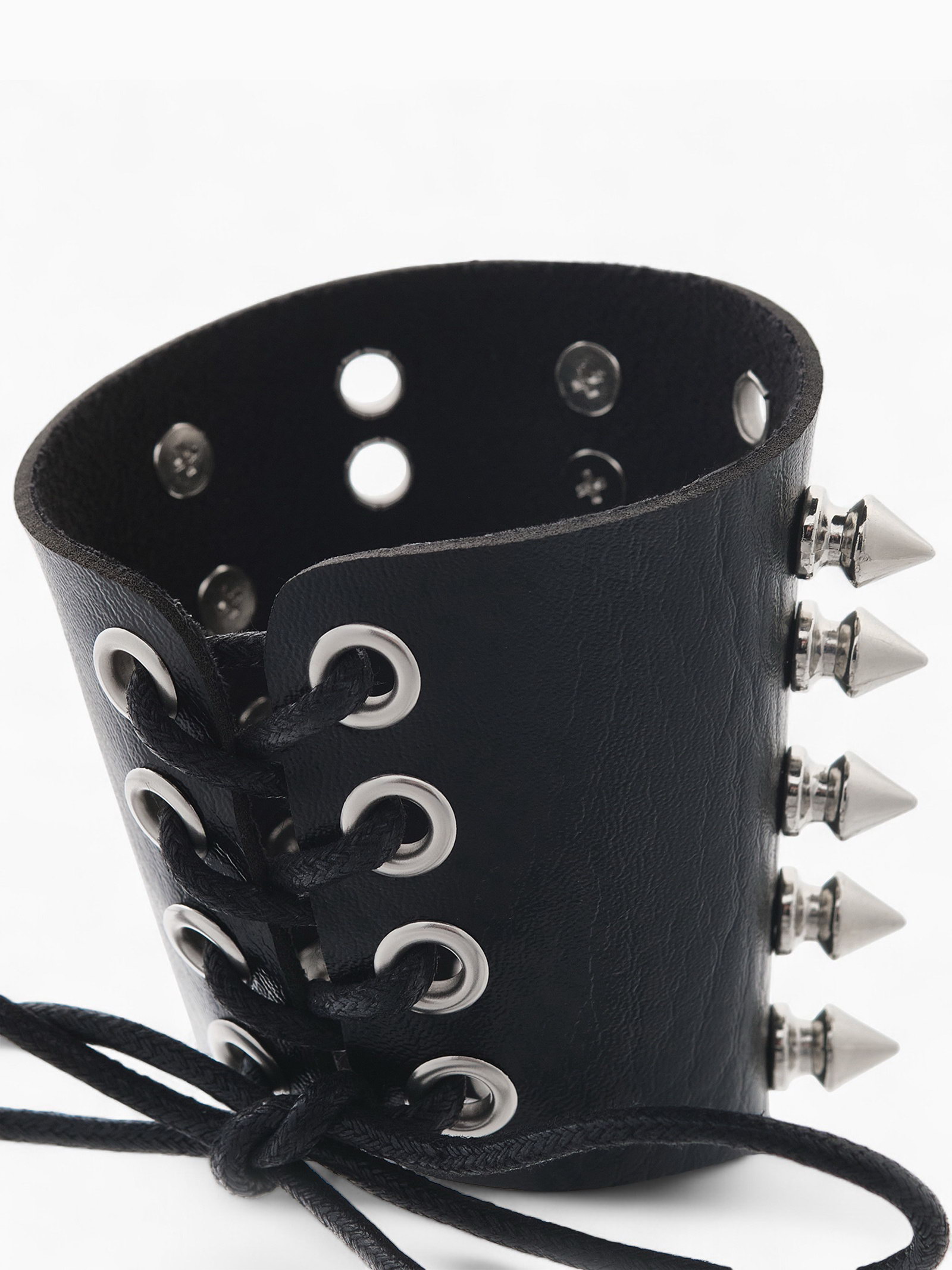 Браслет кожа "Манжета" с шипами, цвет чёрно-серебряный, 5.5x10x5.5 см., QF, Китай
