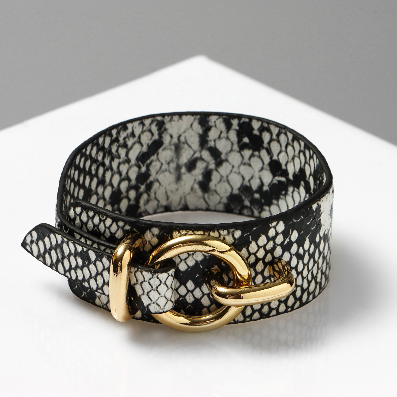 Браслет кожа "Сафари" змея, цвет бело-чёрный L=17.5см, 2.5x17.5x1 см., QF, Китай