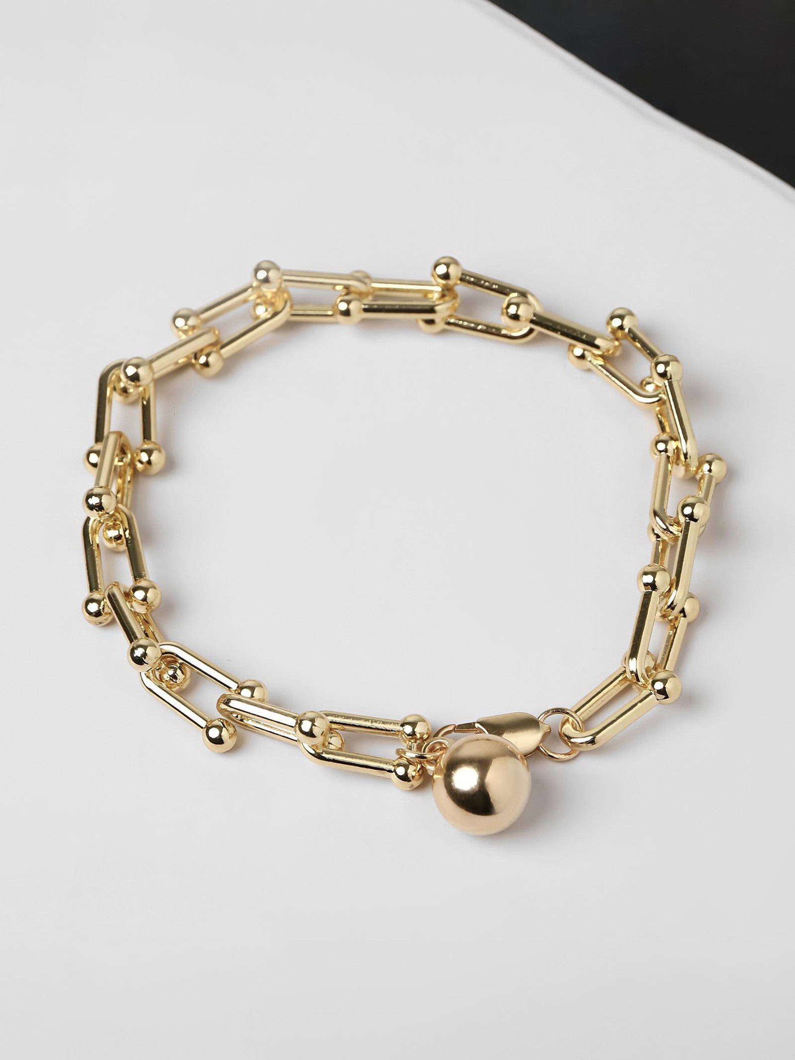 Браслет металл "Цепь" шар, цвет золото, L=22 см, 1.2x22x1 см., QF, Китай