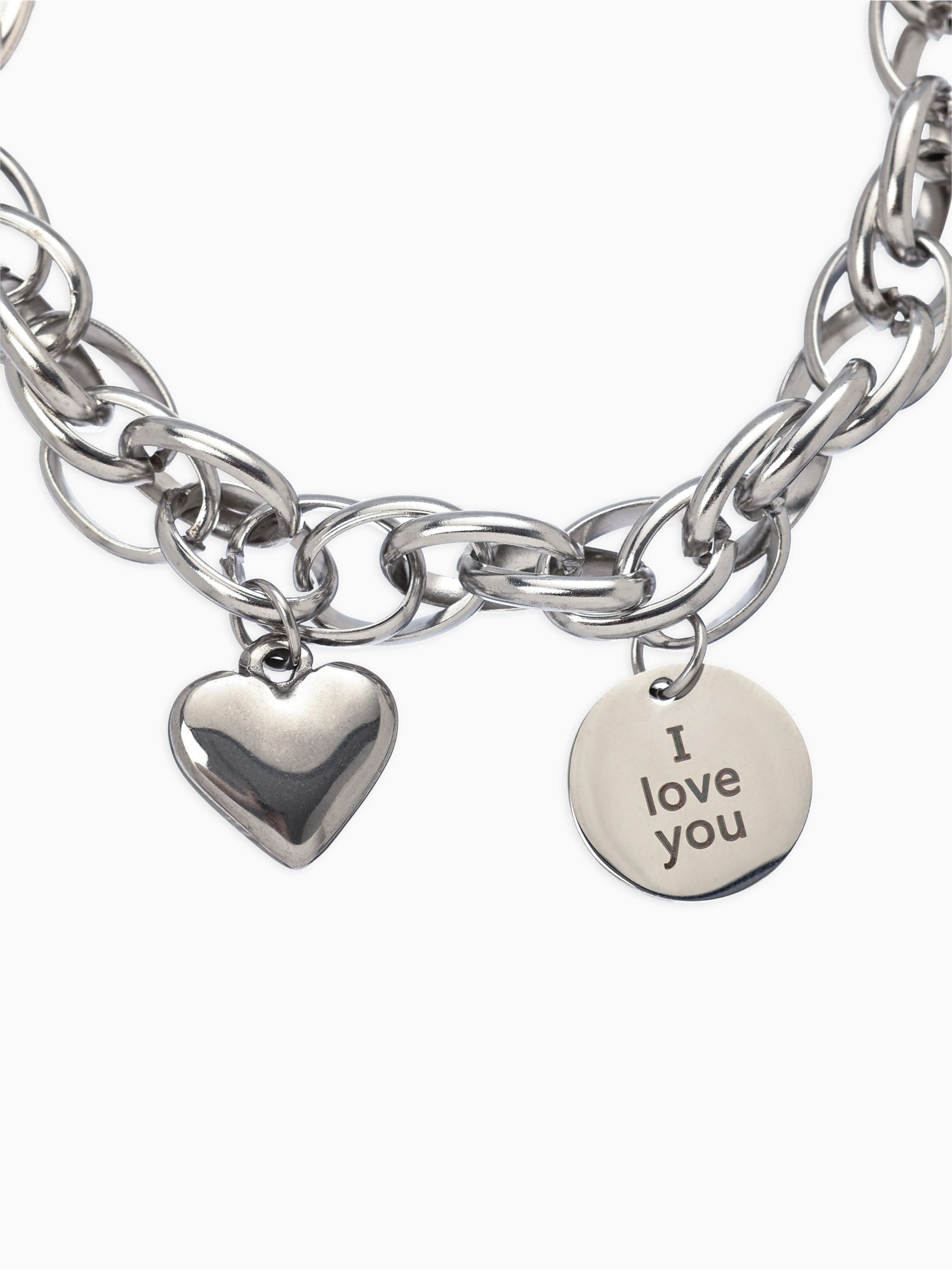 Вид: Браслет, Цепочка Тематика праздника: День рождения, Универсальная тематика Тематика: Буквы и цифры/надписи, Сердце Размер упаковки: 4 x 1 x 14 см. Температурное ограничение: Нет Для кого: Для женщины Набор: Нет Вид застёжки: Карабин tnved: 7117190000 Цвет фурнитуры: Серебряный Вставка/Подвеска: Без вставок Длина, см: 19 Цвет: Серебристый Материал основы: Металл Погрузитесь в мир стиля и элегантности с этим великолепным браслетом, который станет ярким акцентом вашего образа. Изготовленный из прочной стали и выполненный в серебристом цвете, он длиной 19 см идеально подходит для женщин, стремящихся подчеркнуть свою индивидуальность и вкус. Дизайн браслета включает объёмное сердце и медальон, что придаёт ему особую романтичность и шарм. Карабинная застёжка обеспечивает надежное крепление, а цепочка добавляет динамичности и современности. Этот аксессуар станет прекрасным дополнением как к повседневным, так и к вечерним нарядам.