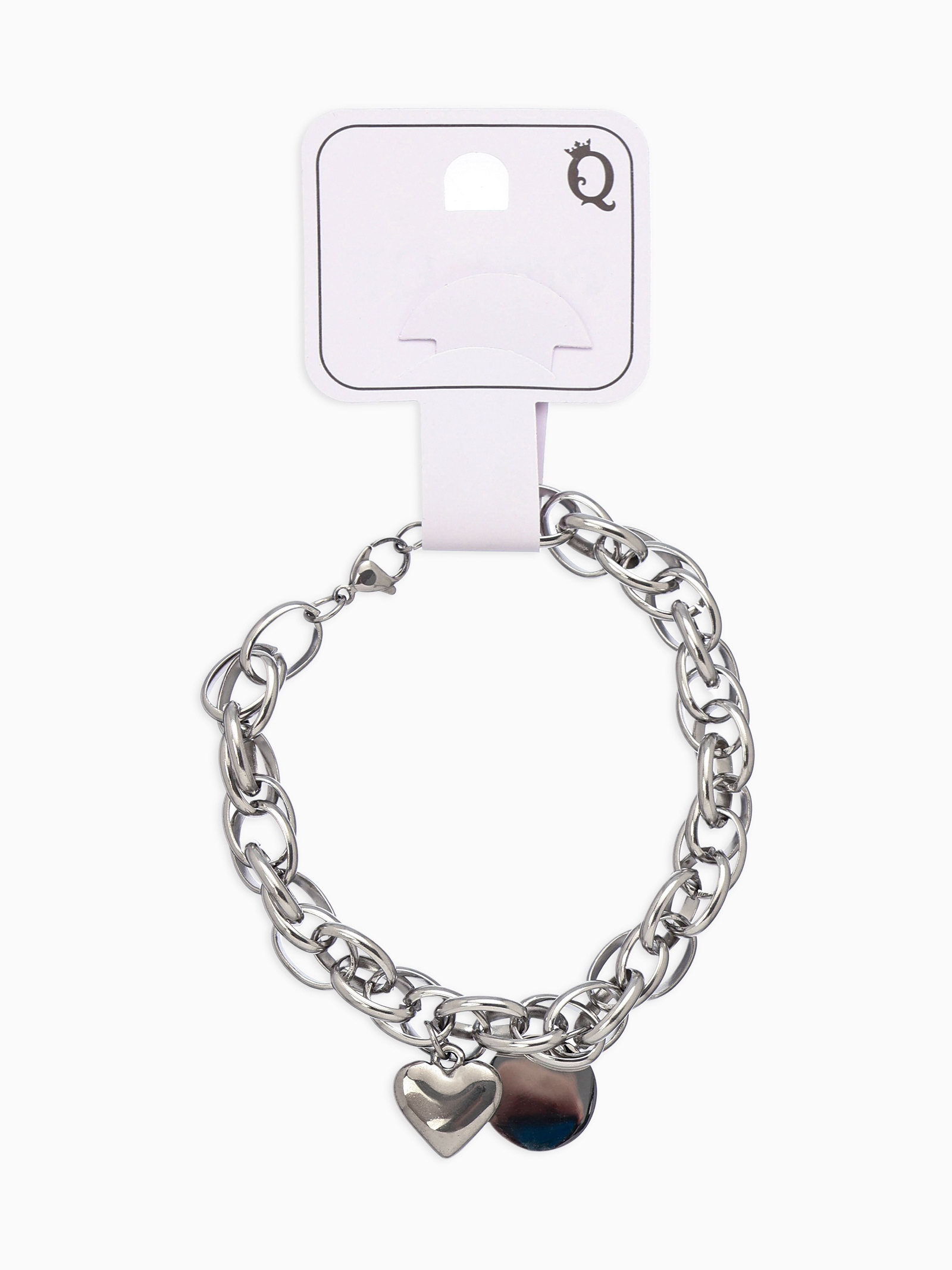 Браслет металл "Цепь" объёмное сердце и медальон, цвет серебро, L=19 см, 2.5x19x1.8 см., QF, Китай