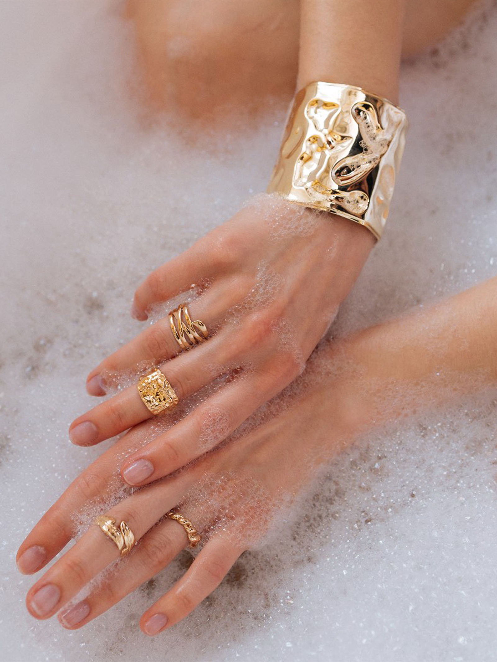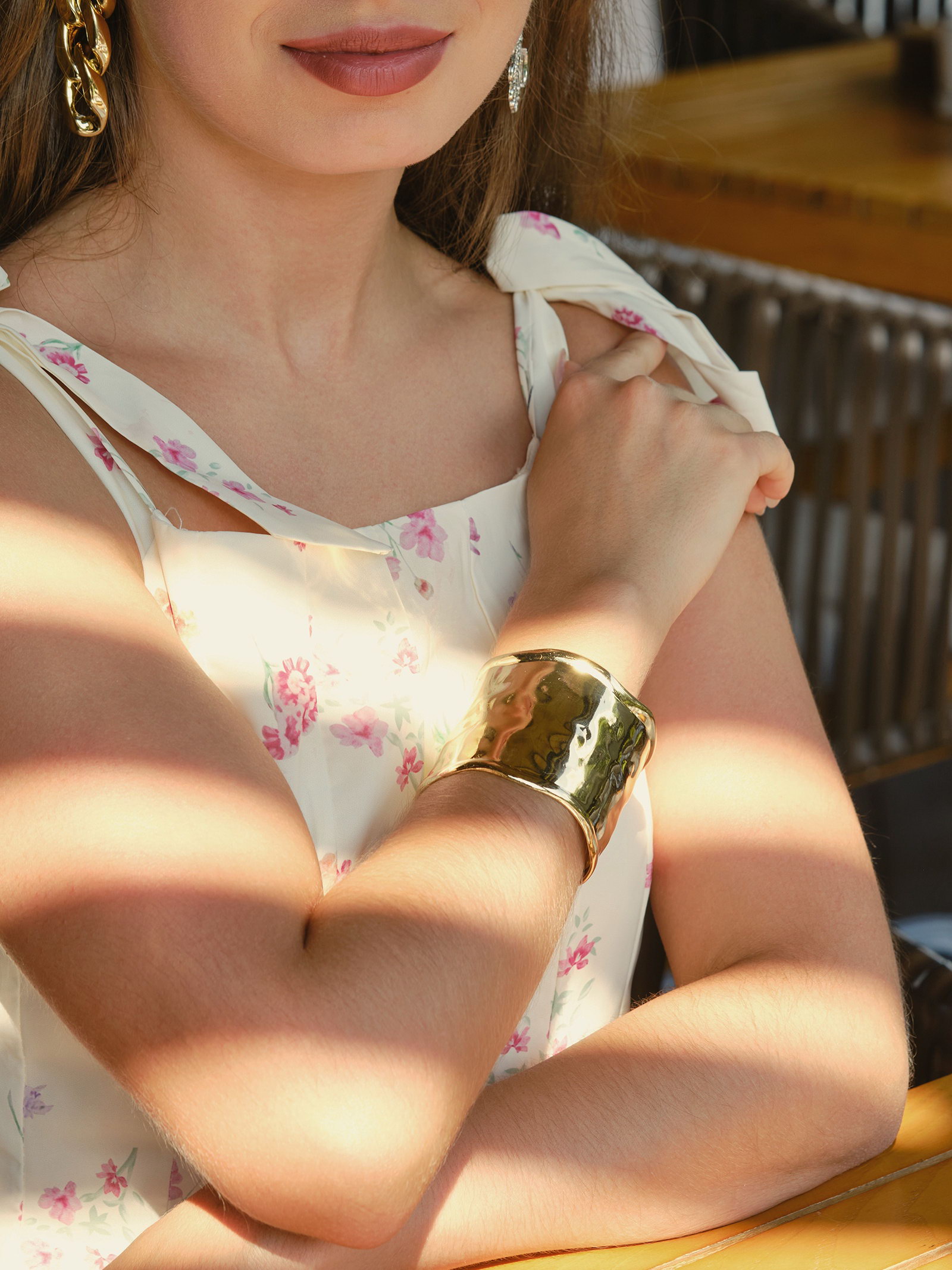 Браслет металл "Манжета" с выемками, цвет золото, 5.5x6.5x6 см., QF, Китай