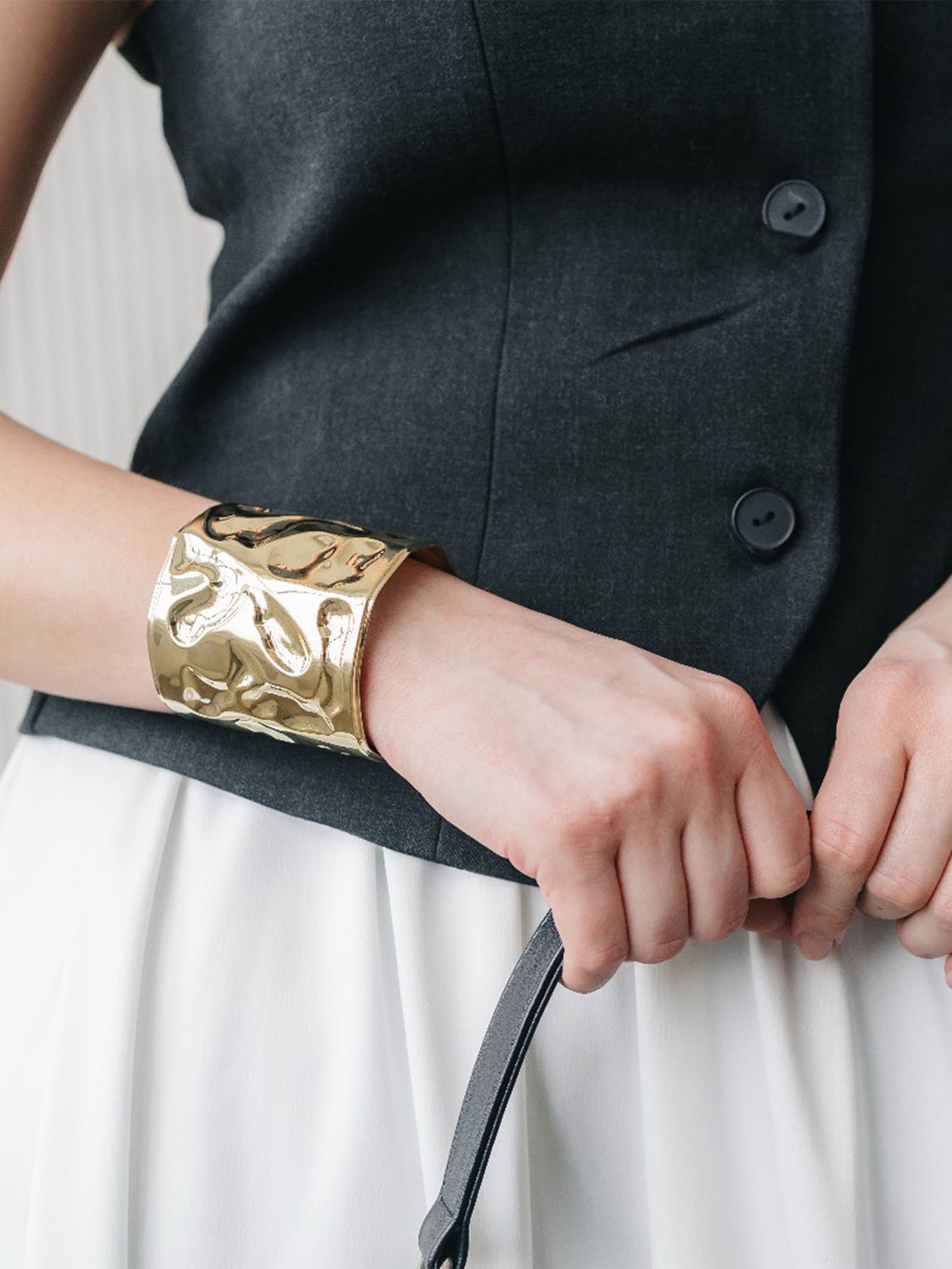Вид: Браслет, Браслет-манжета Вид упаковки: Пакет, Подложка Тематика праздника: День рождения, Универсальная тематика Размер упаковки: 6 x 6 x 6.5 см. Набор: Нет Для кого: Для женщины Вид застёжки: Без застёжки Адресат: Подруге Адресат: Подруге tnved: 7117190000 Тематика: Минимализм Цвет фурнитуры: Золотой Материал основы: Металл Вставка/Подвеска: Без вставок Цвет: Золотистый Длина, см: 6.5 Металлический женский браслет из гипоаллергенного бижутерного сплава – это стильное украшение, которое сочетает элегантность и комфорт. Сплав, использованный для изготовления браслета, снижает риск аллергических реакций, что делает его идеальным выбором для людей с чувствительной кожей. Этот браслет идеально подходит для повседневной носки, добавляя изысканности любому образу, и станет отличным акцентом как для официальных мероприятий, так и для повседневных встреч. Этот браслет подойдет для различных поводов: деловых встреч, вечеринок, романтических свиданий или просто для повседневного использования. Он будет замечательным подарком для женщин на день рождения, юбилей или любое другое важное событие. Такой браслет подчеркнет индивидуальность и стиль, добавив утонченности и женственности в образ. | ||