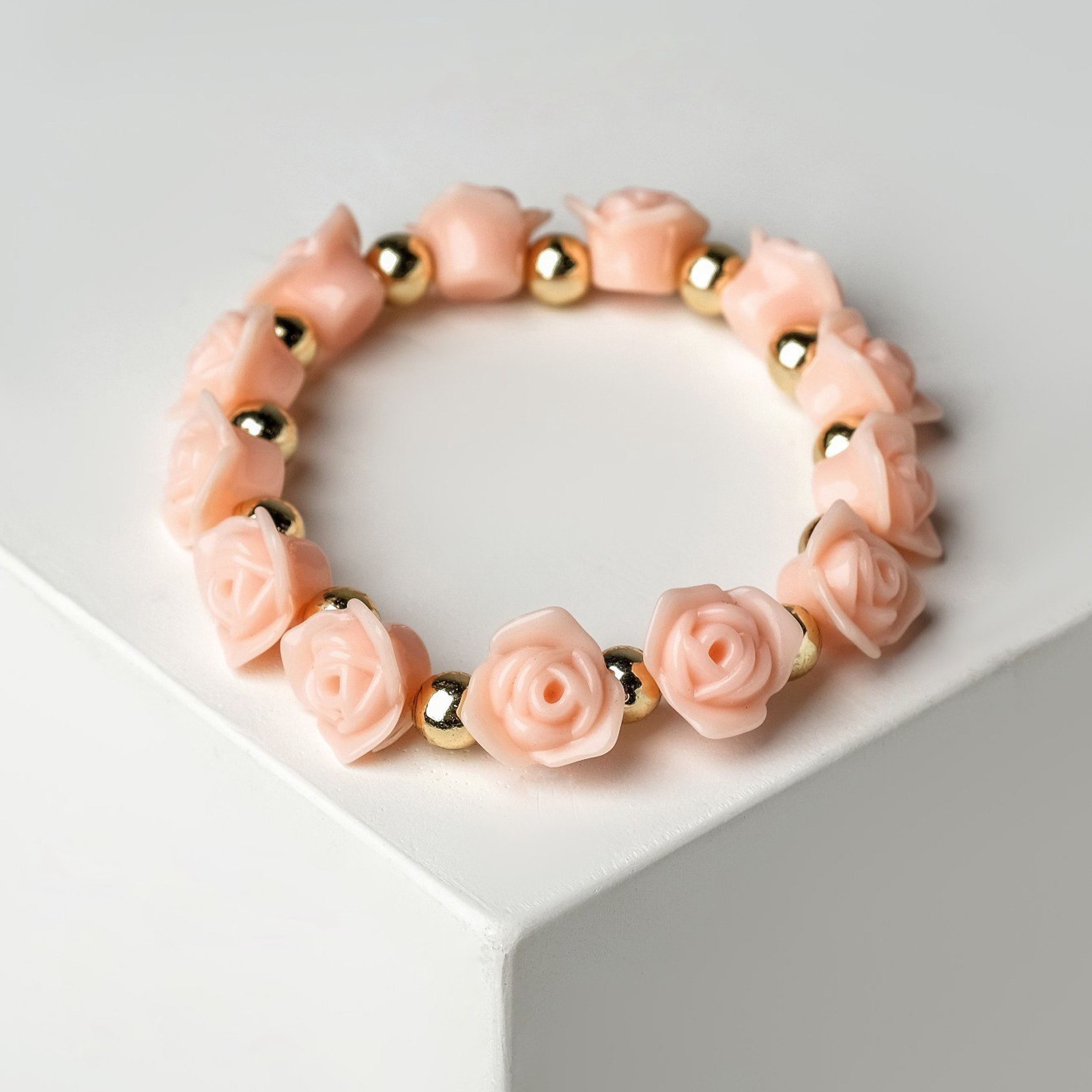 Браслет пластик "Цветы" розы, цвет кораллово-золотой, d=8 см, 1x8x1 см., QF, Китай