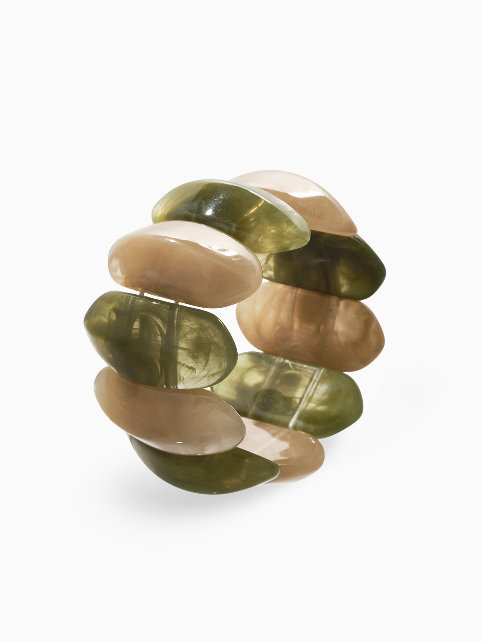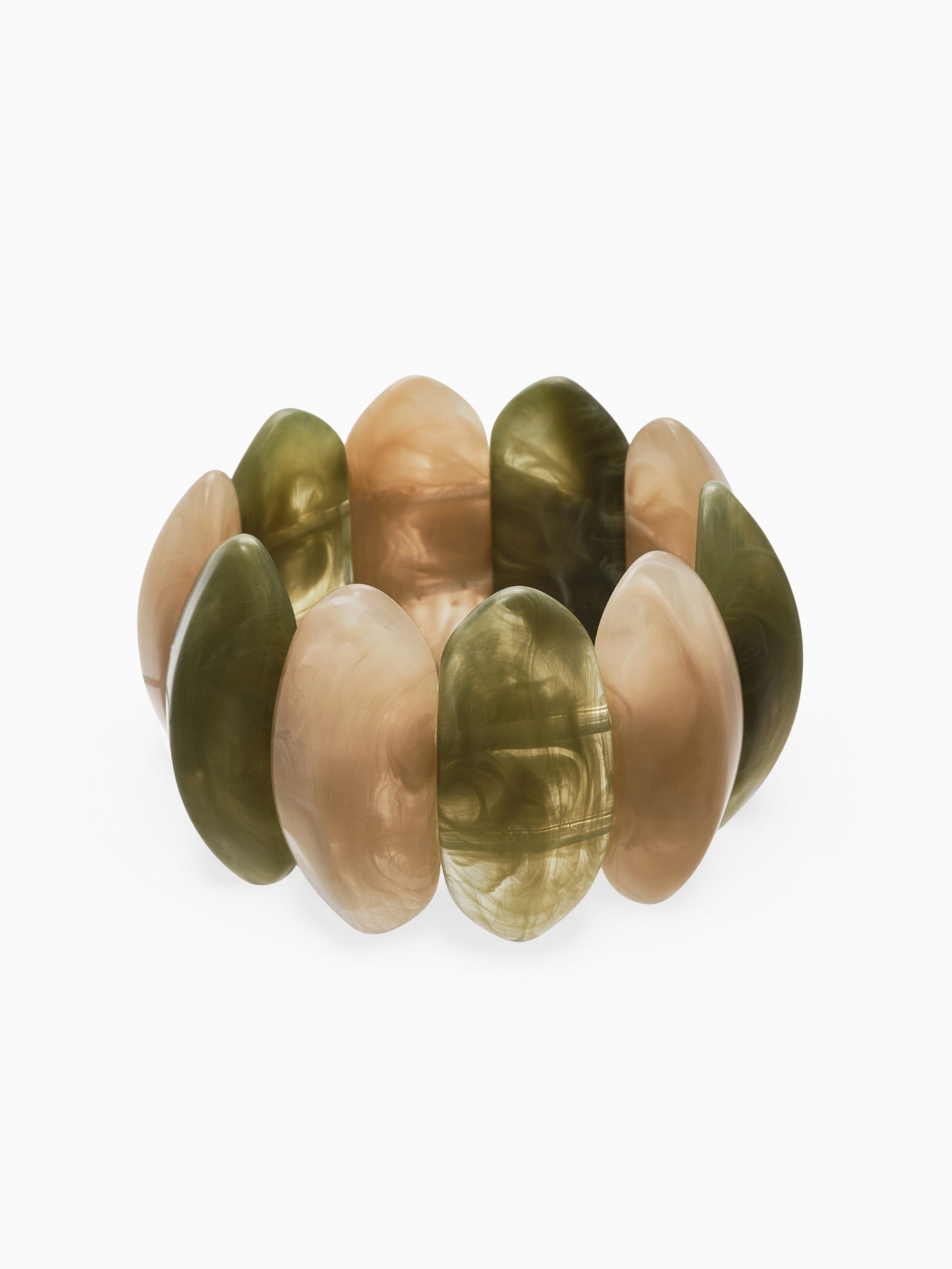 Браслет манжета "Тренд", широкий, акрил, бежево-злёный, 6.5x6.5x4.5 см., QF, Китай
