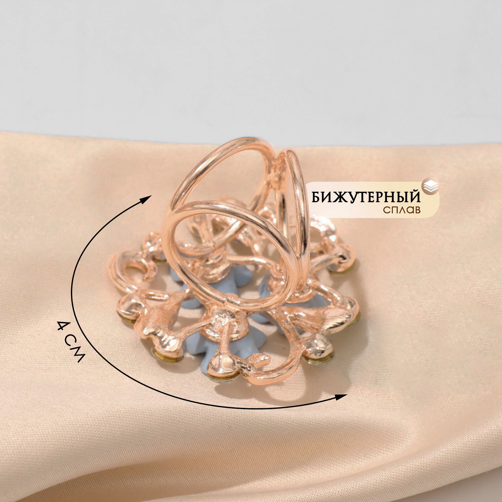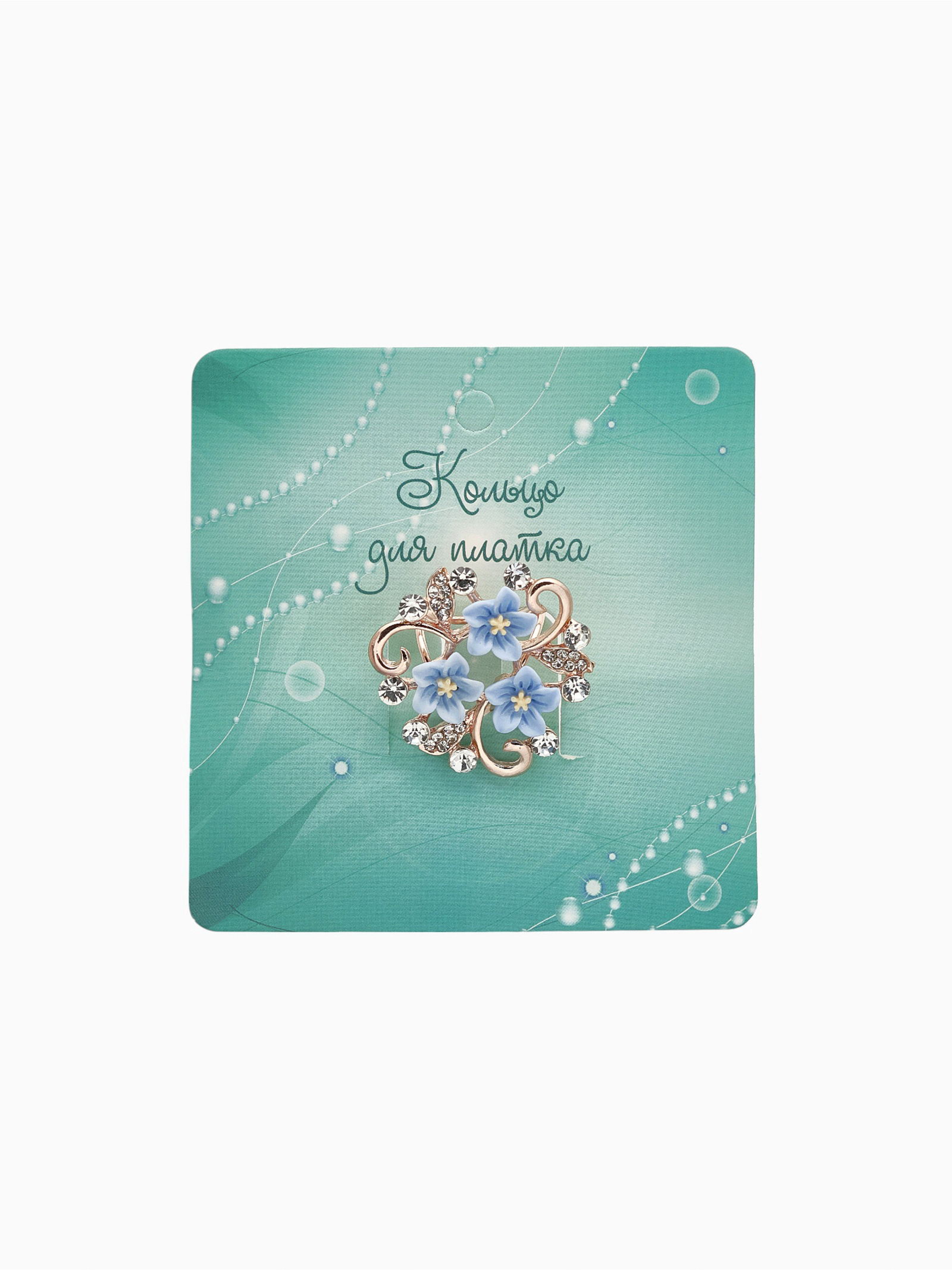 Кольцо для платка "Цветы незабудки", голубое в золоте, 4x4x1 см., QF, Китай