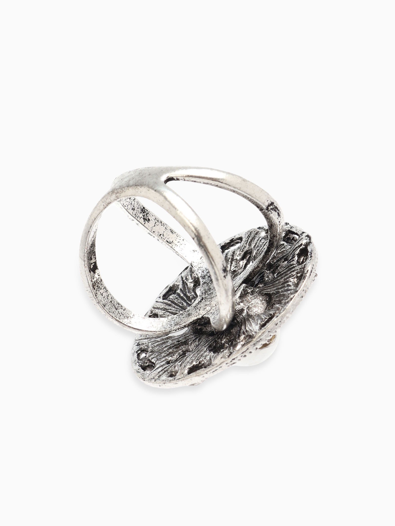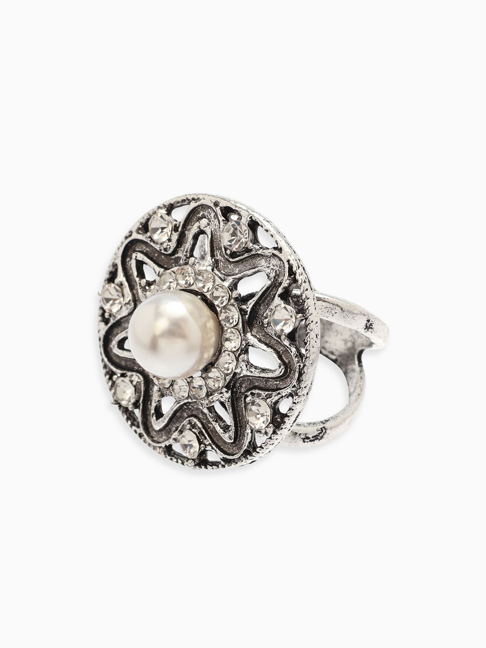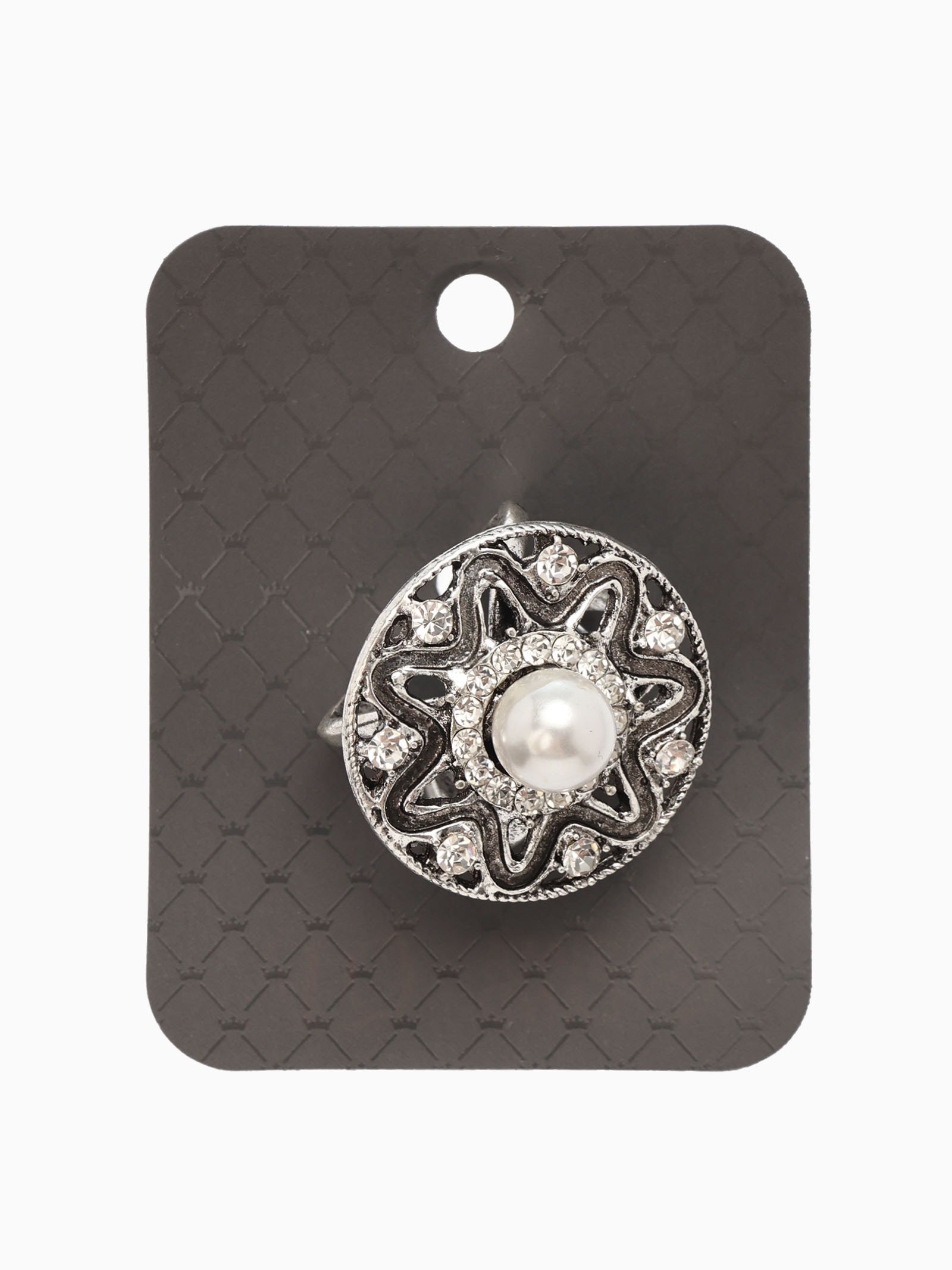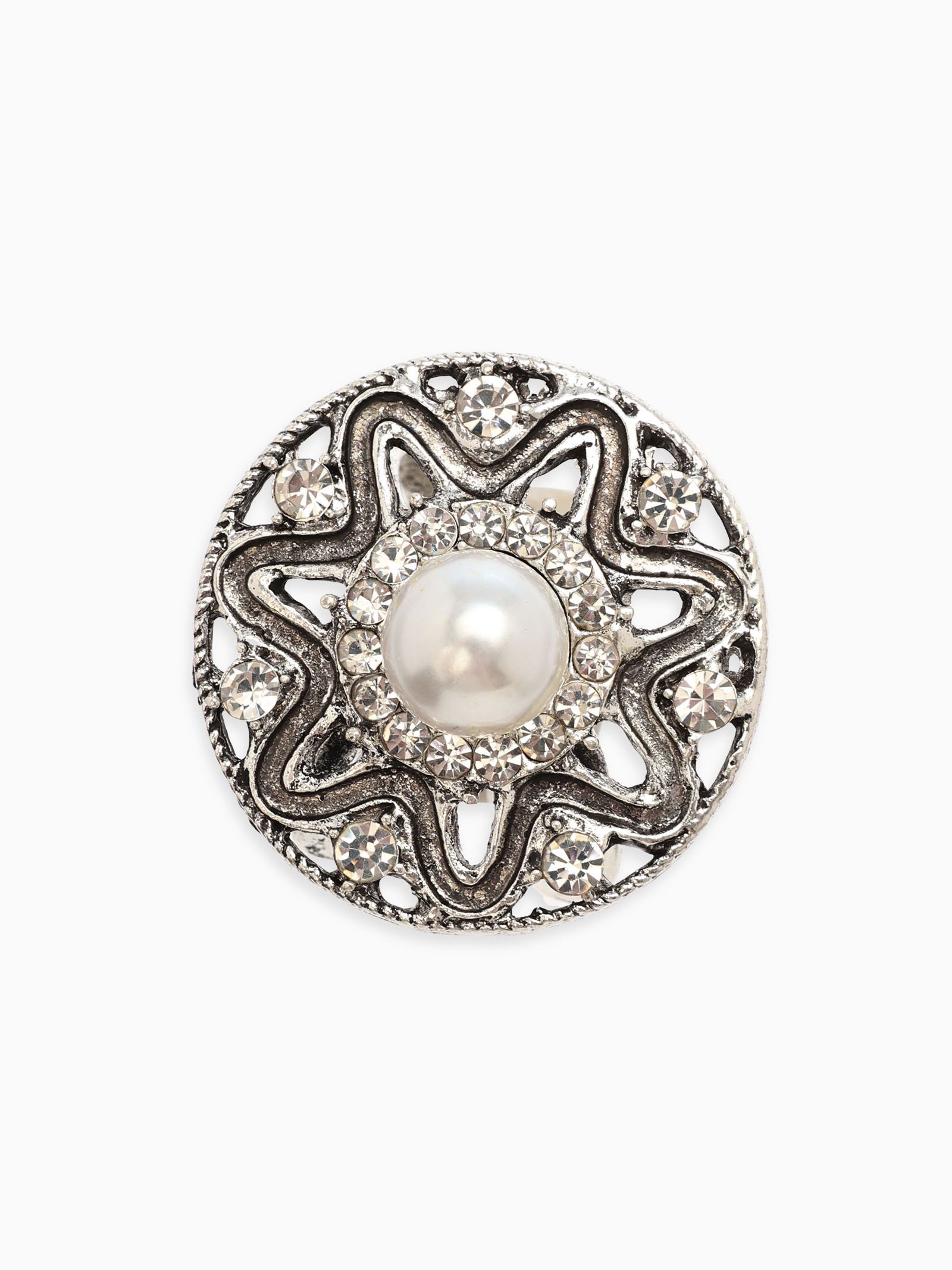 Кольцо для платка "Цветок в круге", белое в чернёном серебре, 3.2x3.2x3 см., QF, Китай