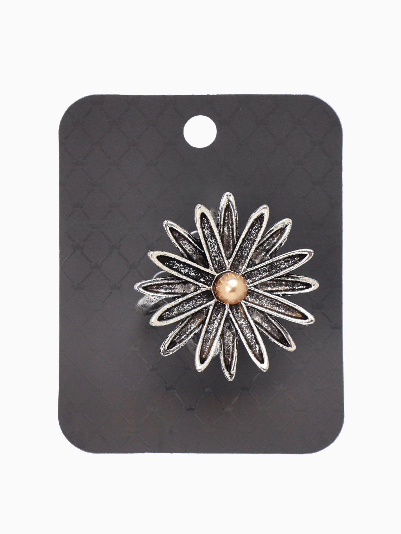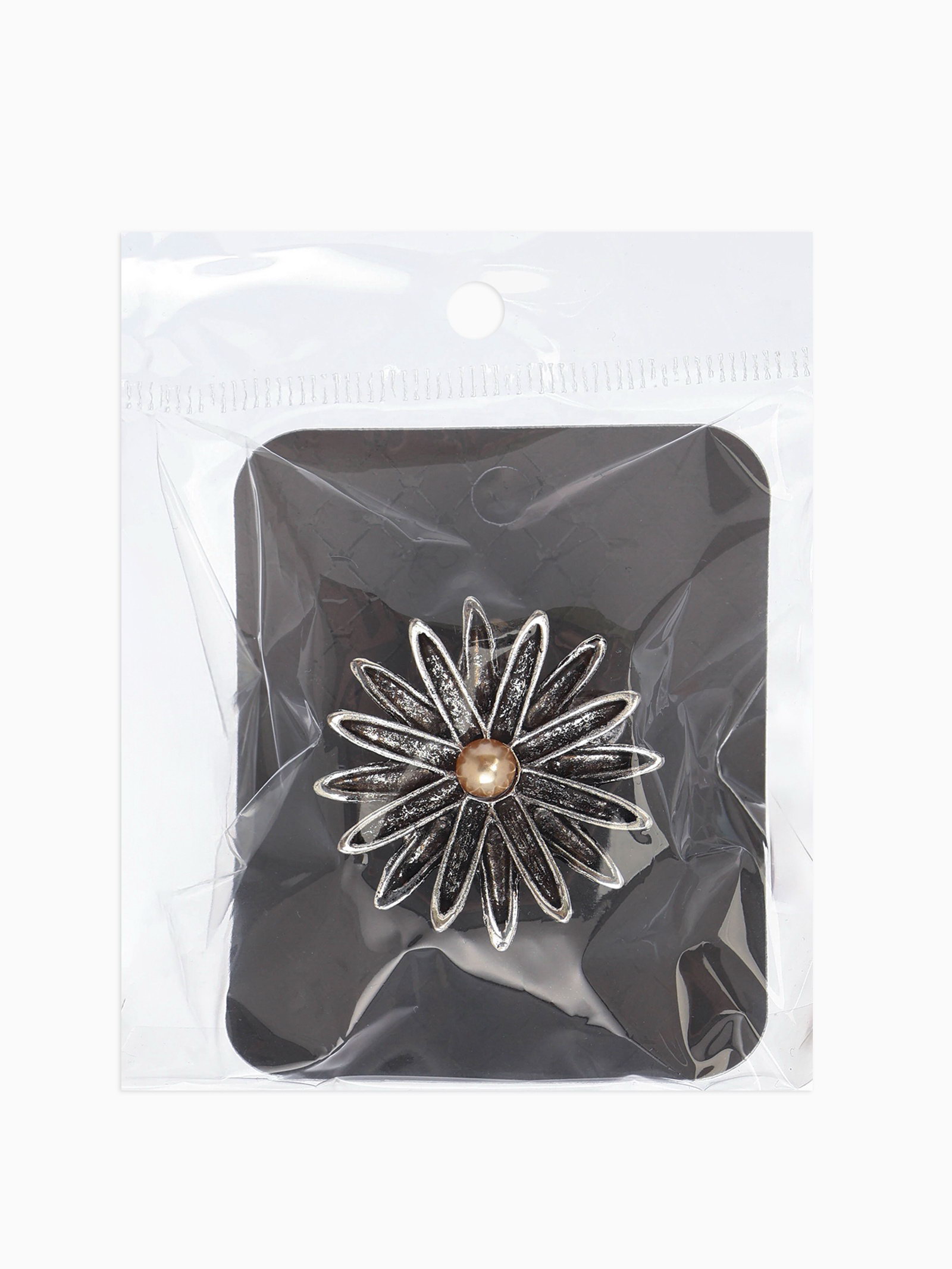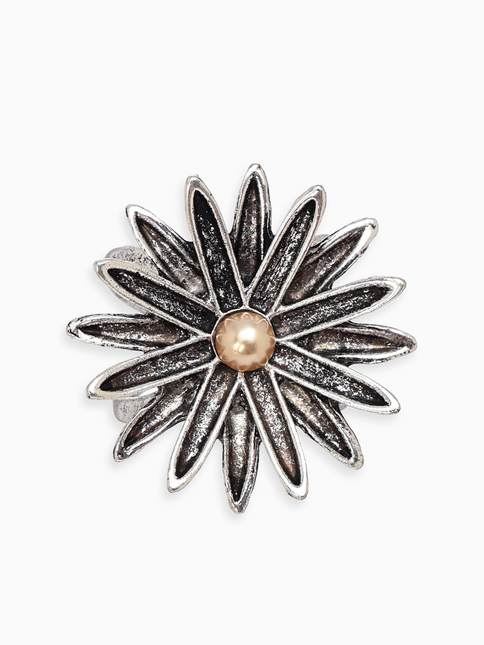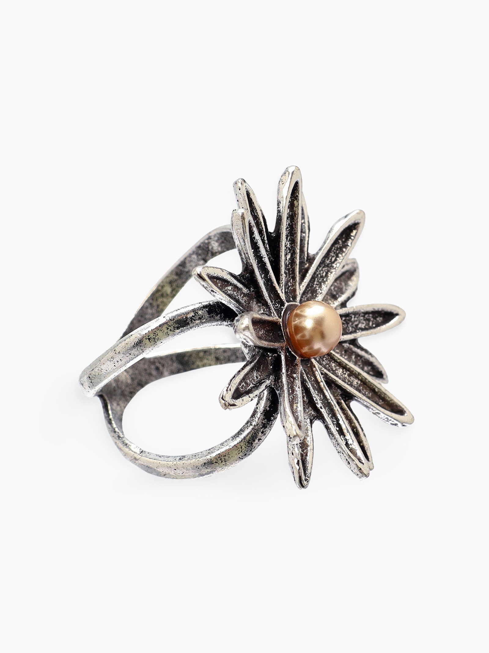 Кольцо для платка "Цветок Астра", белое в чернёном серебре, 3.2x3.2x3 см., QF, Китай