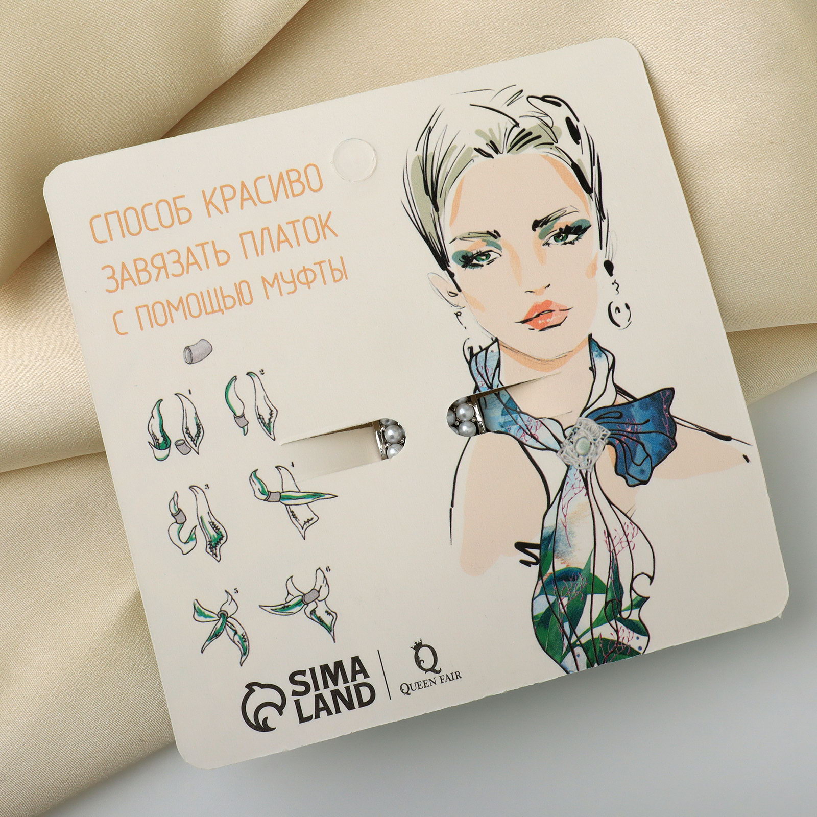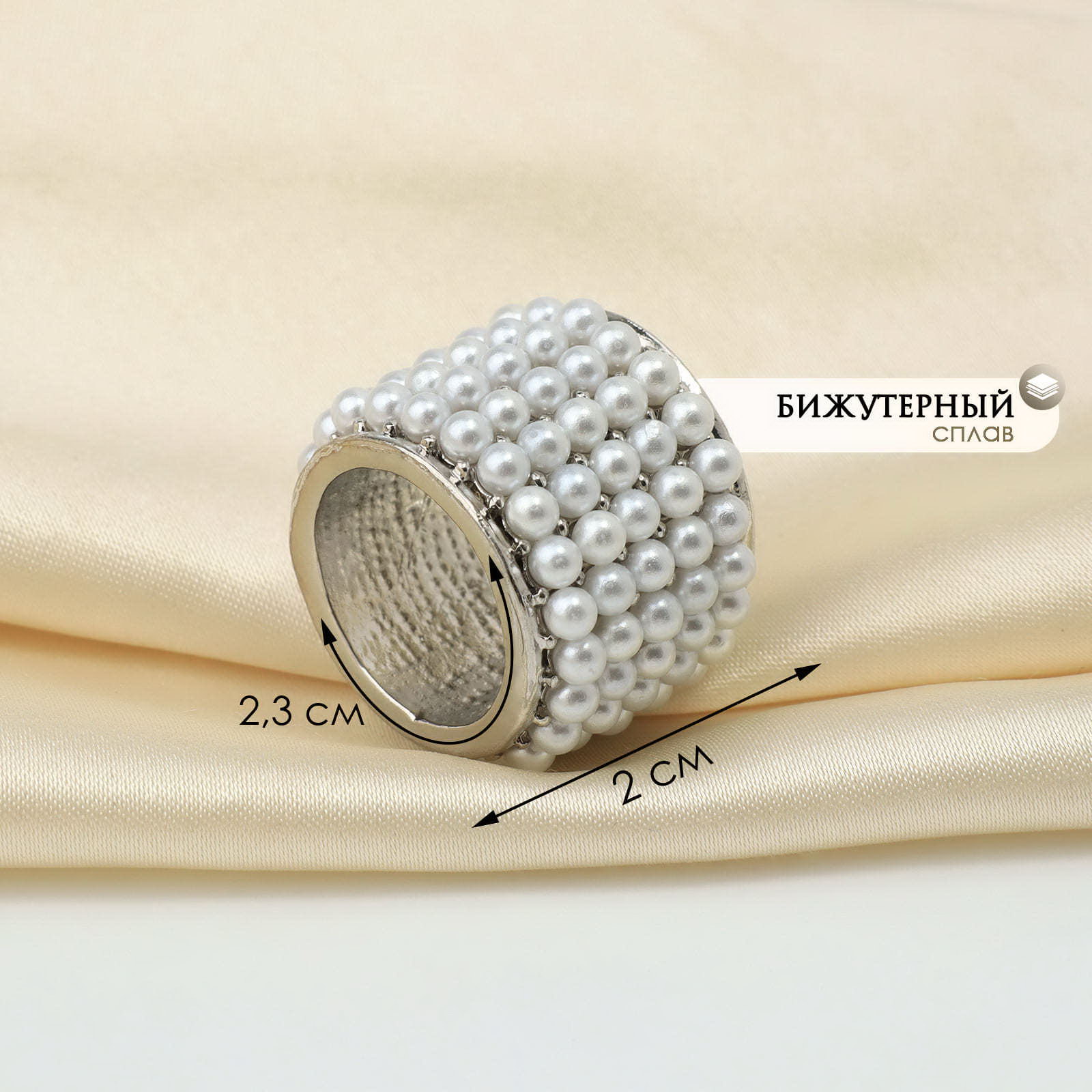 Муфта для платка "Жемчужинка", белая в серебре, 2.3x2x2.3 см., QF, Китай