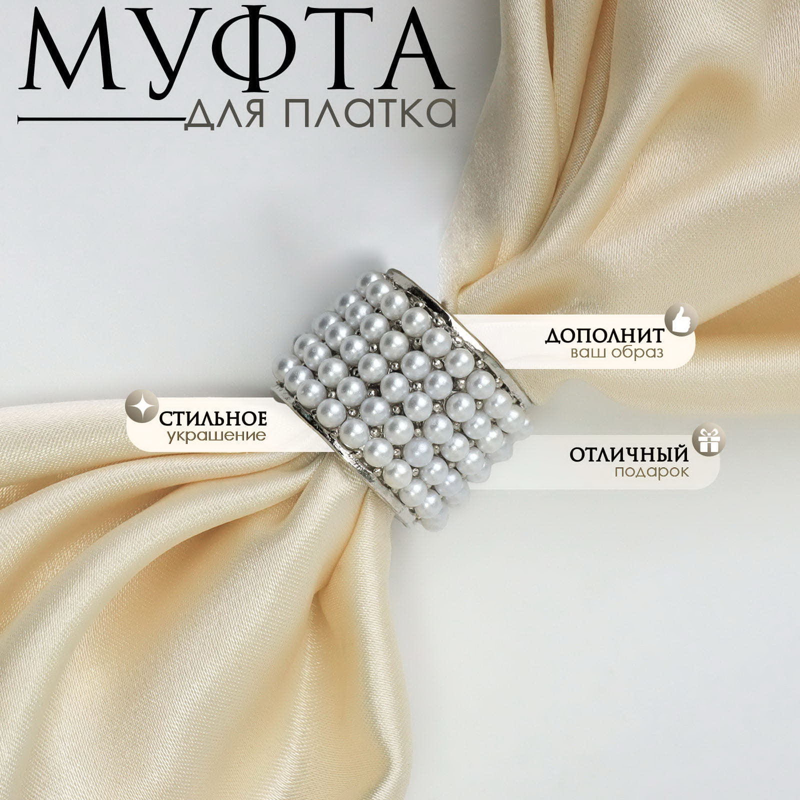 Вставка/Подвеска: Жемчуг, Пластик Размер упаковки: 10 x 2 x 12 см. Материал основы: Металл Для кого: Для женщины Тематика праздника: Универсальная тематика tnved: 7117190000 Тематика: Жемчужная Цвет: Белый Цвет фурнитуры: Серебряный Набор: Нет Длина, см: 2 Вид: Муфта Температурное ограничение: Нет Коллекция: Жемчуг Украсьте свой платок стильной муфтой! Элегантная муфта для платка - это идеальный аксессуар для женщин, которые ценят стиль и комфорт. Сделанная из высококачественного металла и украшенная жемчугом, эта муфта добавит изысканности любому образу. Особенности