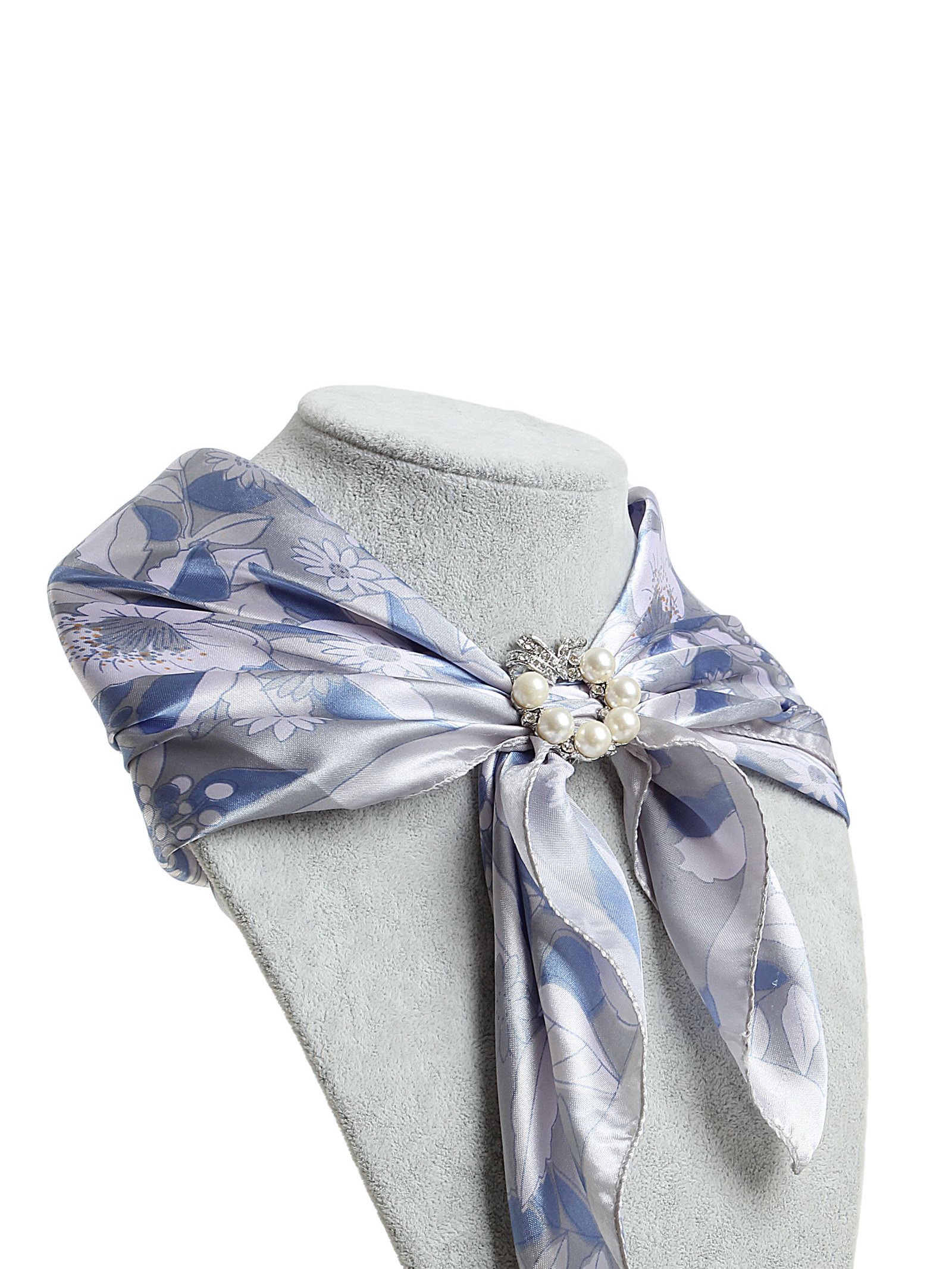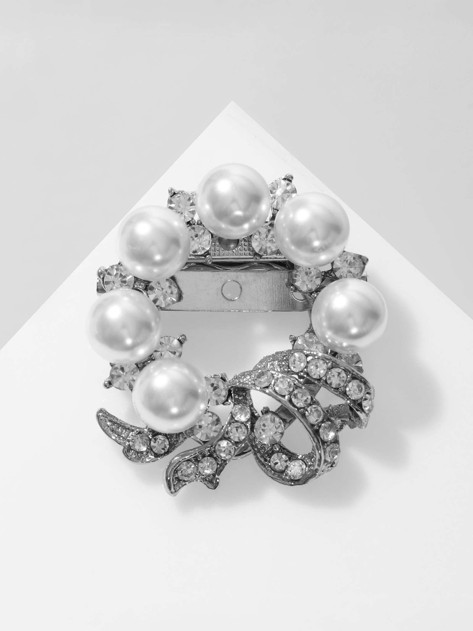 Зажим для платка "Жемчужный бант", цвет белый в серебре, 4x4x1.5 см., QF, Китай