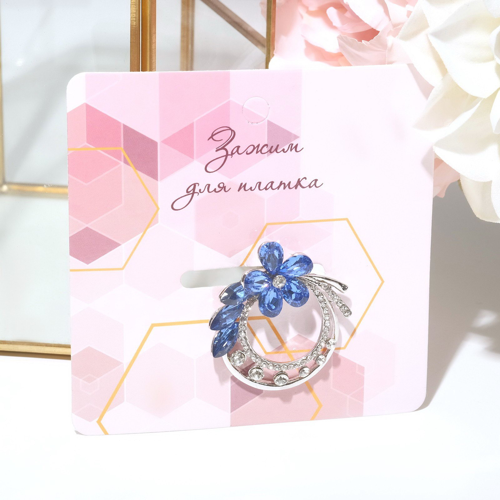 Зажим для платка "Цветок", цвет бело-синий в сером металле, 4x4.3x1 см., QF, Китай