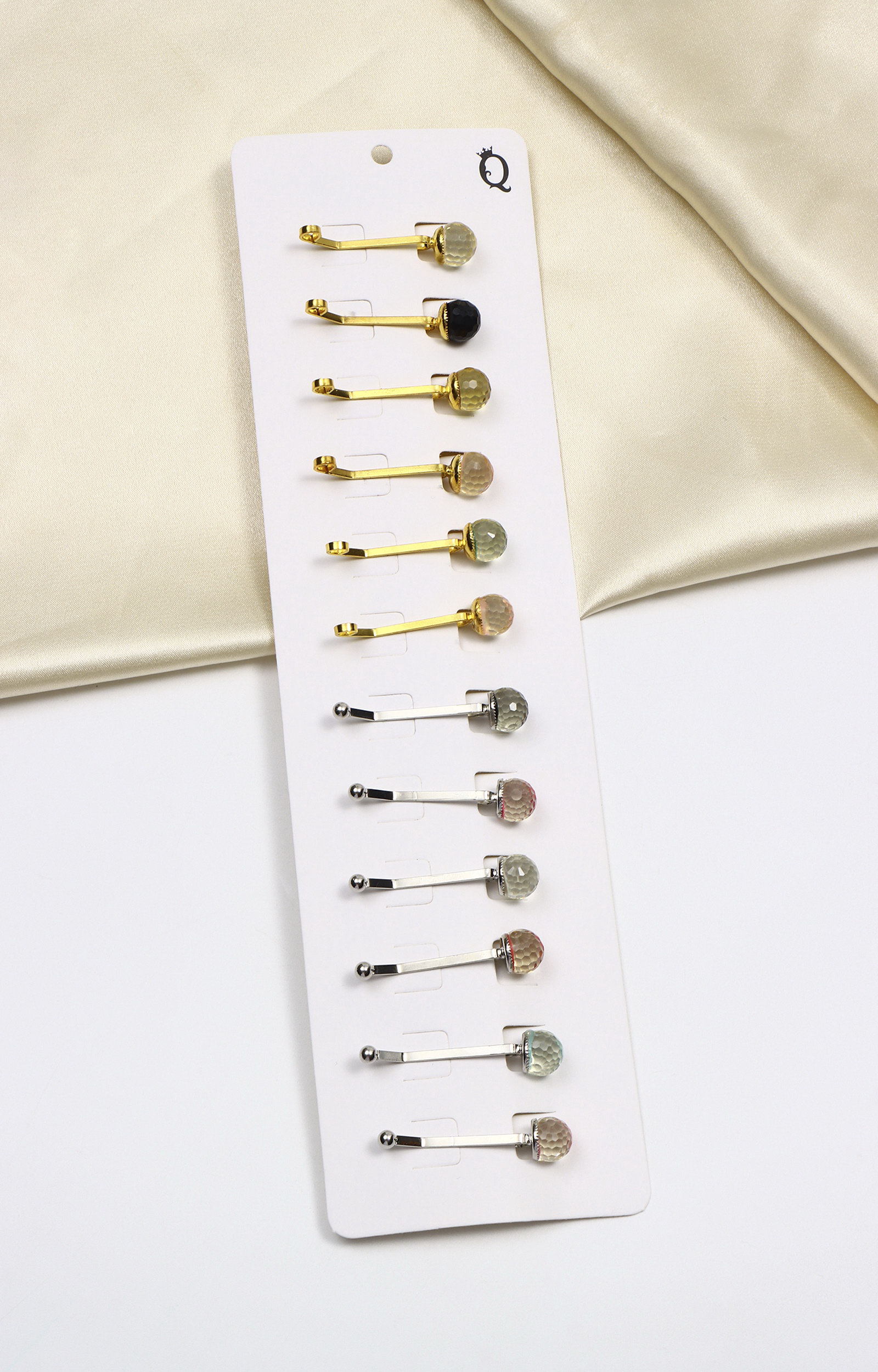 Зажим для платка "Хрусталь" шарик, МИКС, 1.7x4x0.8 см., QF, Китай