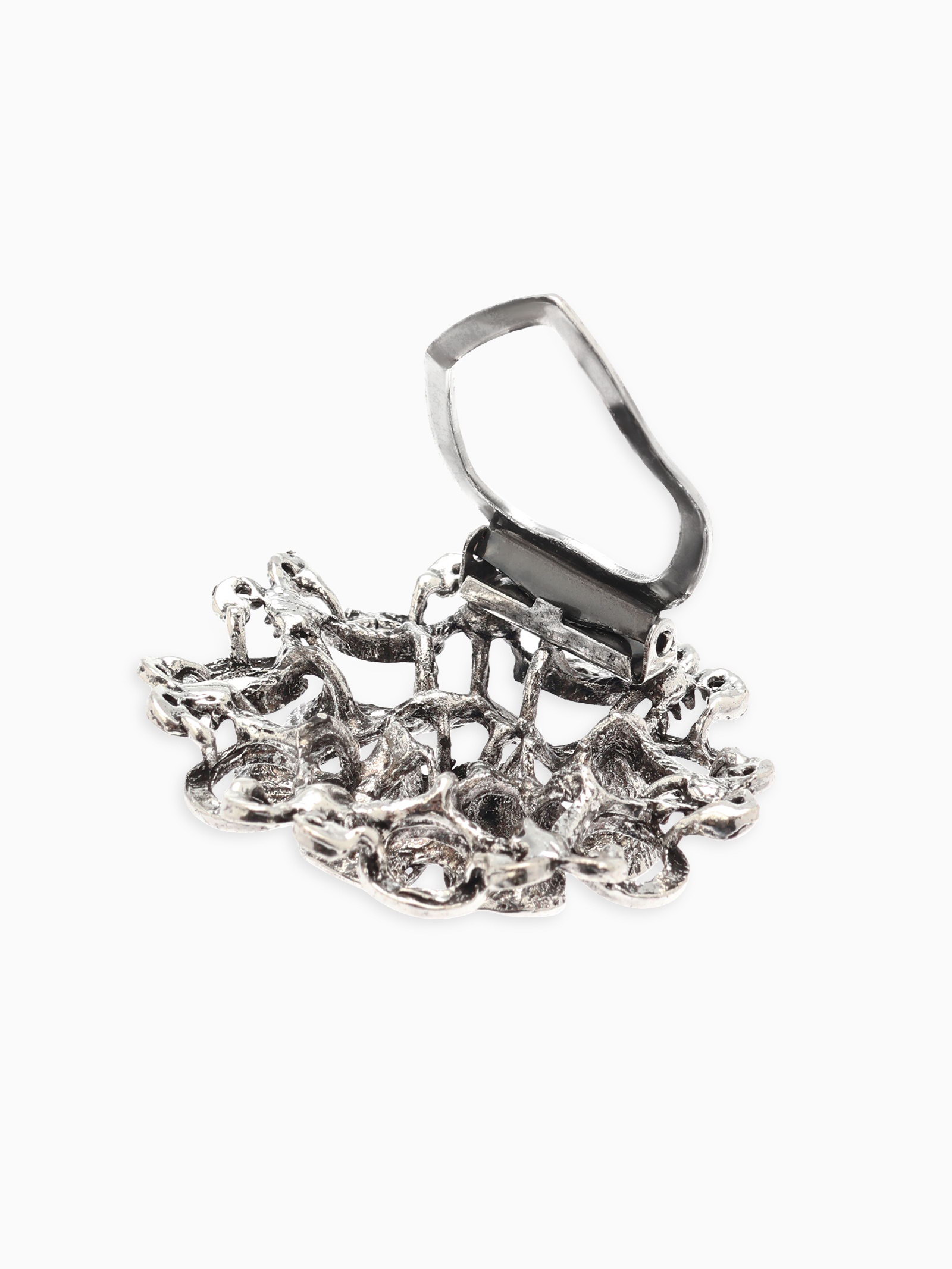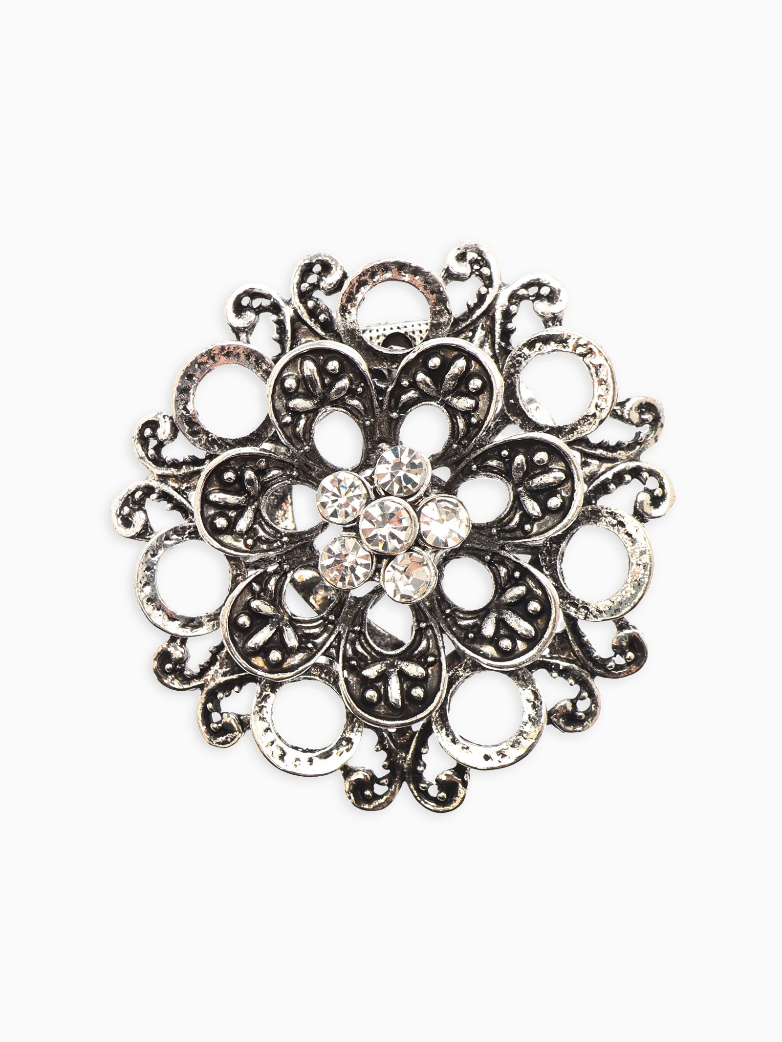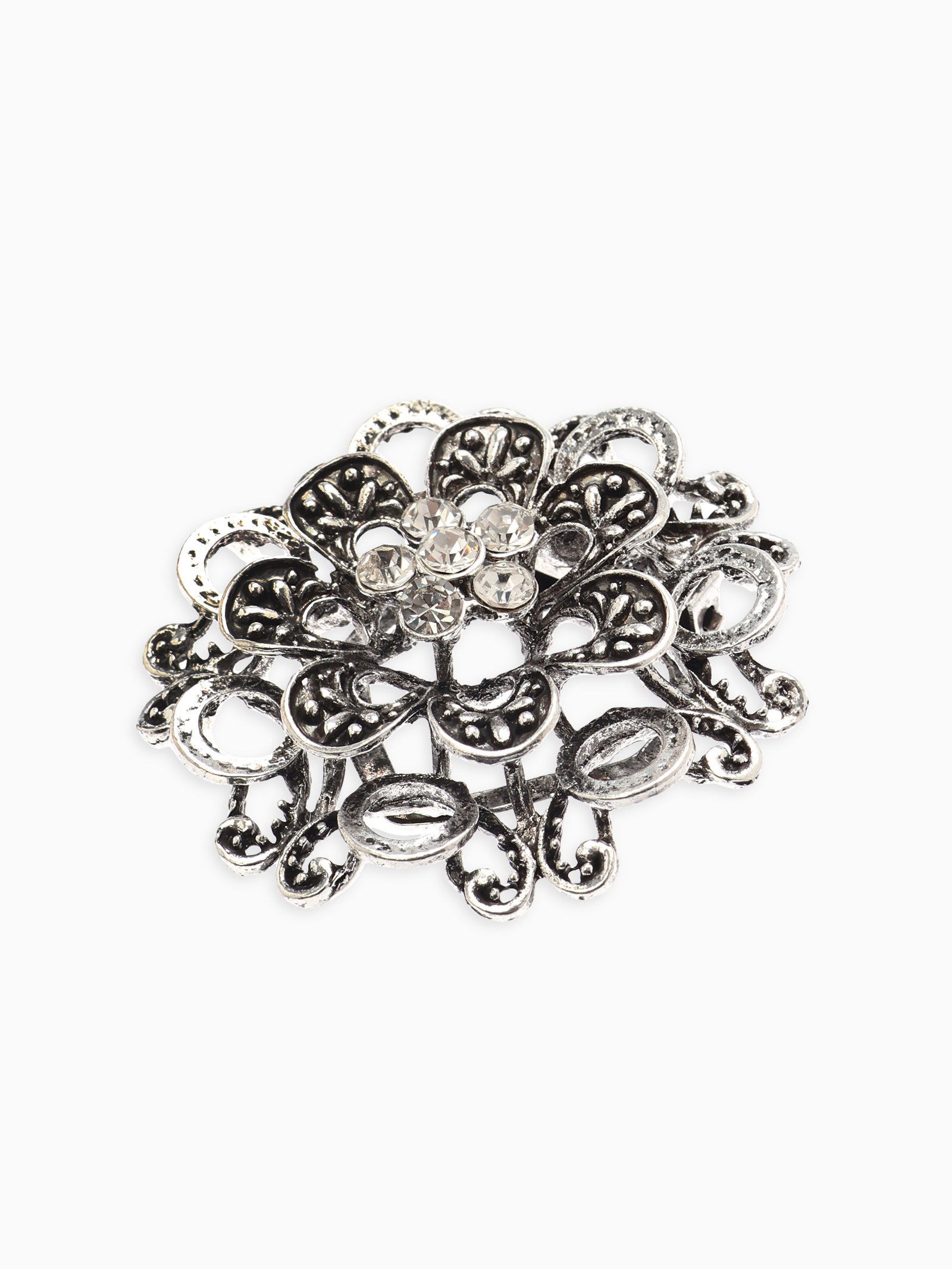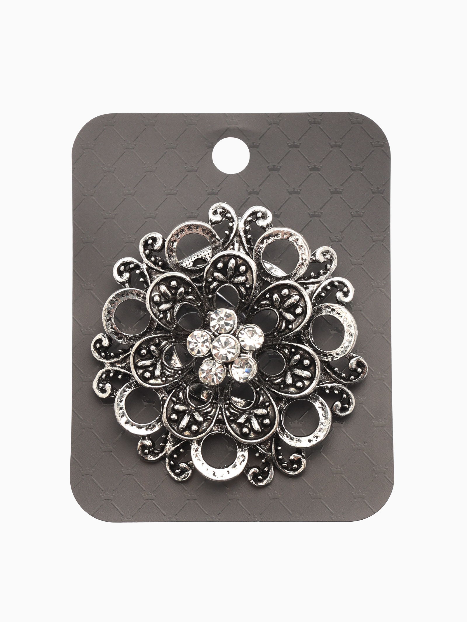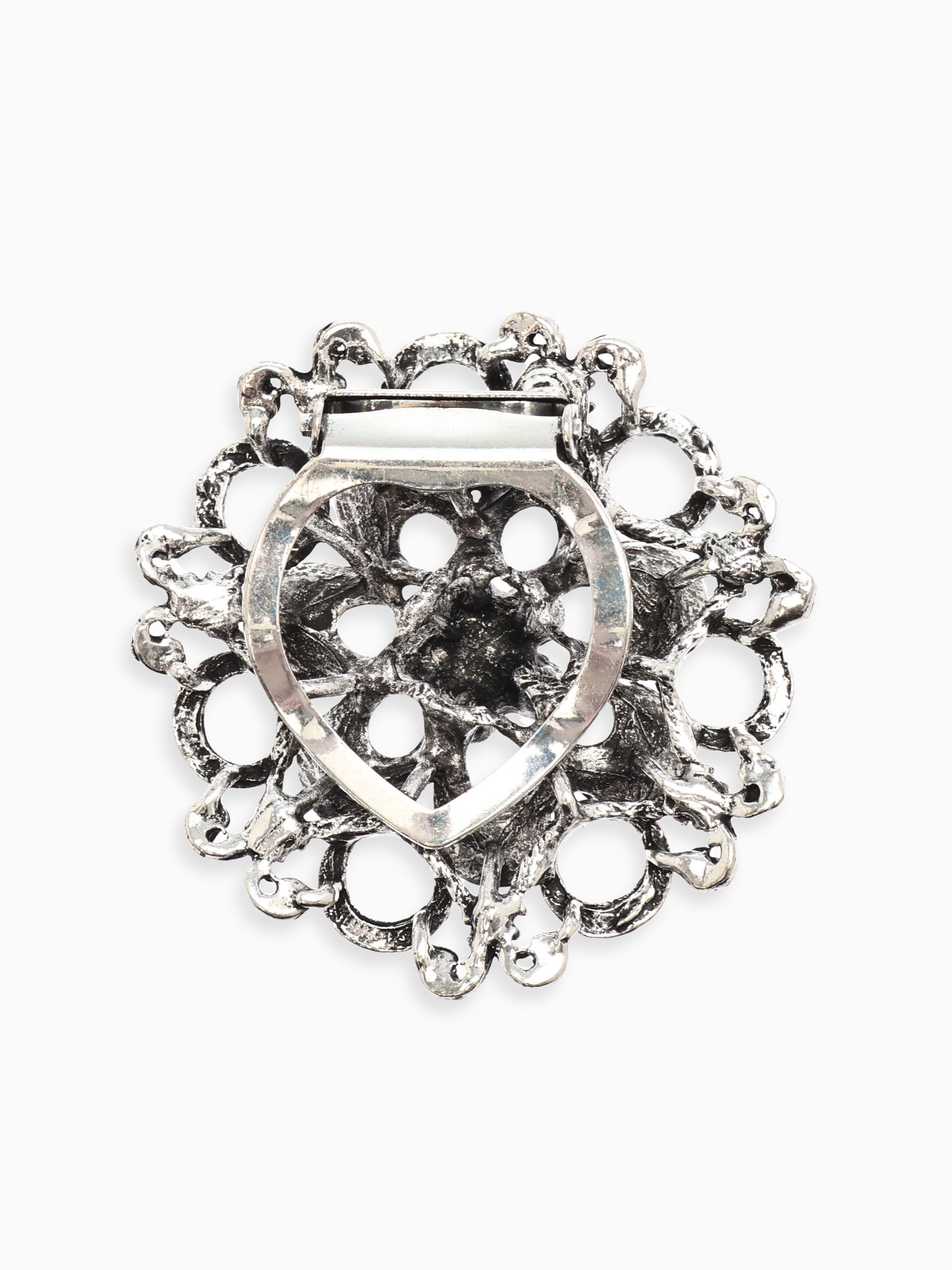 Зажим для платка "Цветок астры", белый в чернёном серебре, 5x5x1.5 см., QF, Китай