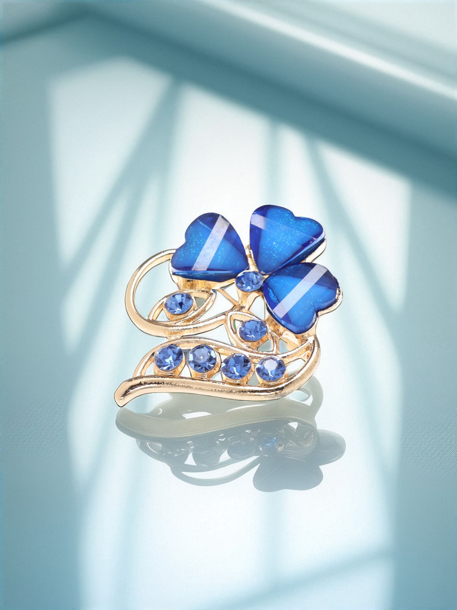 Брошь "Цветок" трилистник, синяя в золоте, 3.3x4x1 см., QF, Китай