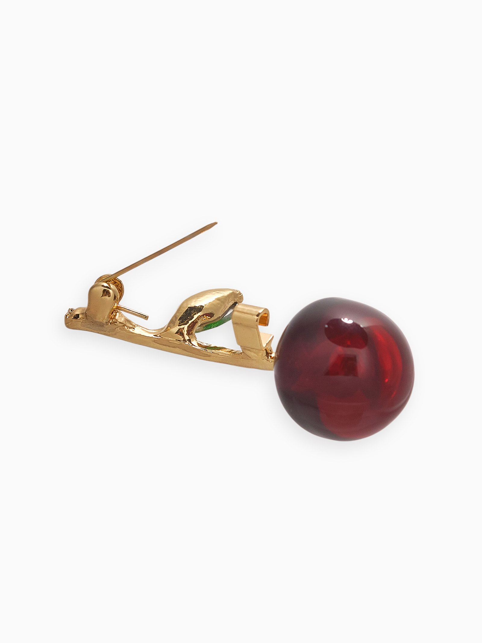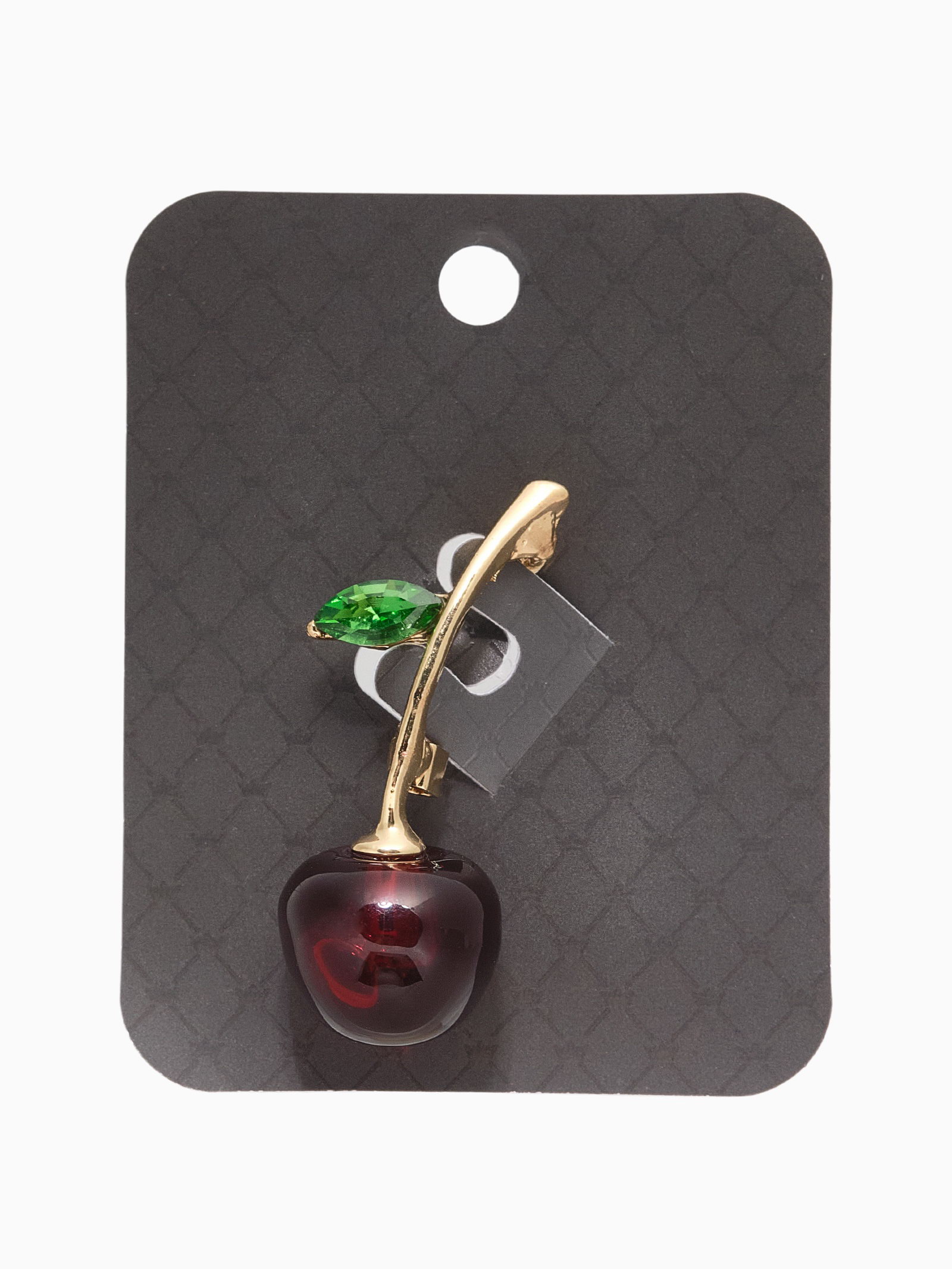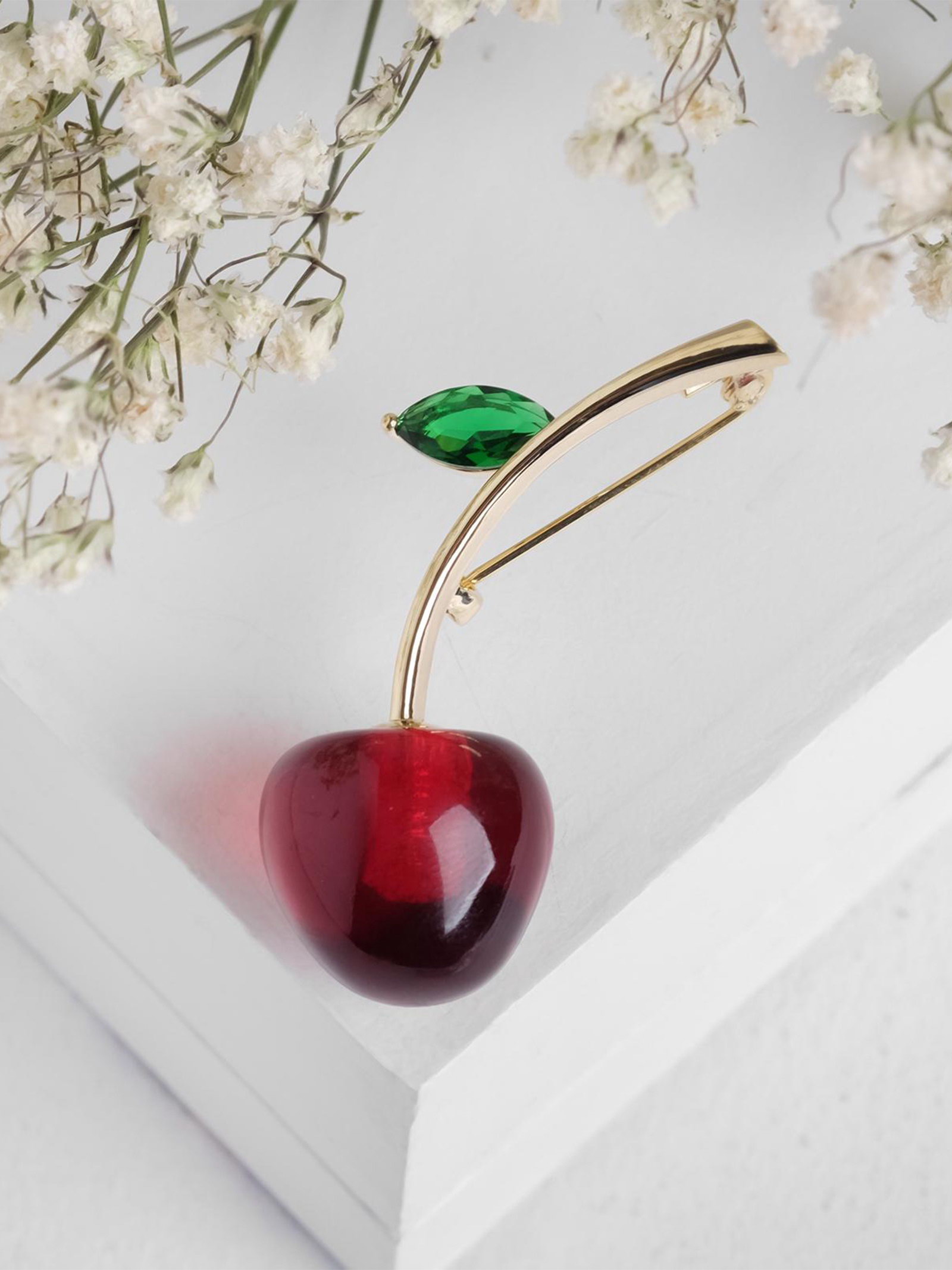 Брошь "Вишенка", цвет бордово-зелёный в золоте, 1.7x4.5x1 см., QF, Китай