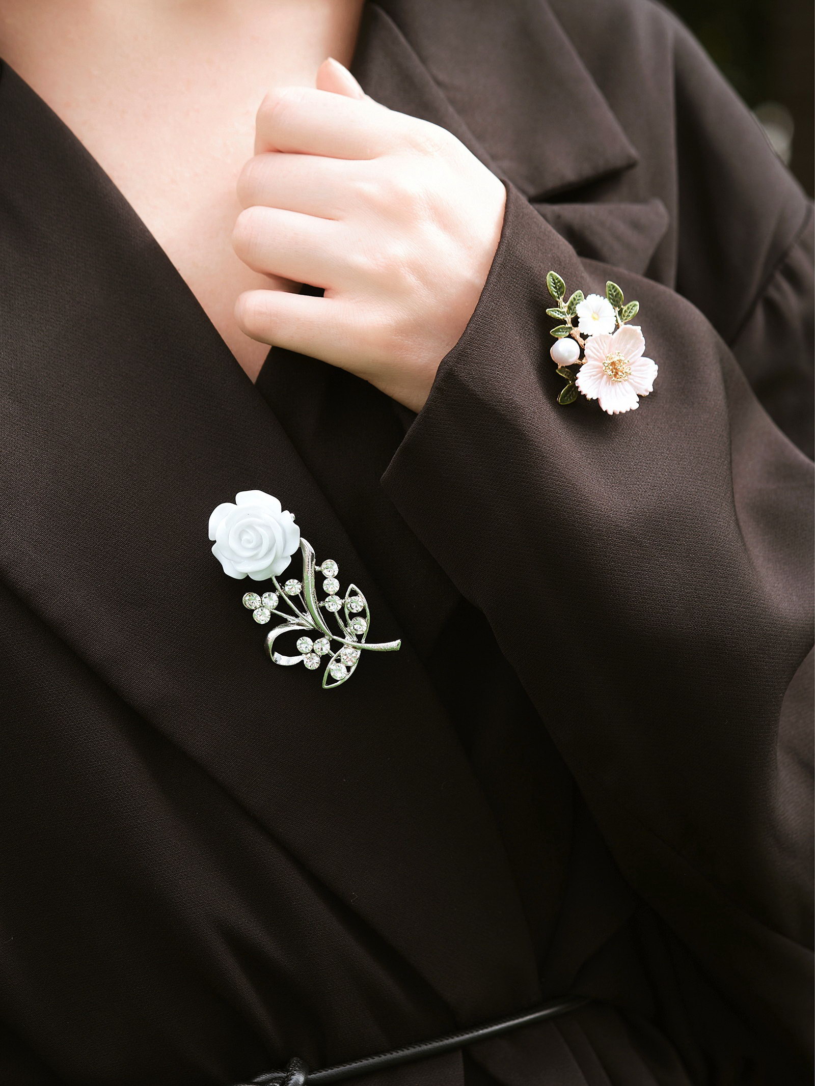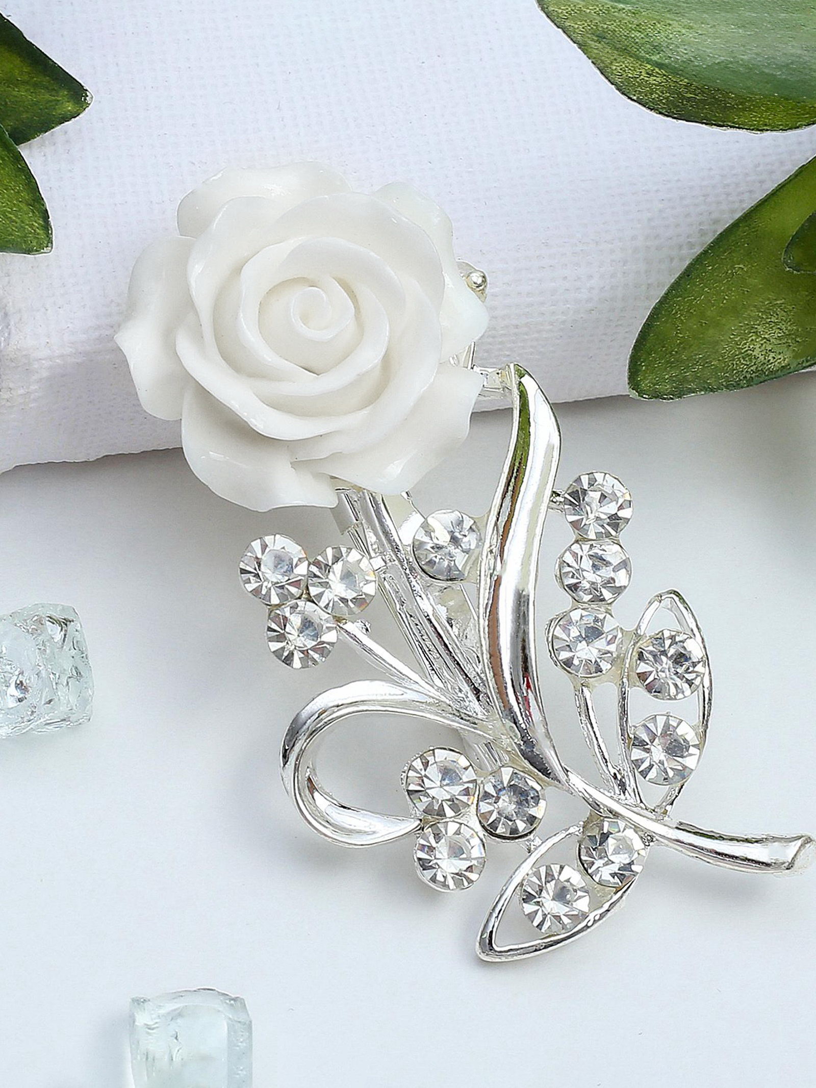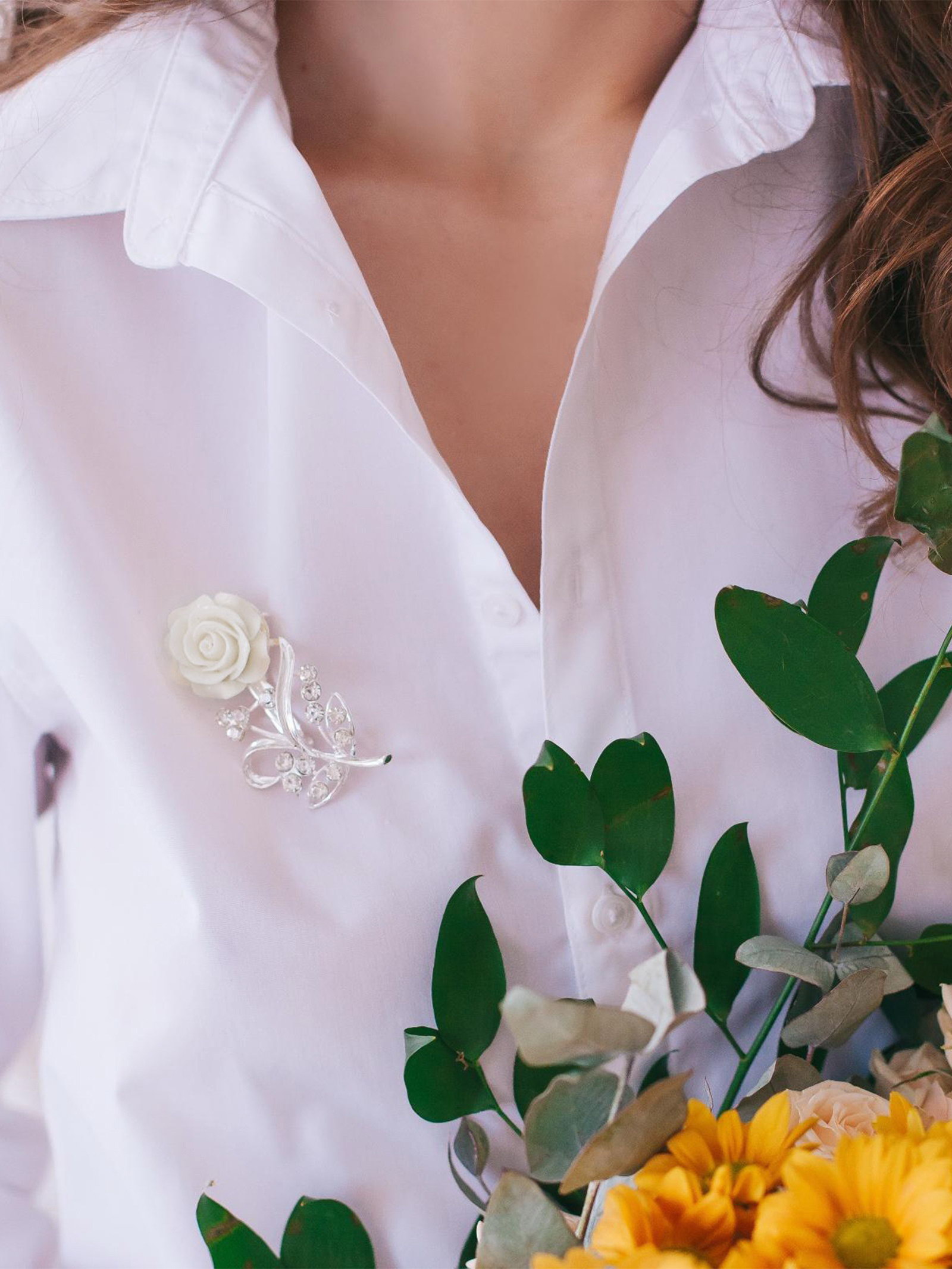 Брошь "Цветок", роза нежная, цвет белый в серебре, 3x6.5x2 см., QF, Китай