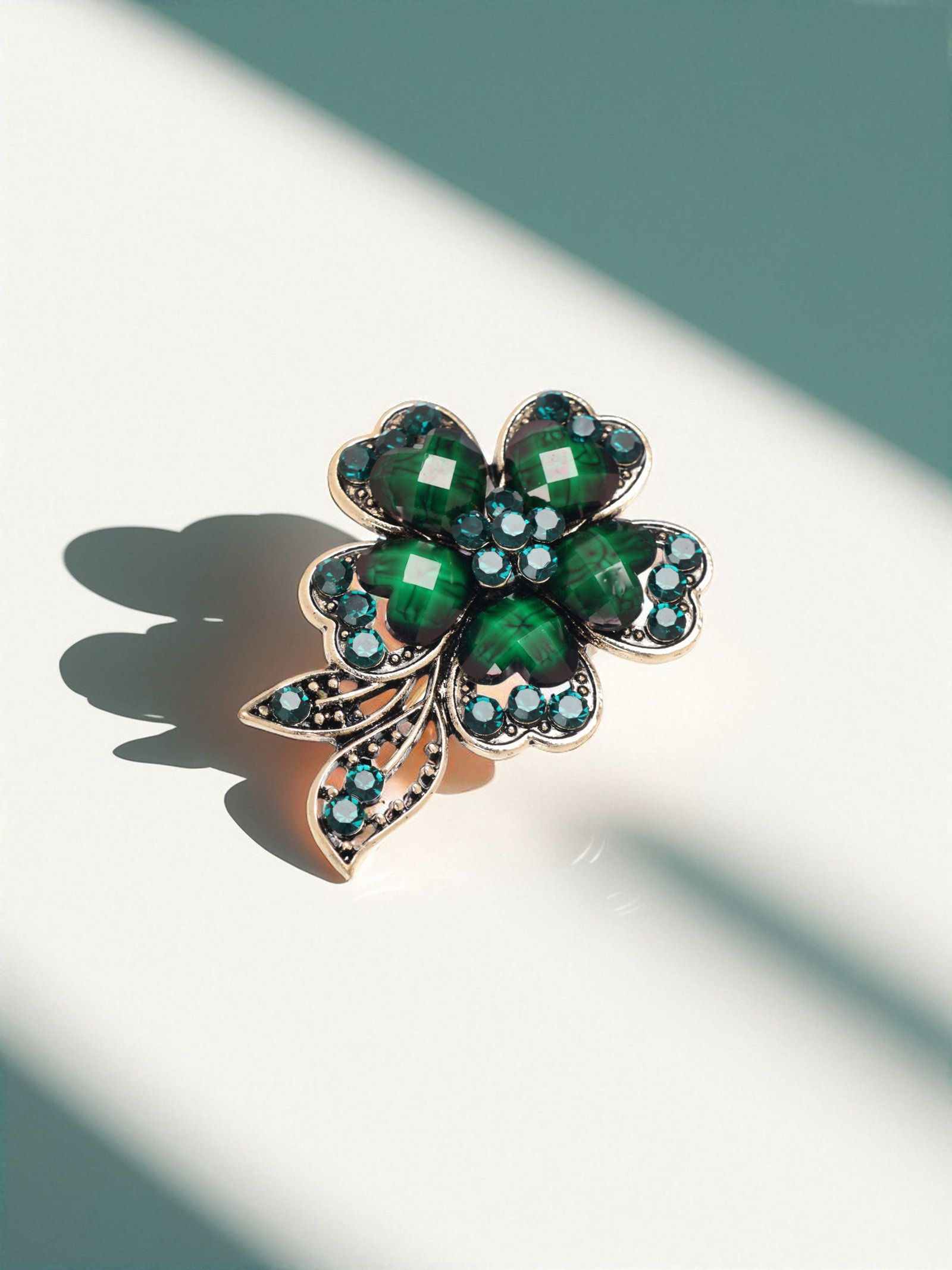 Брошь "Цветок желаний", цвет изумрудный в чернёном золоте, 3.5x5x1.5 см., QF, Китай