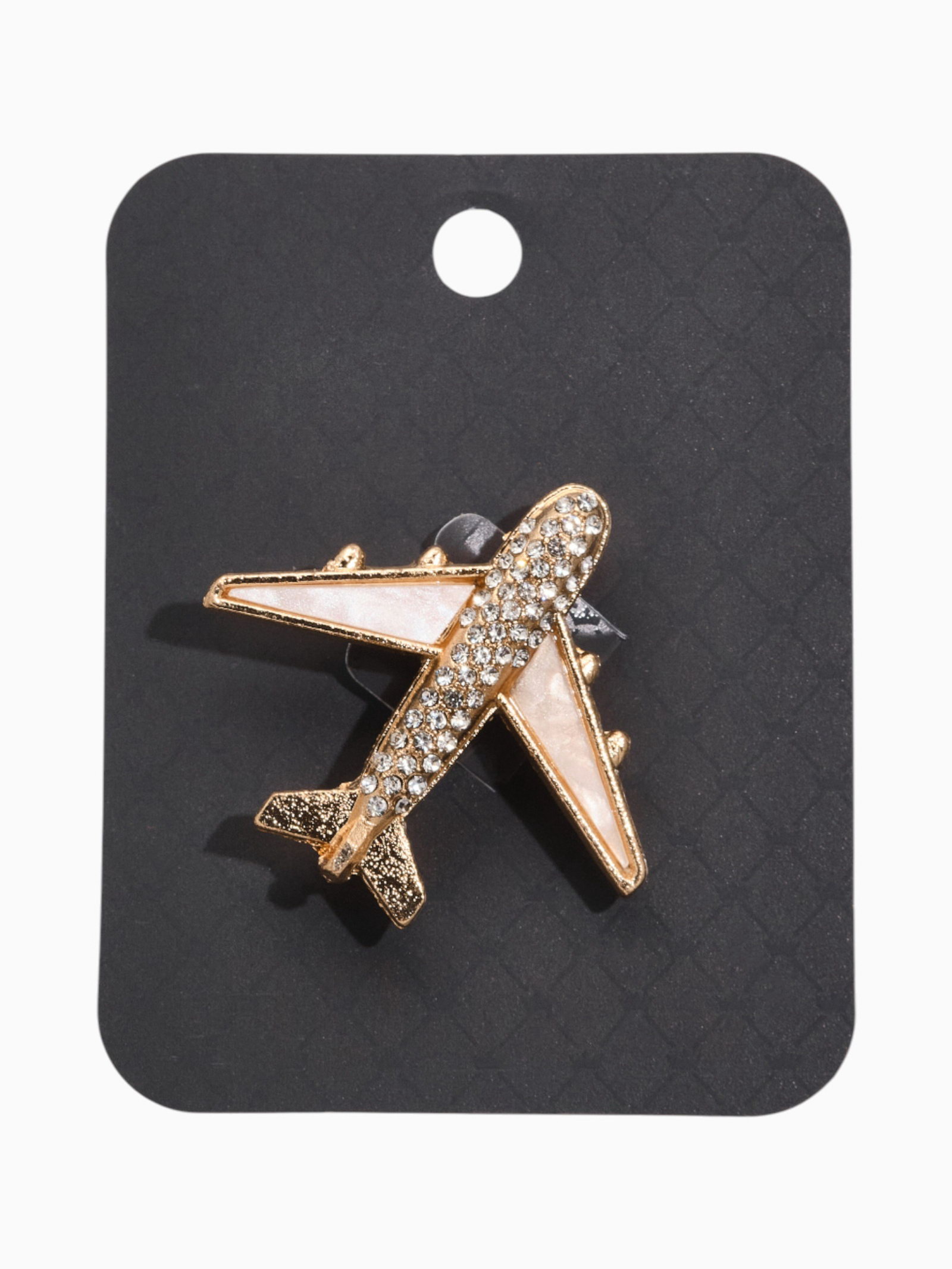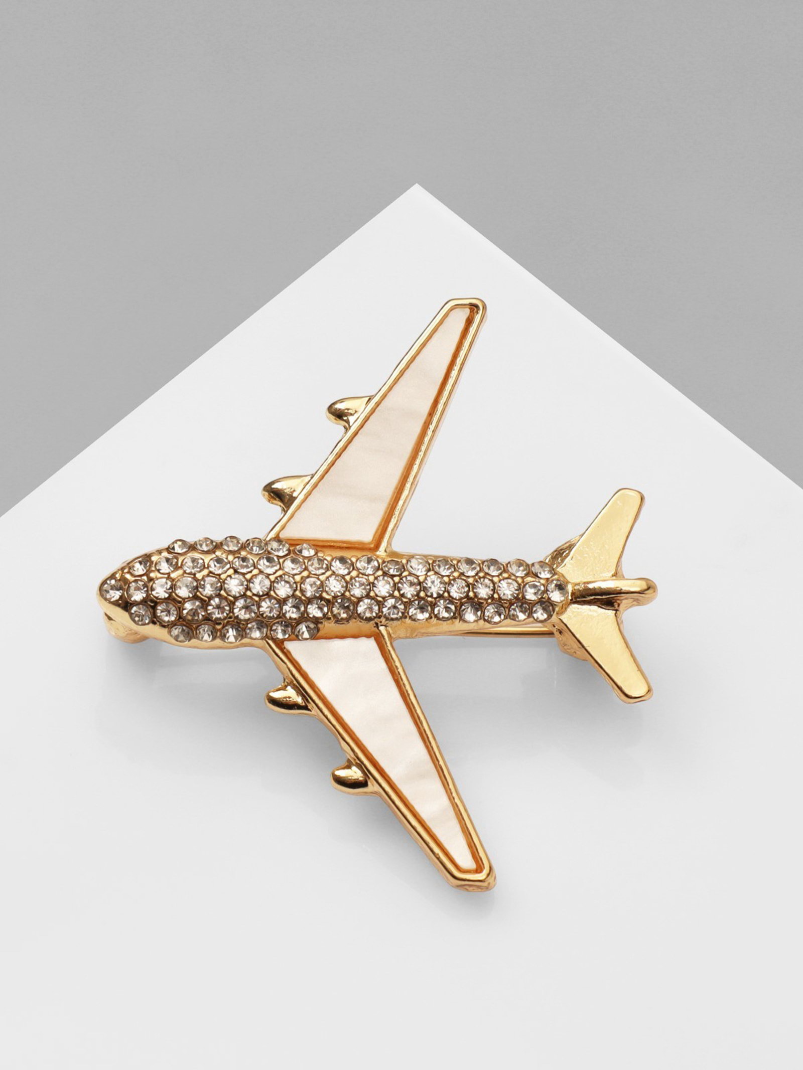 Брошь "Самолёт", цвет белый в золоте, 3.2x3.6x0.8 см., Queen fair, Китай