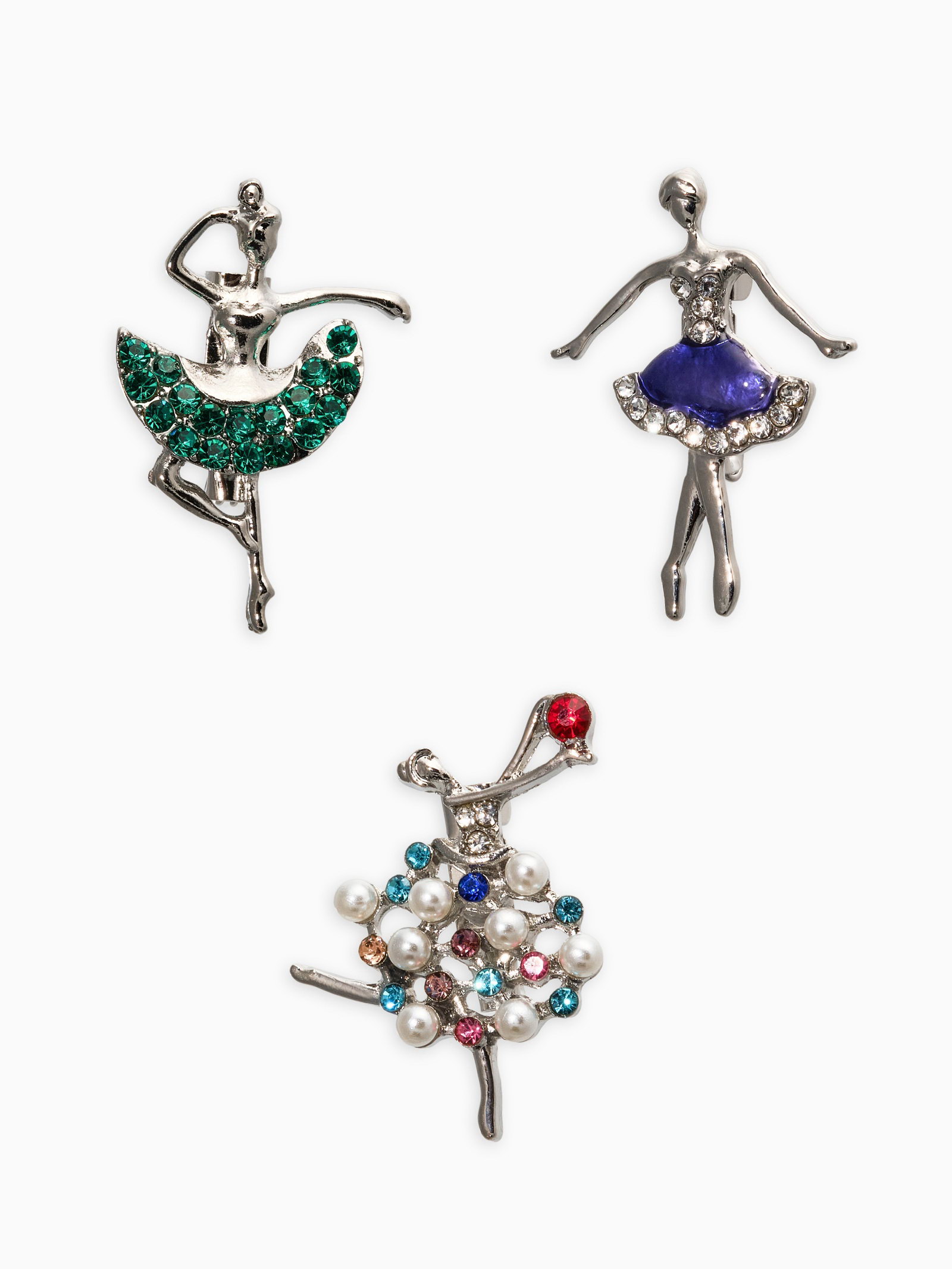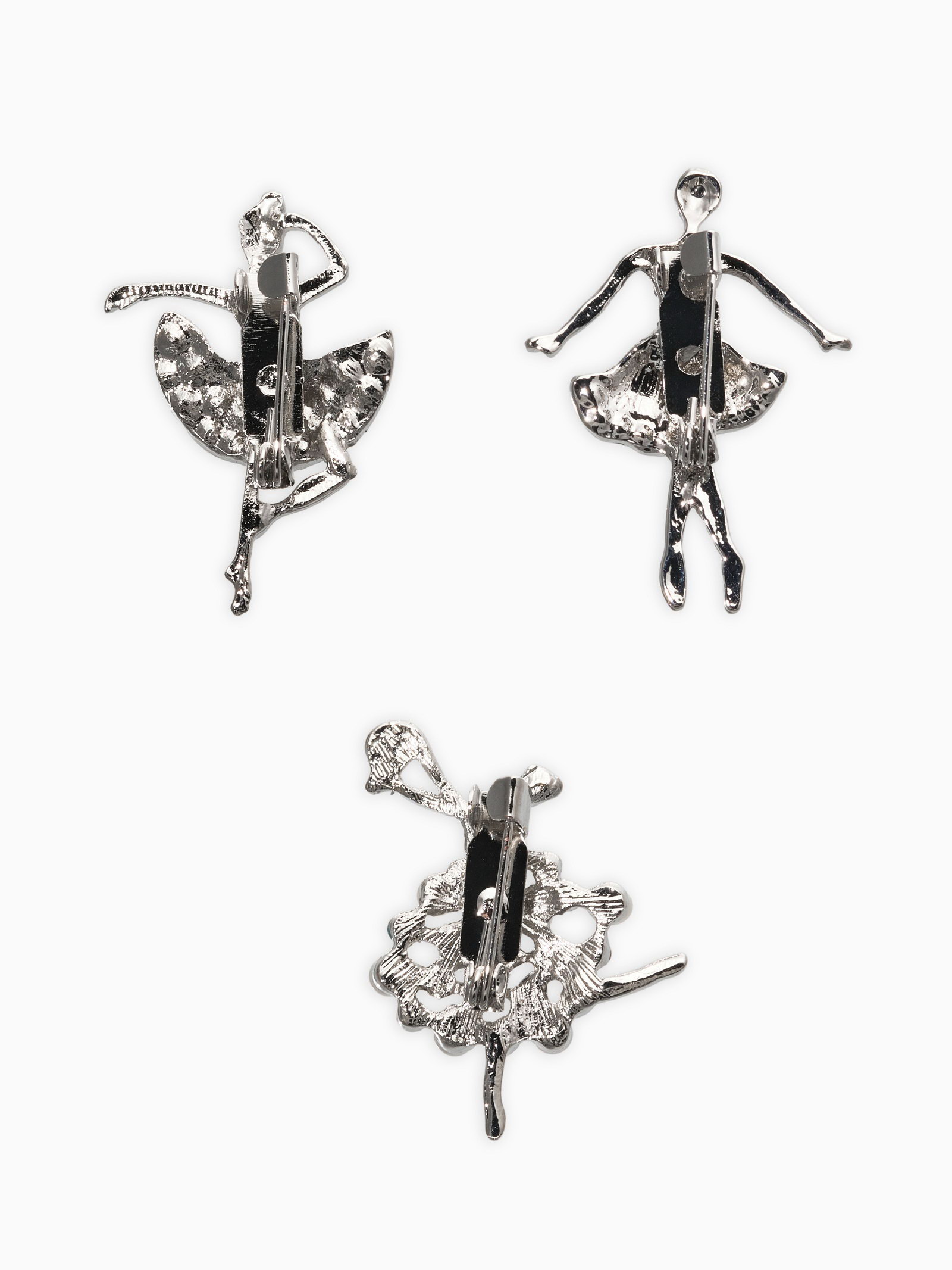 Броши "Балеринки", набор 3 шт. МИКС в серебре, 7x8x1 см., QF, Китай