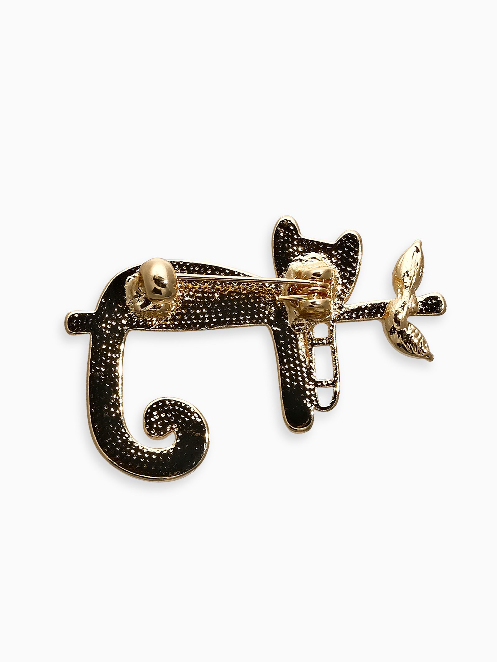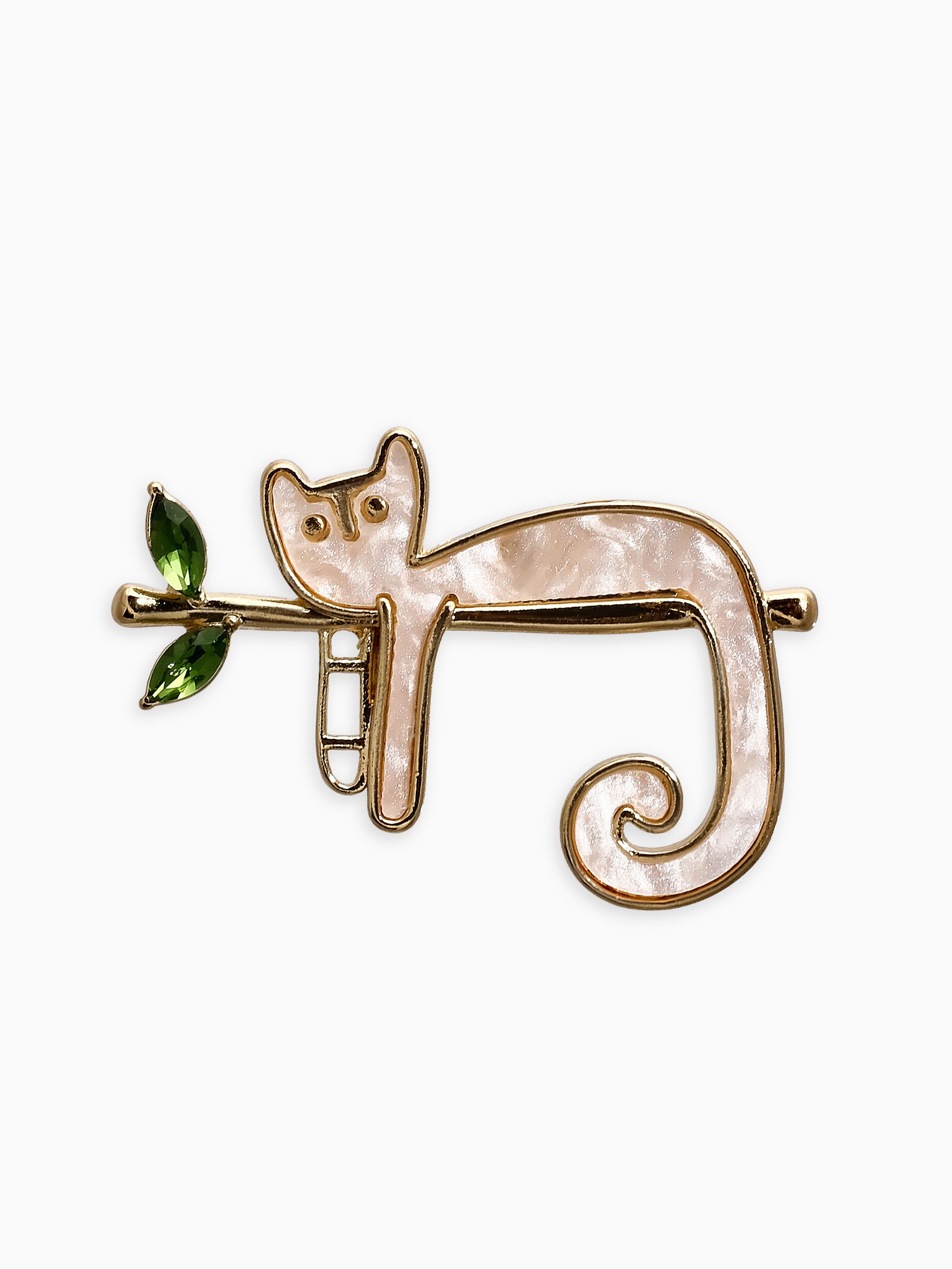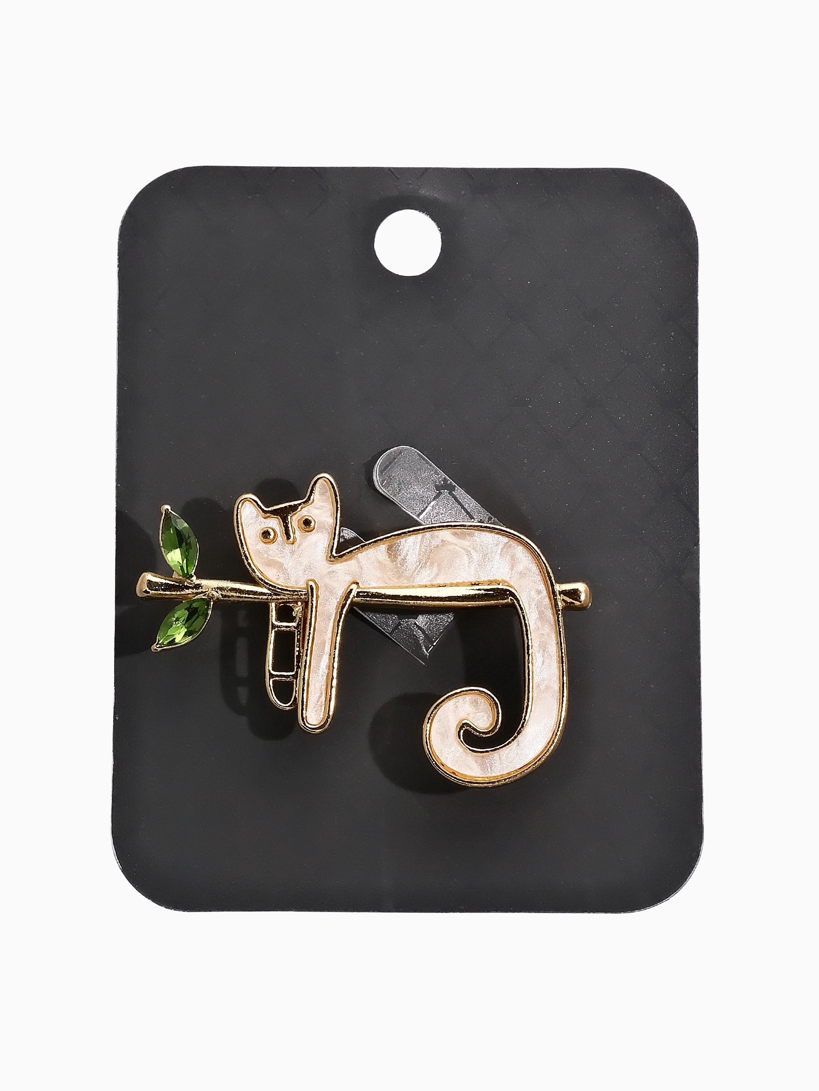Брошь перламутровая "Котёнок на ветке", белая в золоте, 4.5x3x0.5 см., QF, Китай